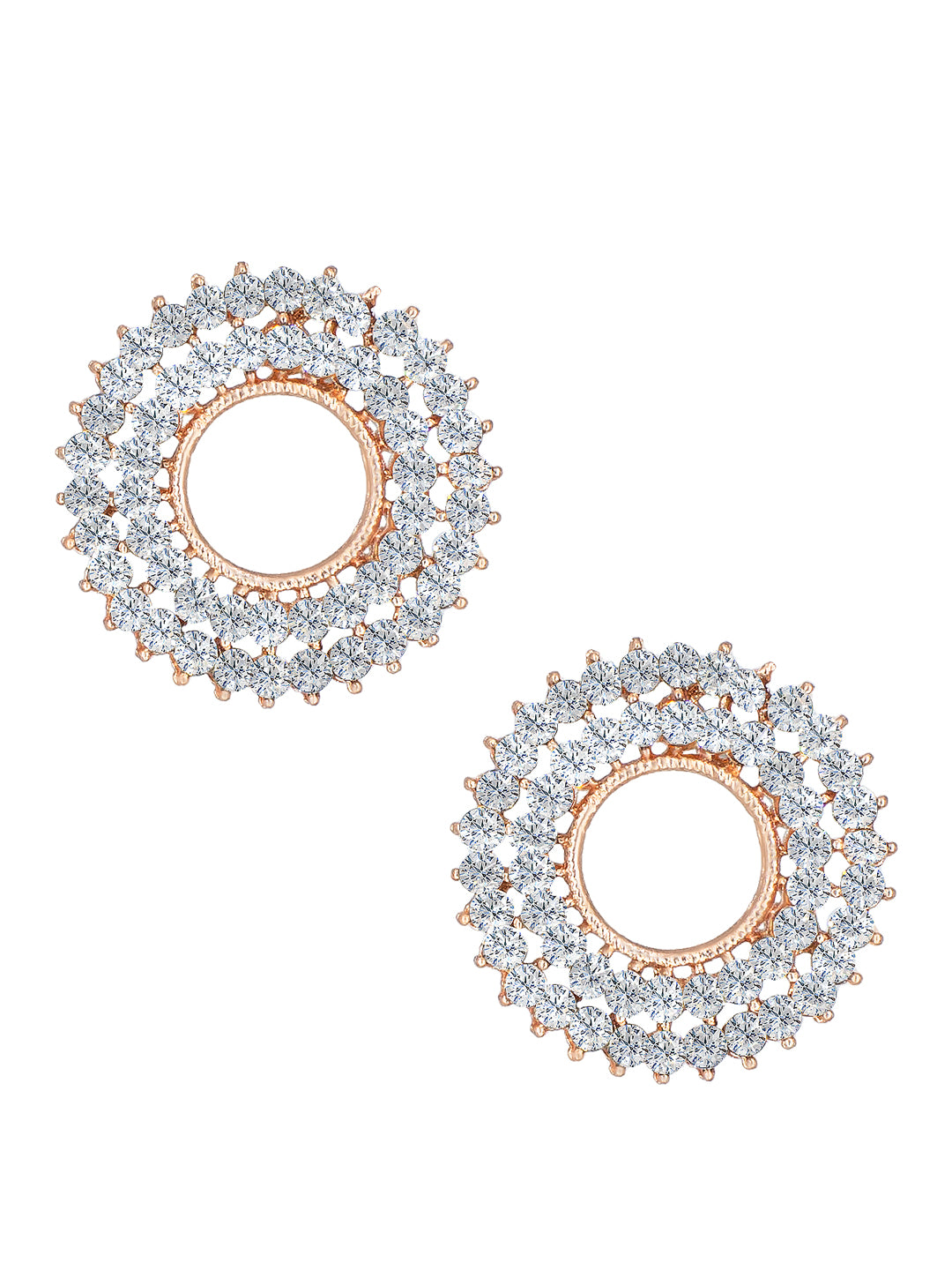These earrings are rose gold plated, has cz studded details and secured with post and back closure.