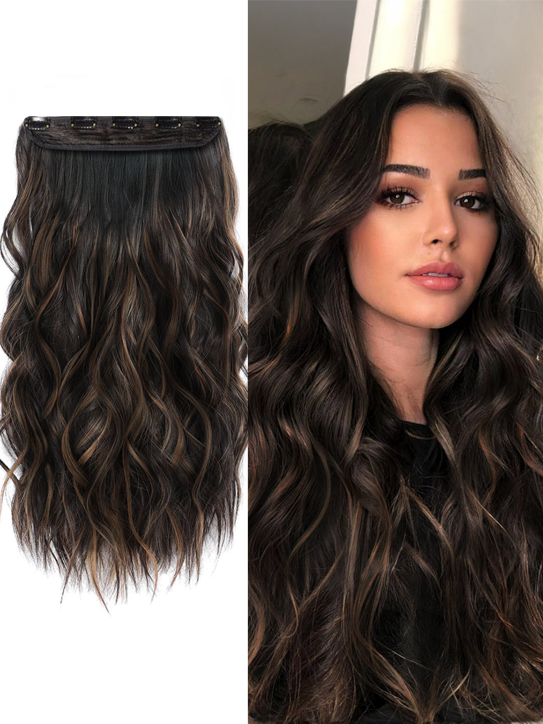 Add volume and length with our Curly Wavy 5 Clip-In Hair Extension in Natural Golden & Brown.