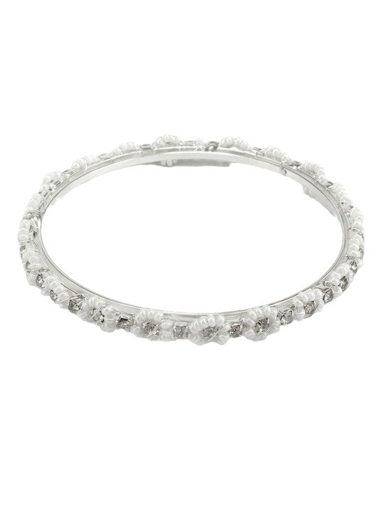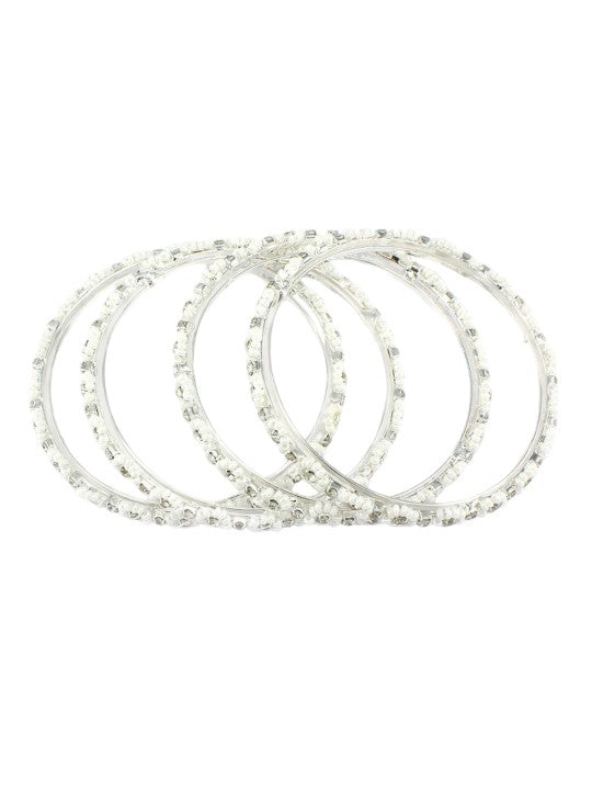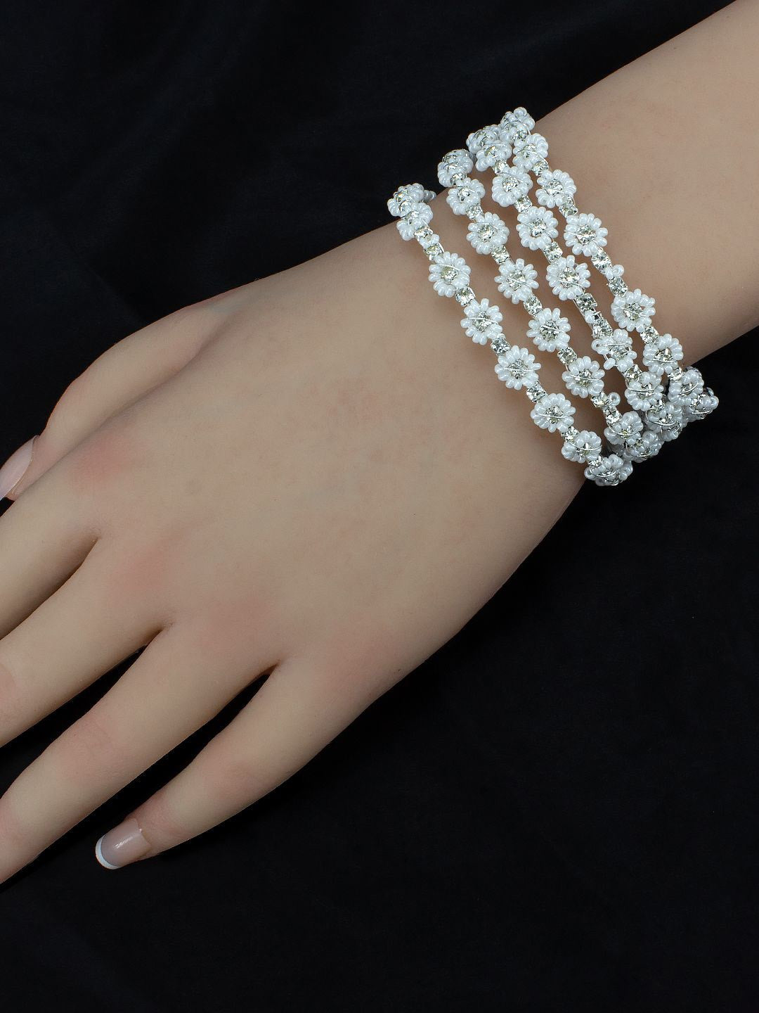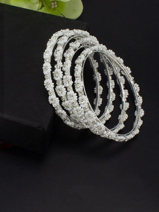 Set of 4 Silver Plated White Floral Beaded Bangle Set