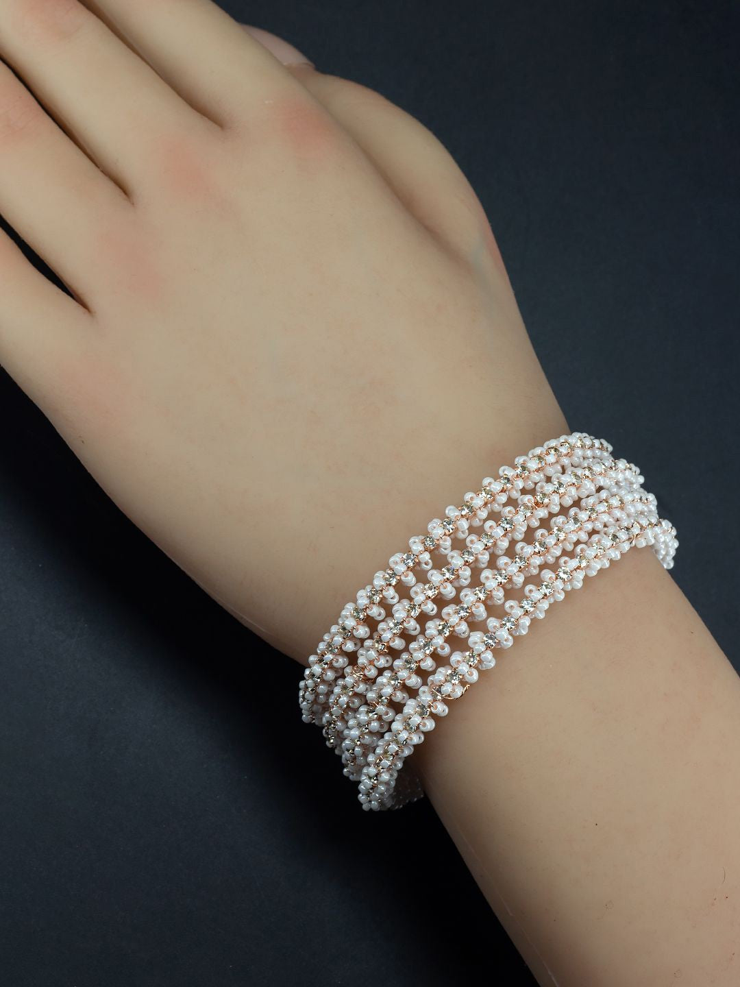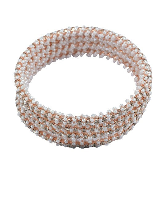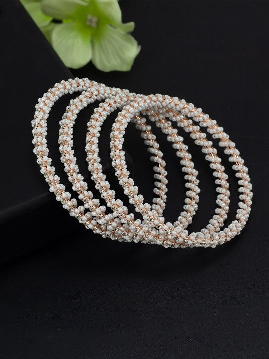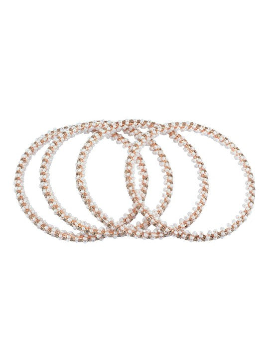 Set of 4 Rose Gold Plated White Beaded Bangles