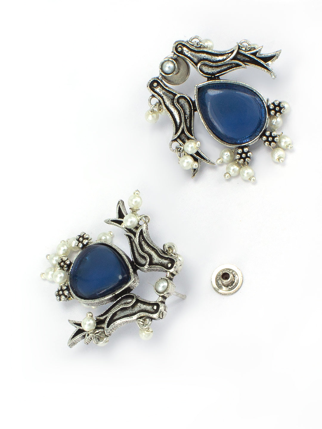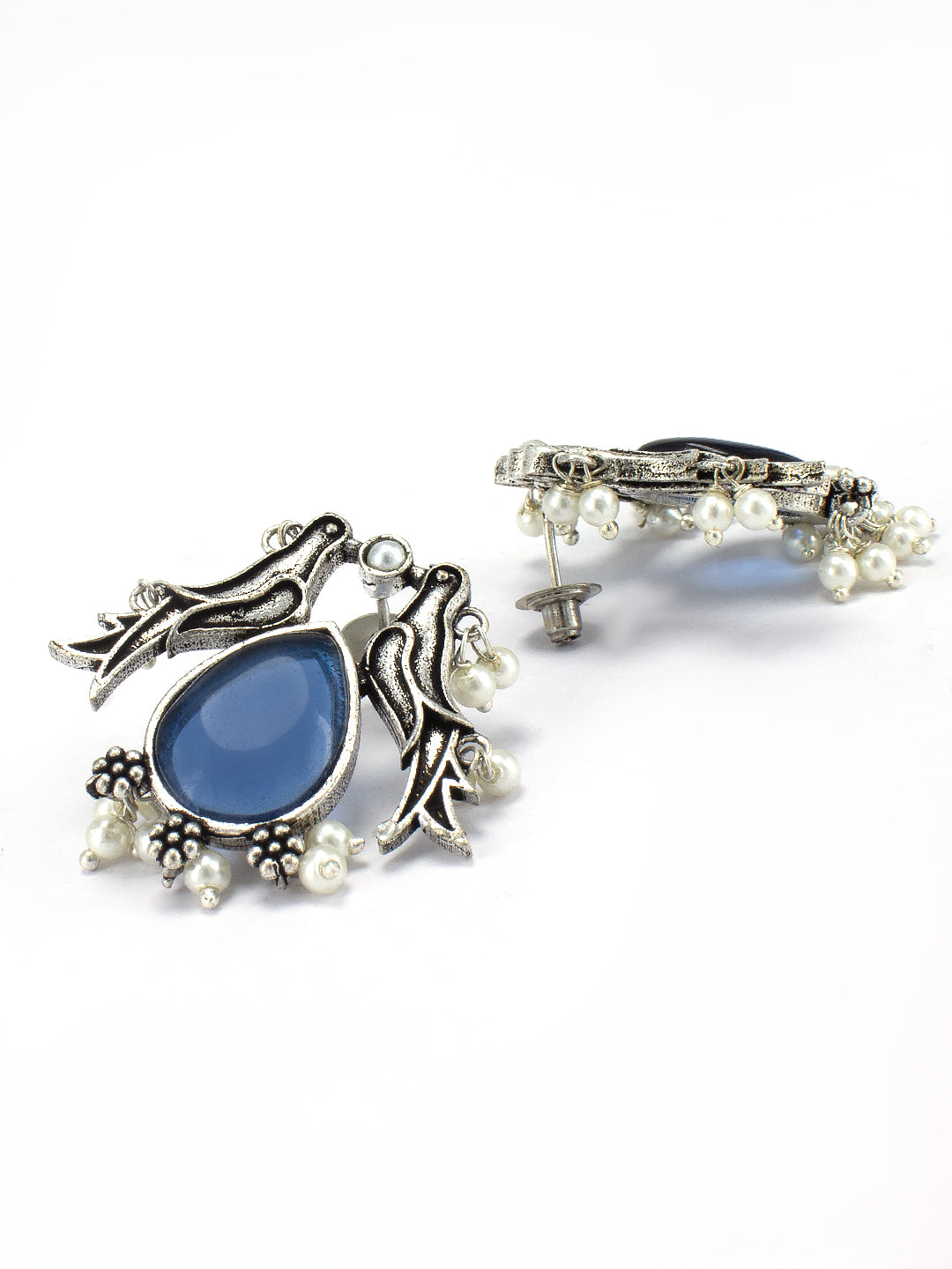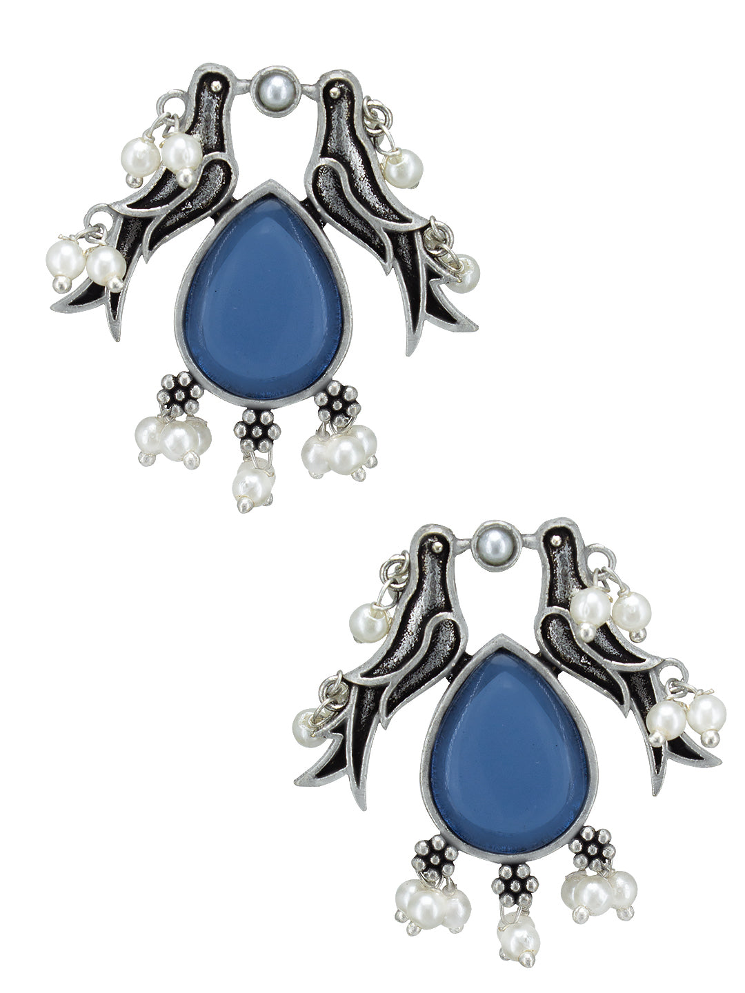 Silver Oxidised Peigon Tear Drop Earrings secured with post and back closure.