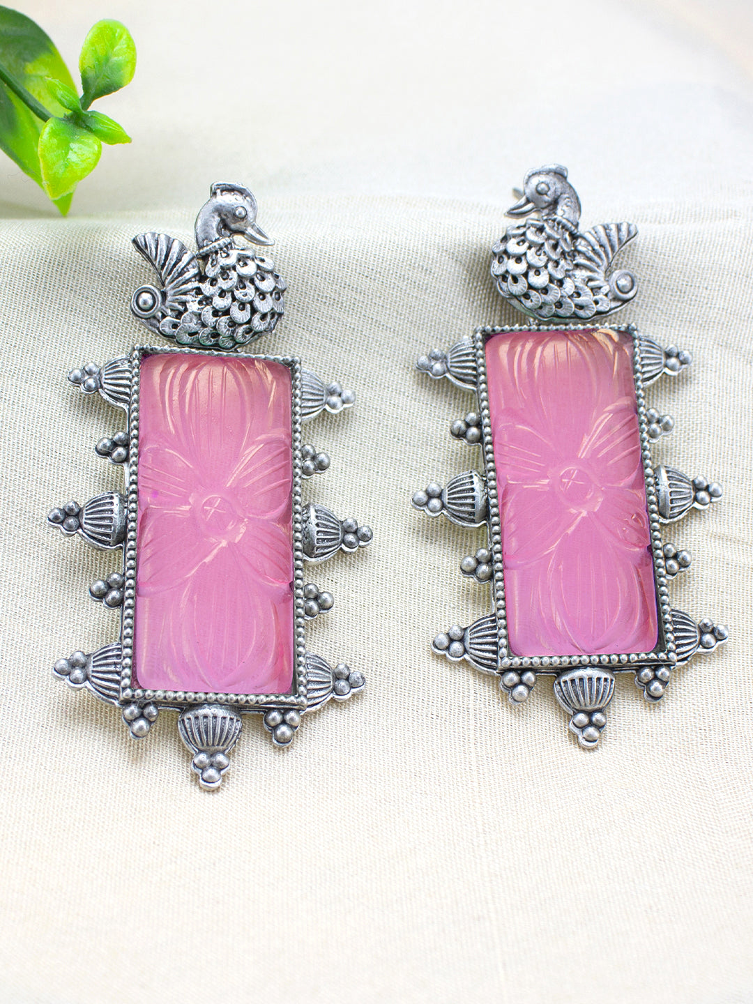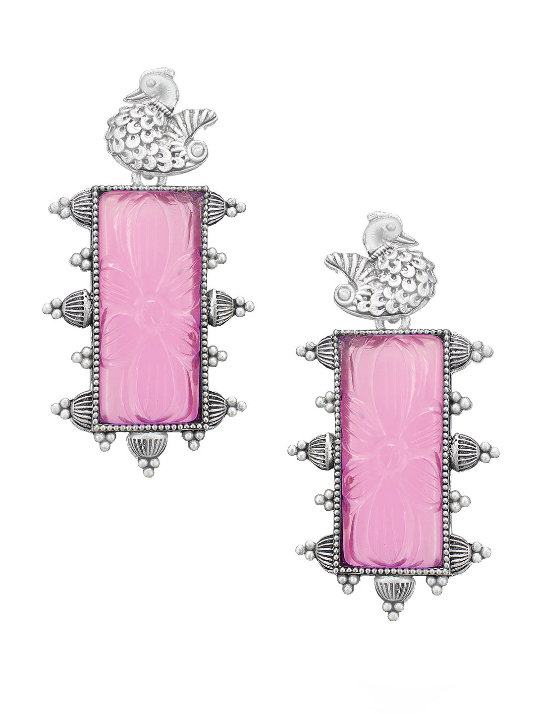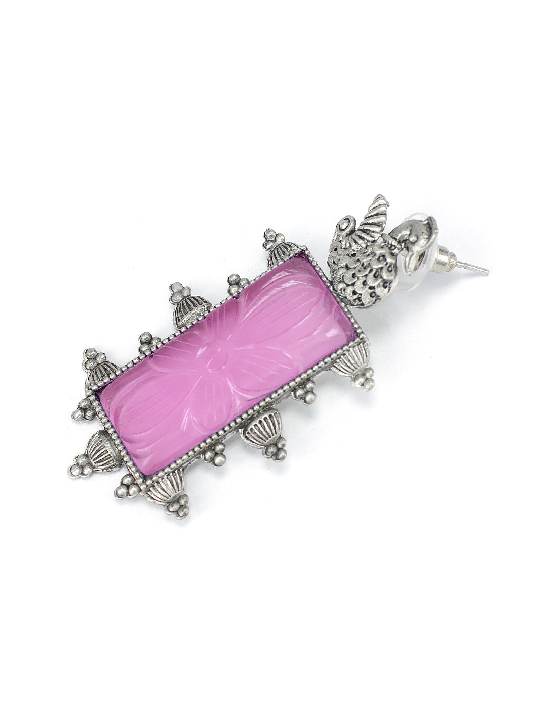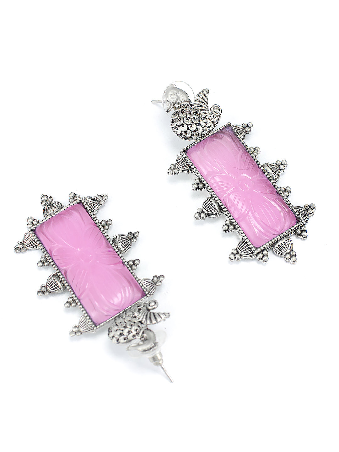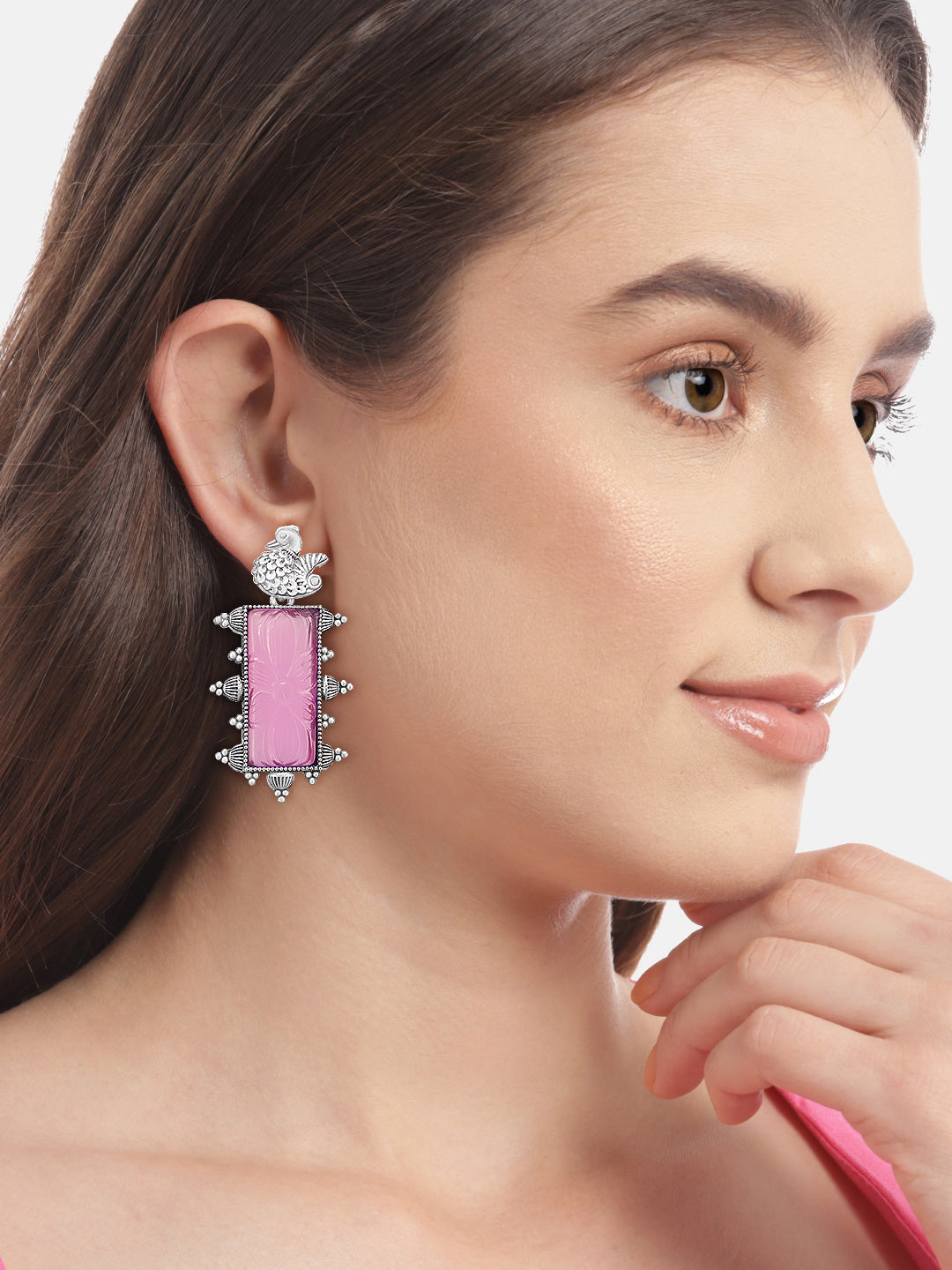 Silver Plated Pink Drop Earrings secured with post & back closure.
