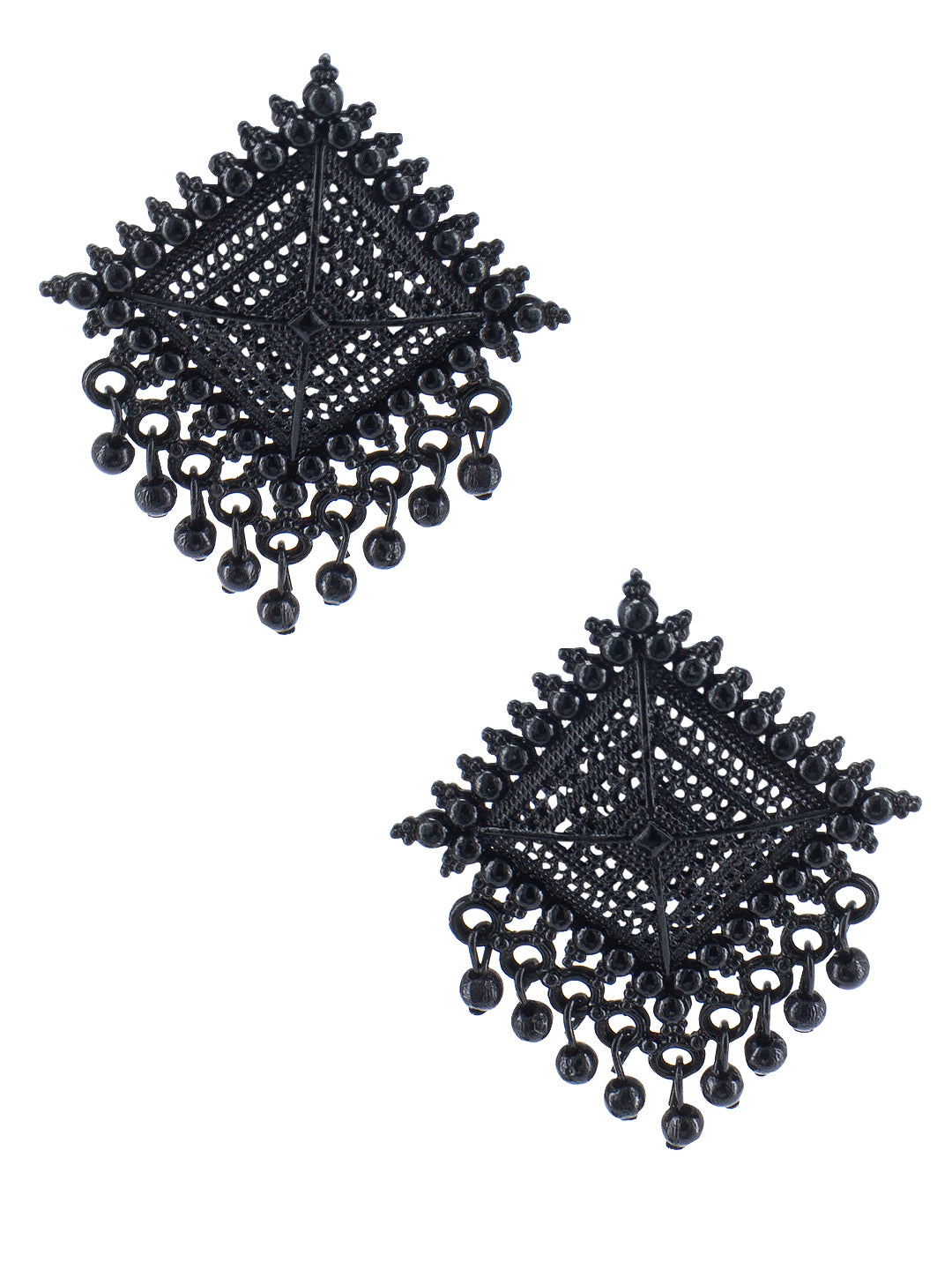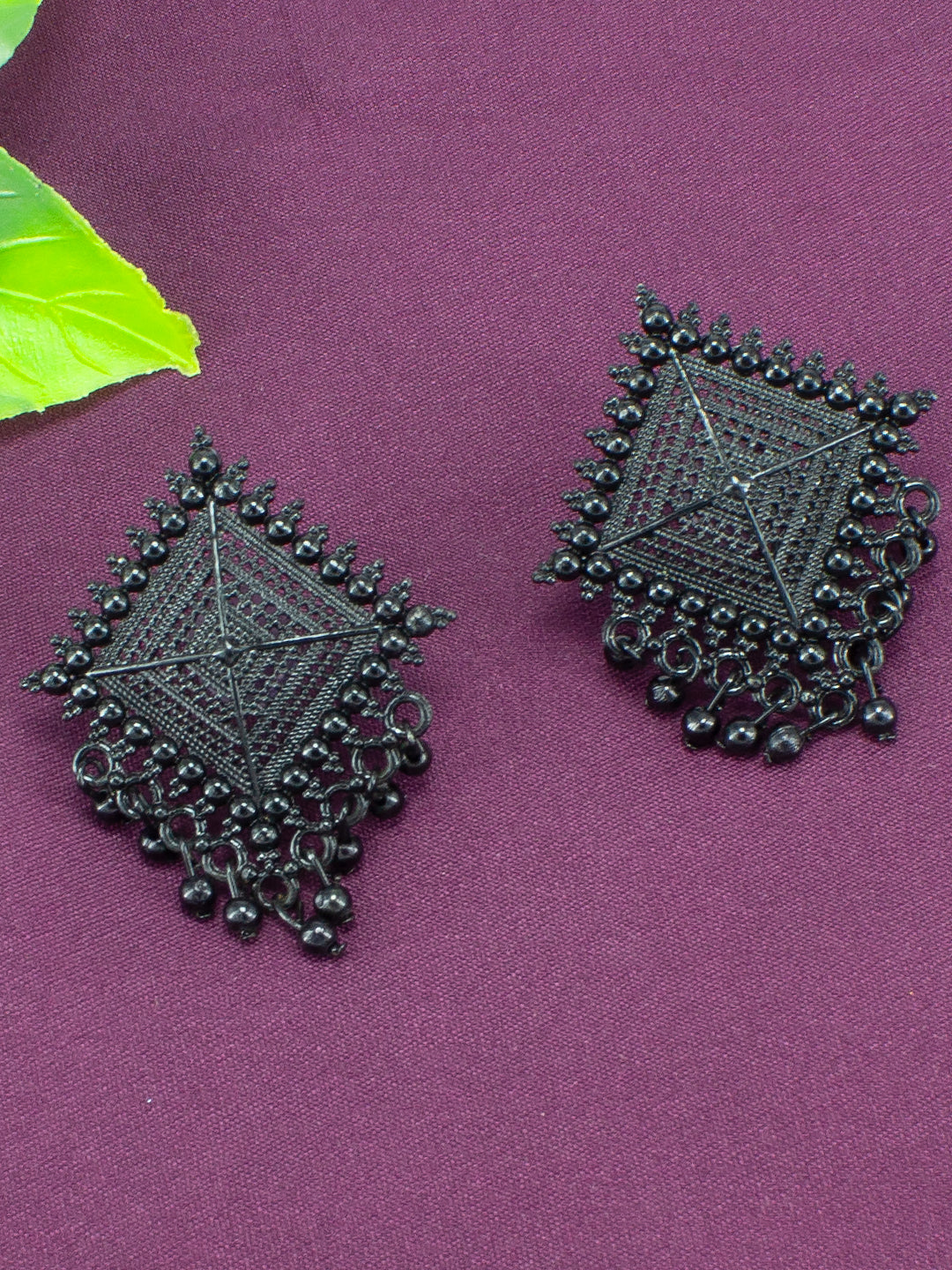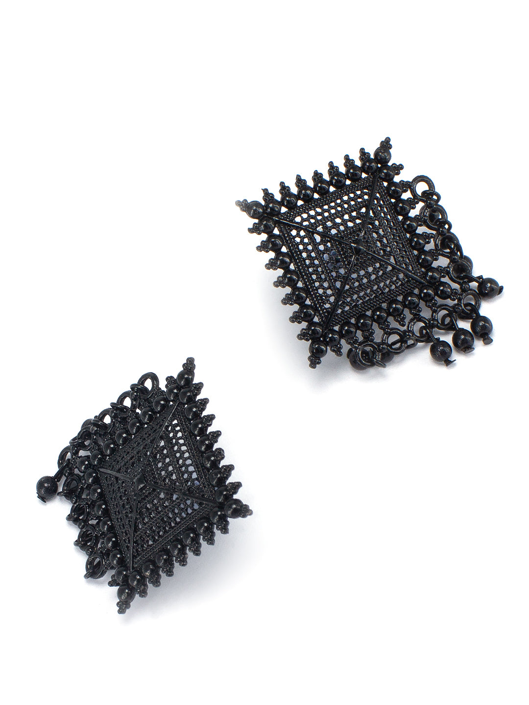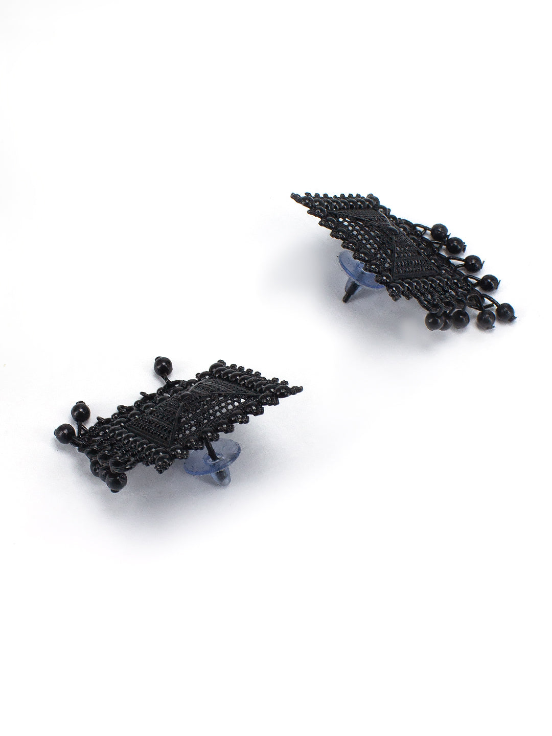 Black Square Shaped Stud Earrings, secured with post and back closure.