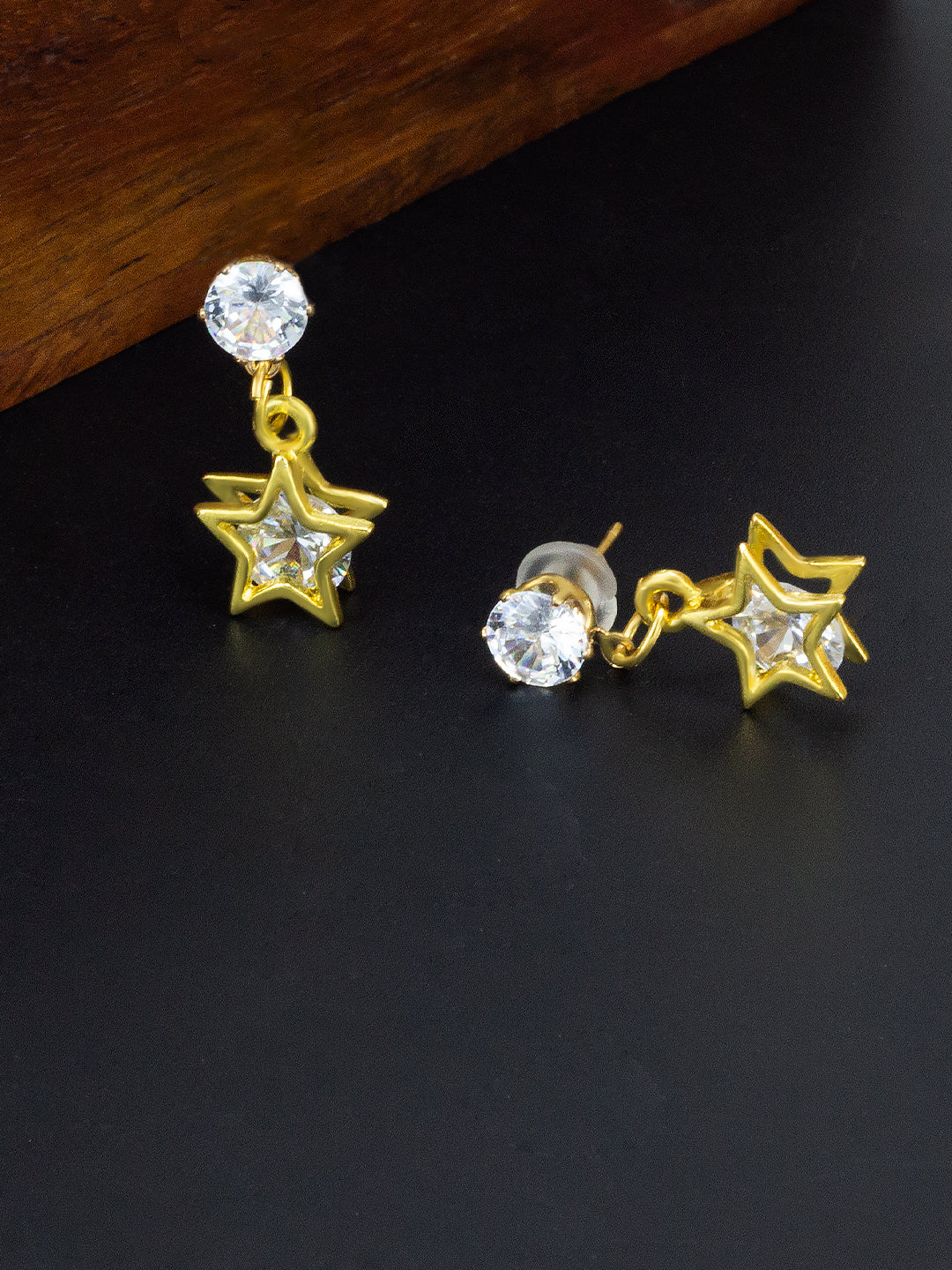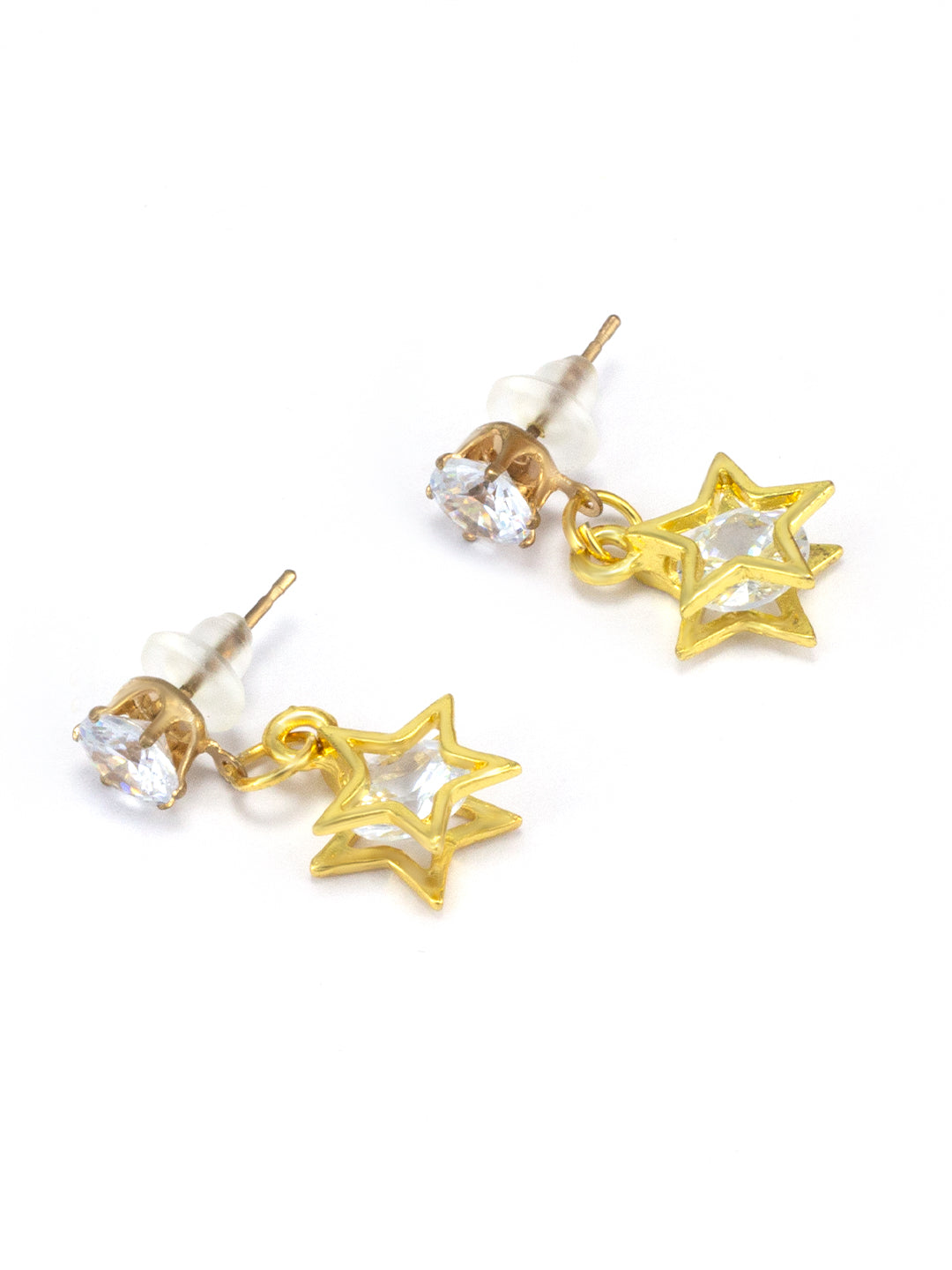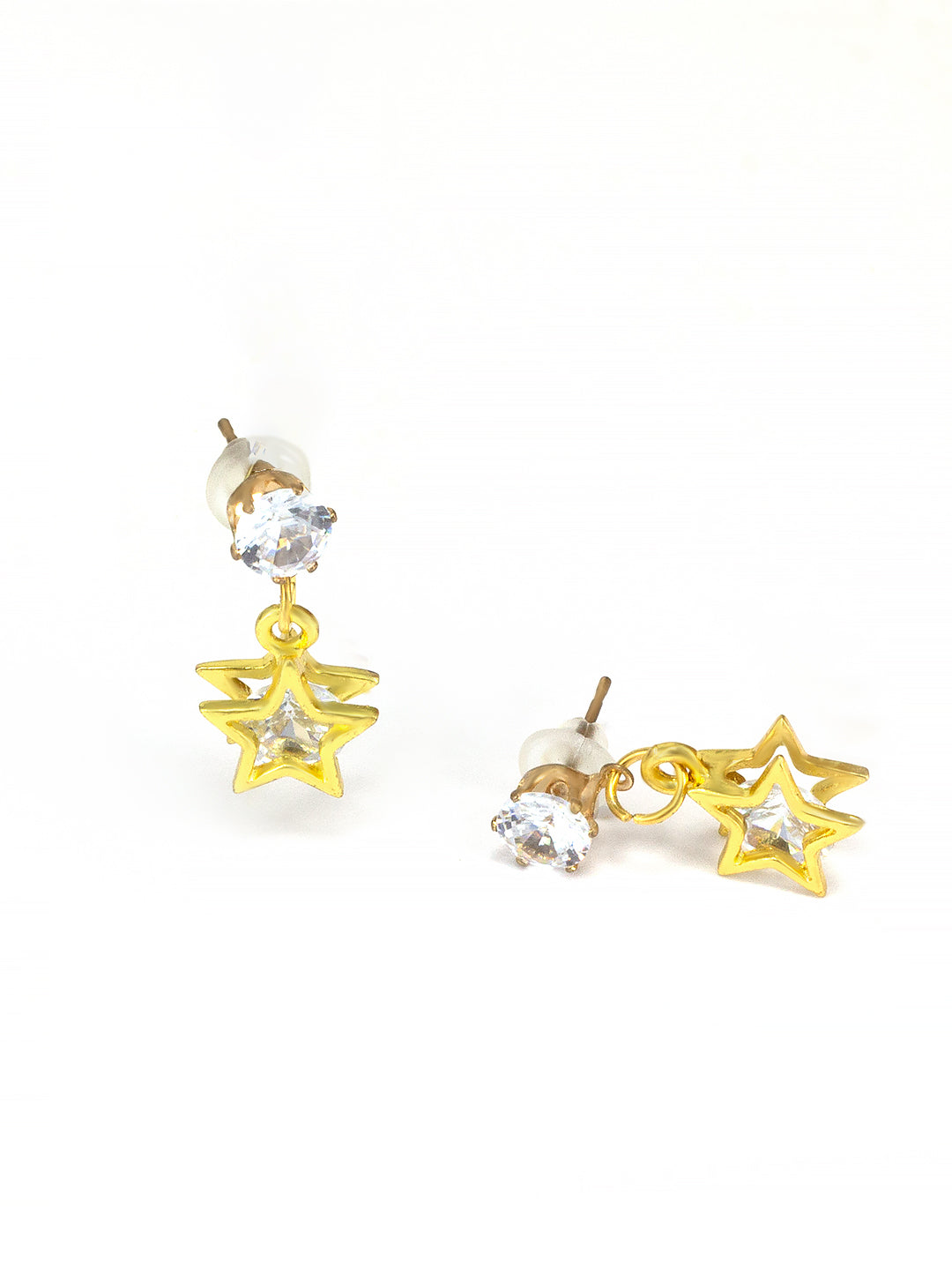 Gold Plated Star Drop Earrings, secured with post & back closure.