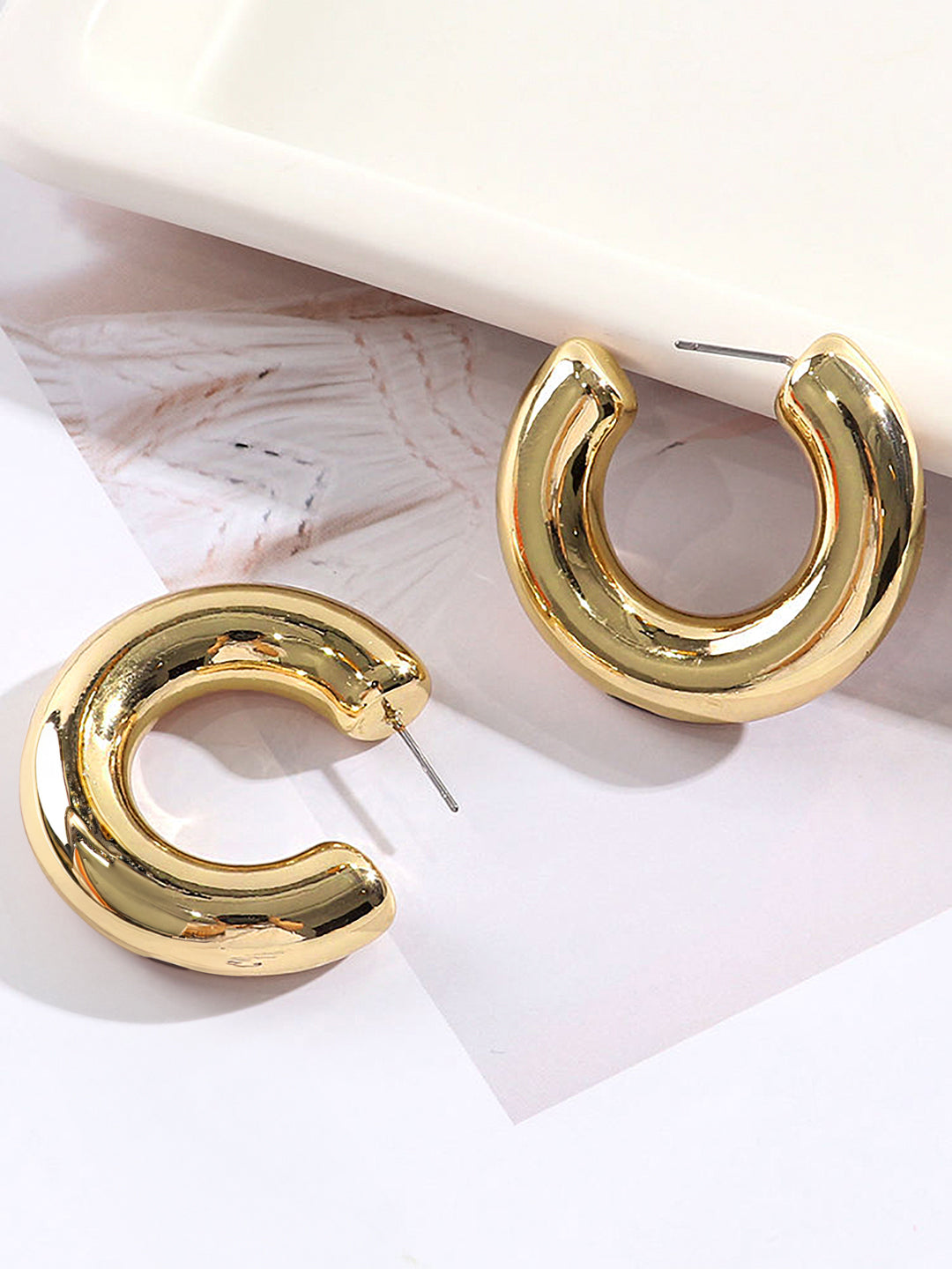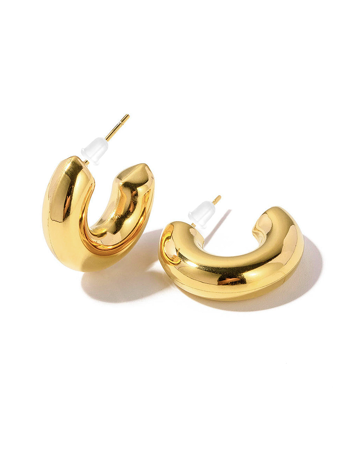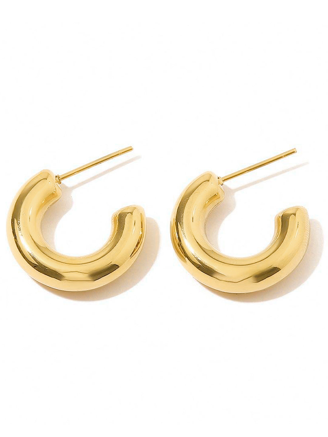 Gold Plated Half Hoop Earrings, secured with post & back closure.