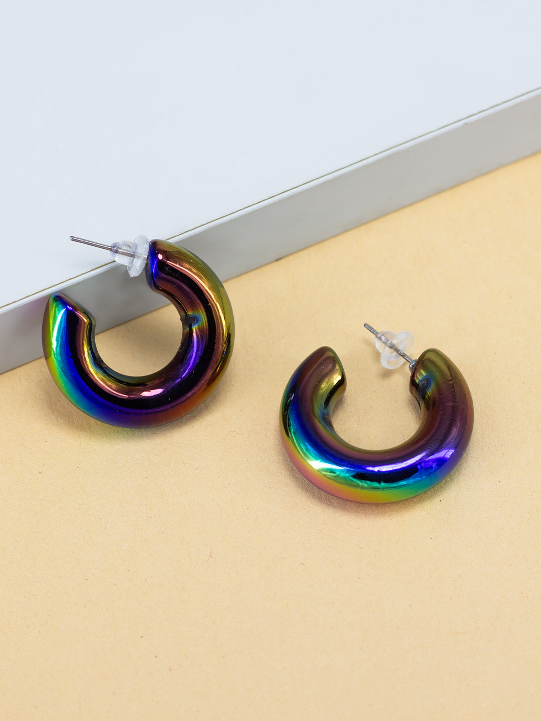 Multicolor Half Hoop Earrings, secured with post & back closure.