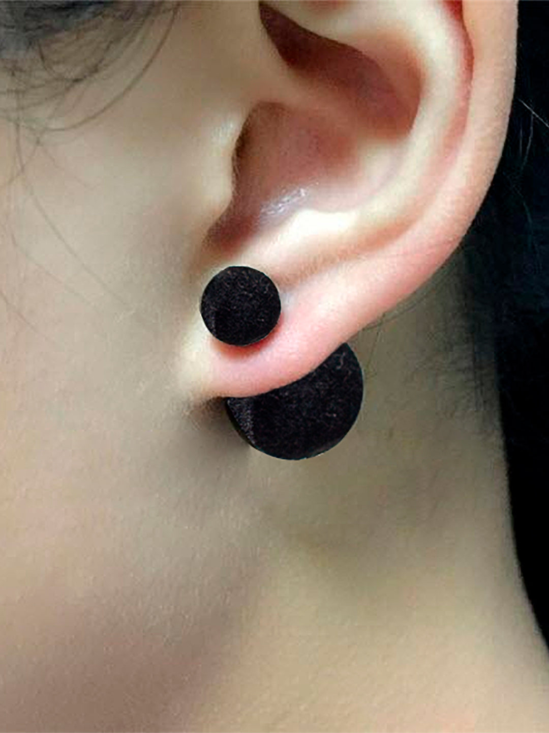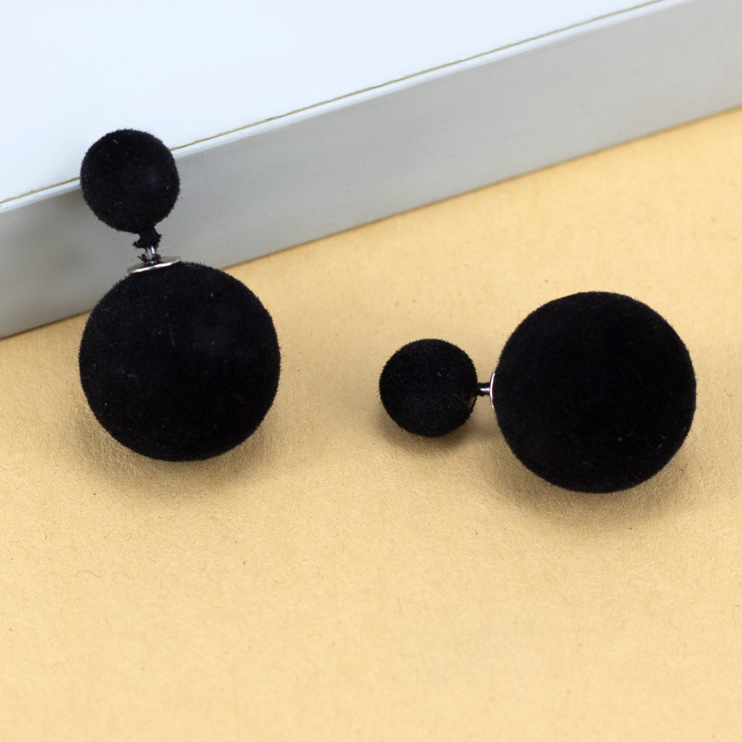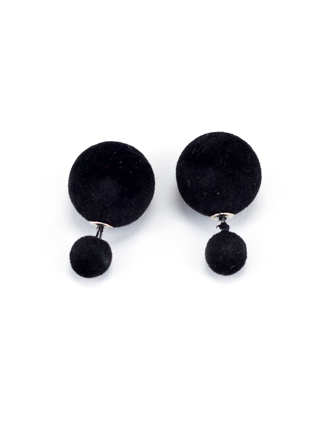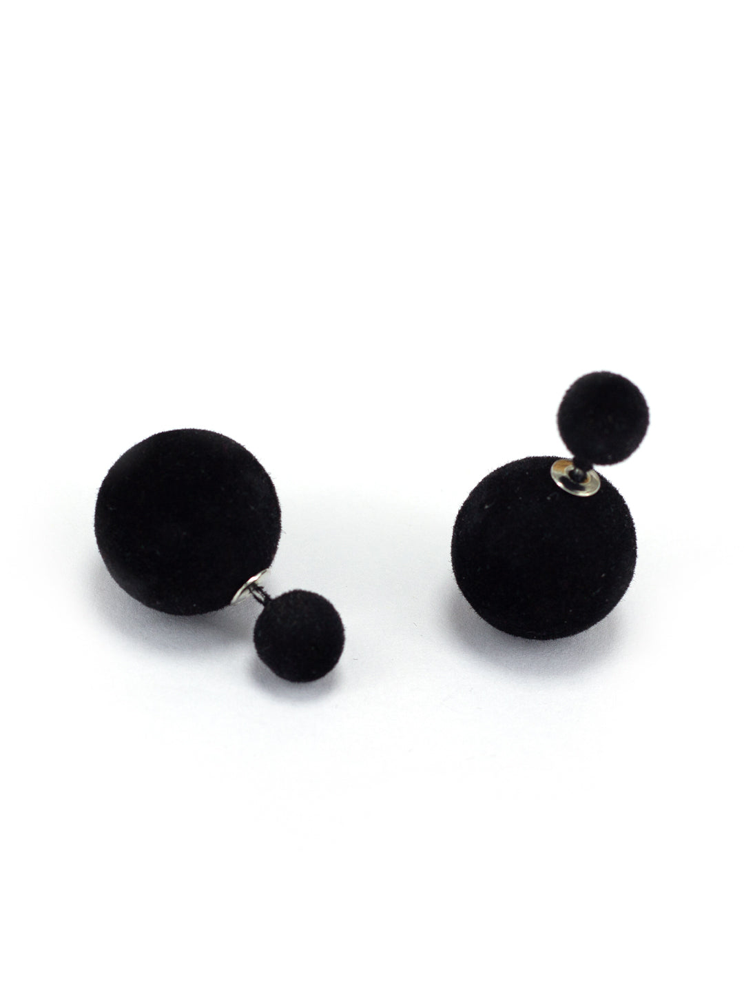 Black Double Sided Studs Earrings, secured with post & back closure.