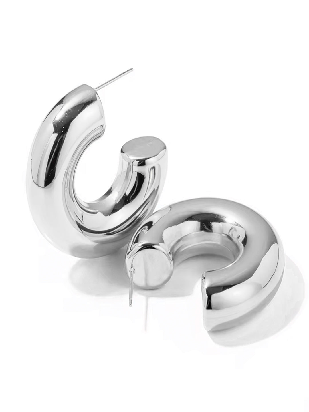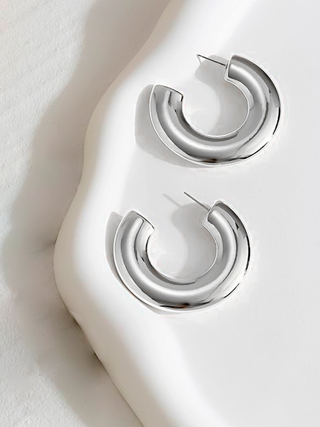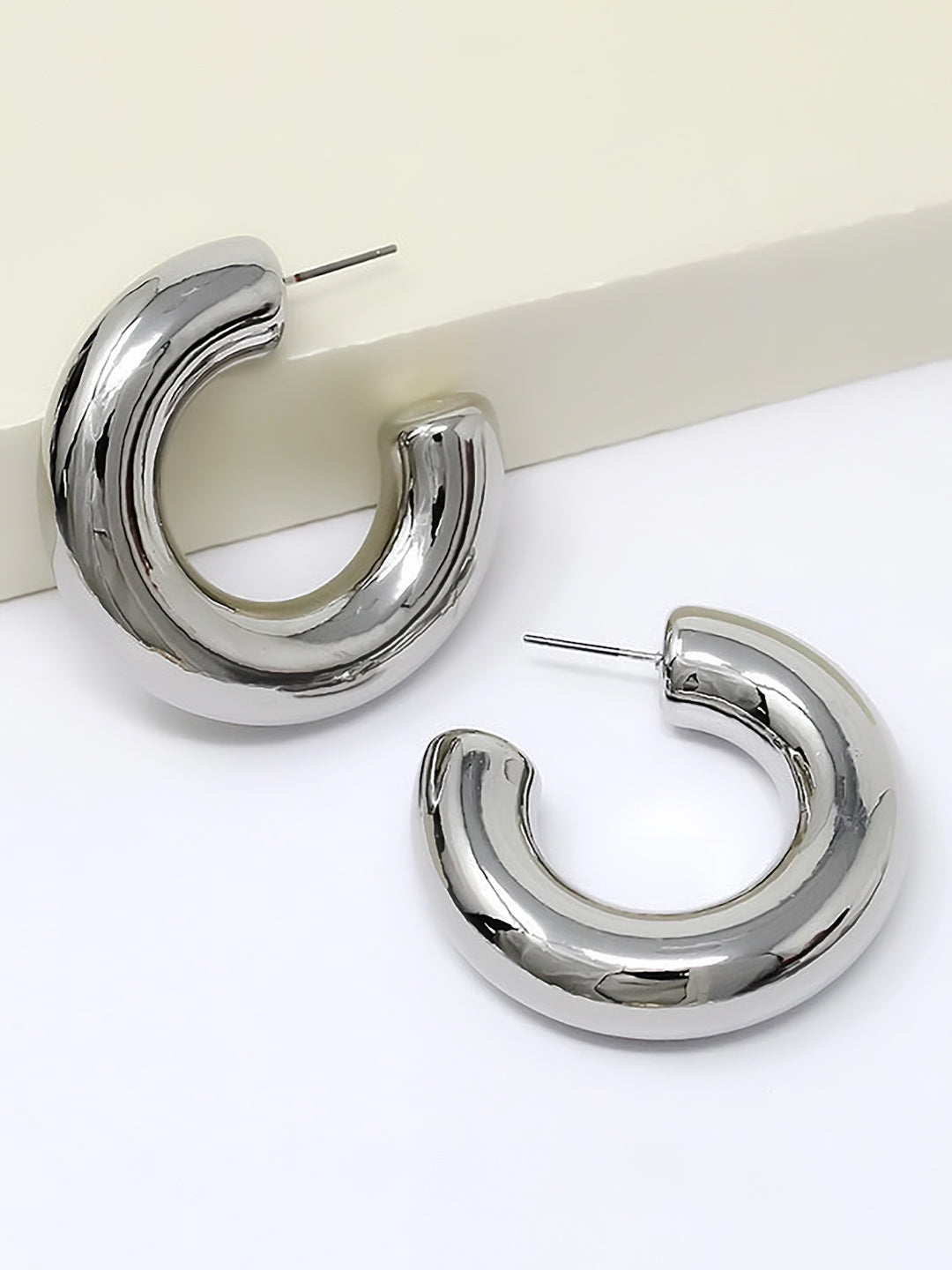 Silver Plated Half Hoop Earrings, secured with post & back closure.