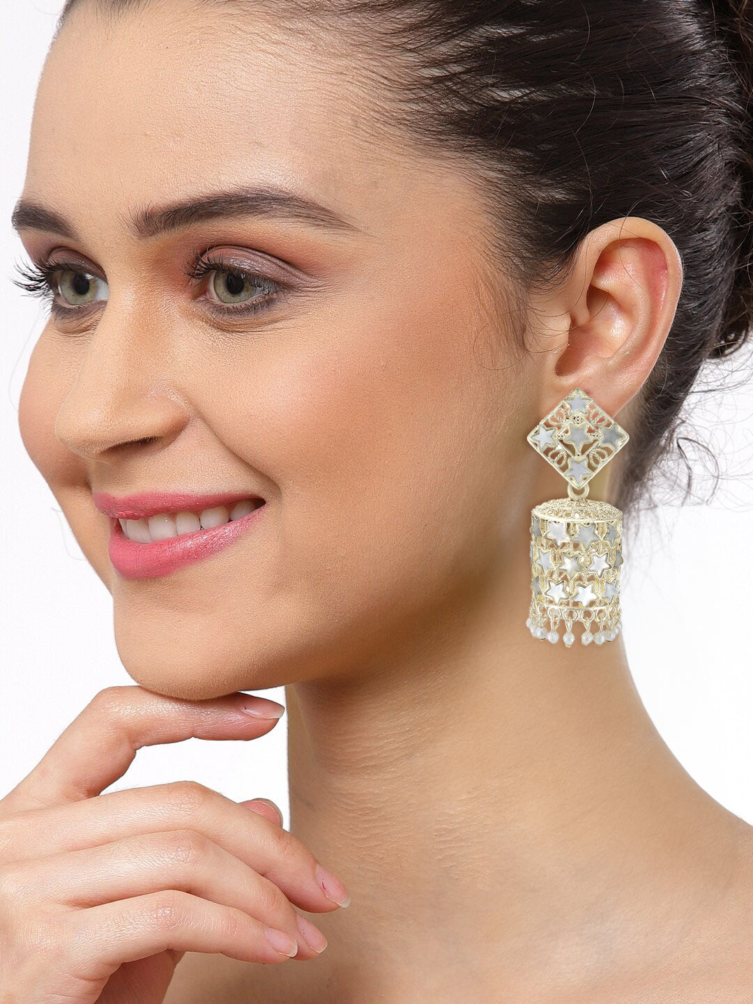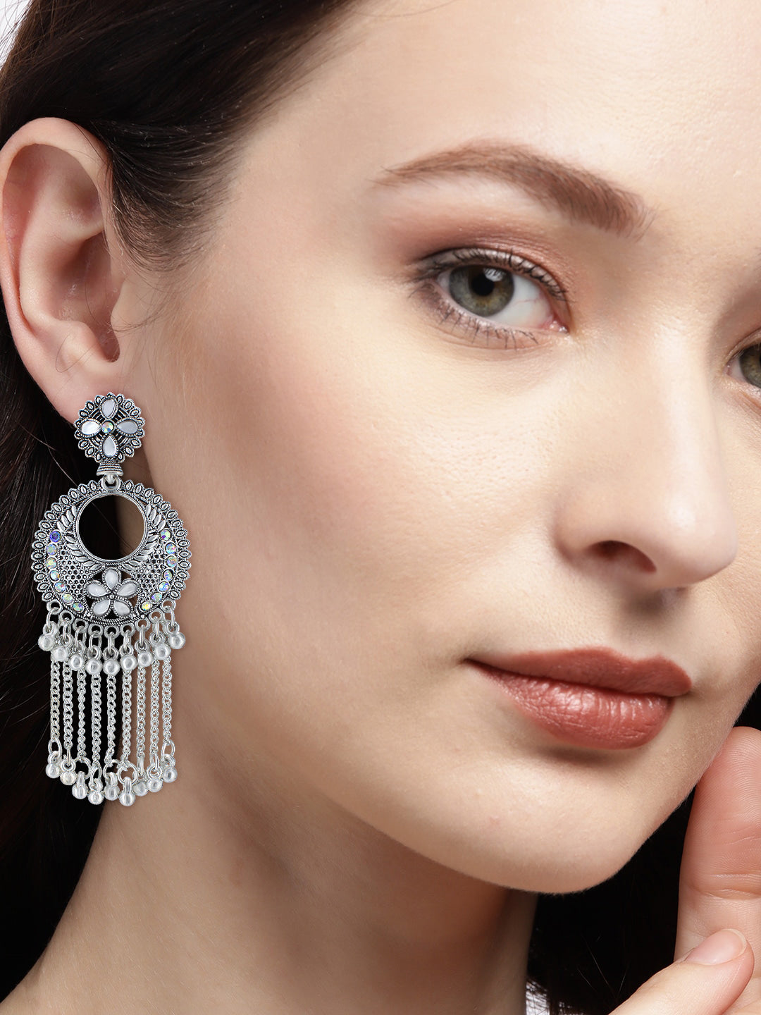 Pack of 3 Gold Plated & Silver Oxidised Artificial Beads & Mirror Studded Jhumka Earrings