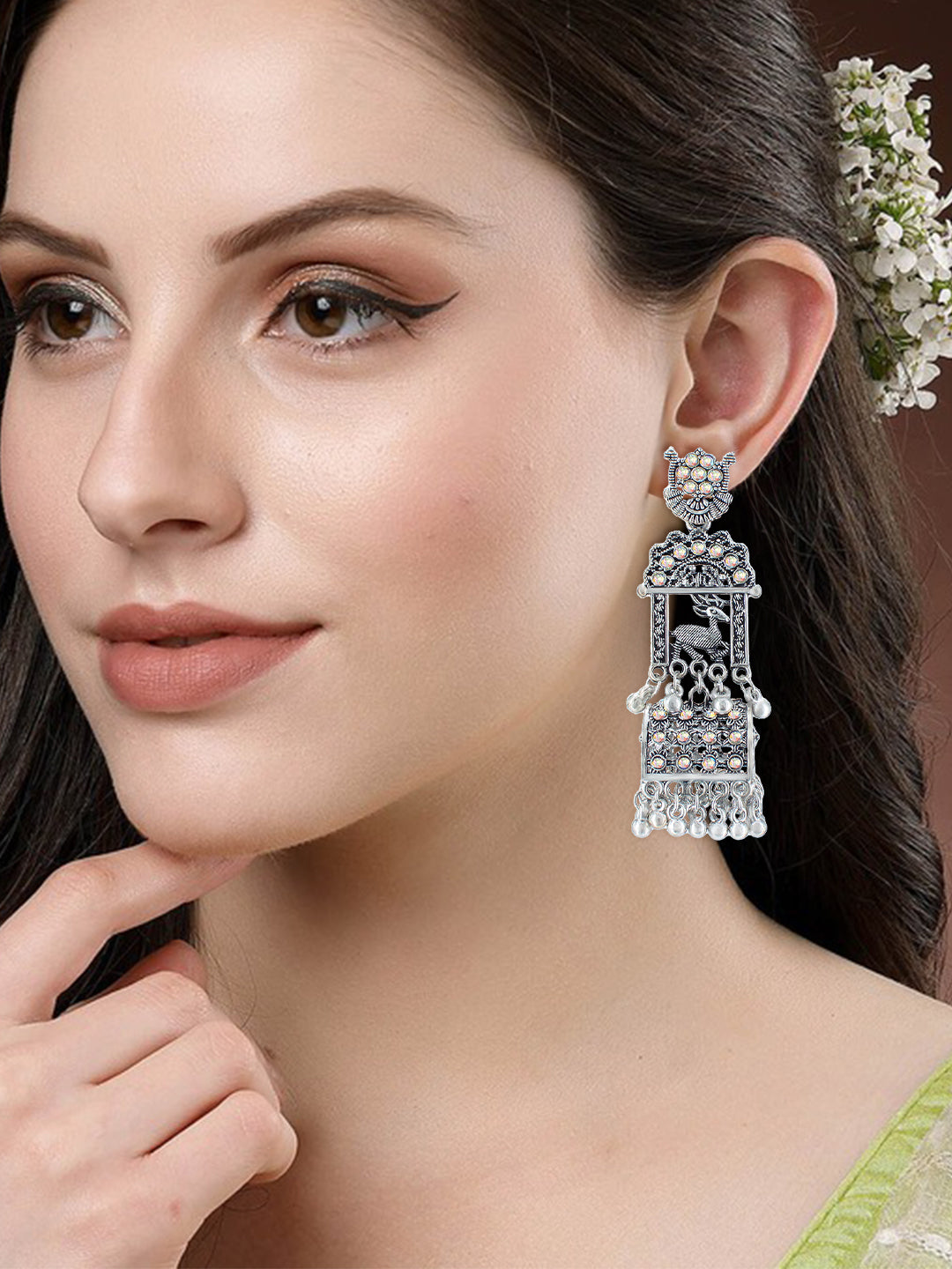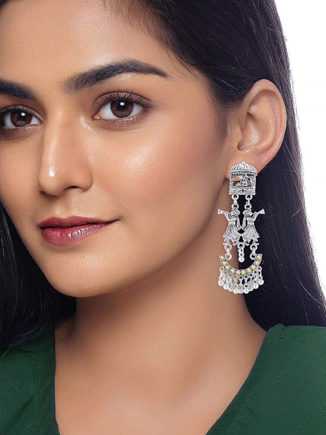 Silver Oxidised Radha Krishna Jhumka Earrings