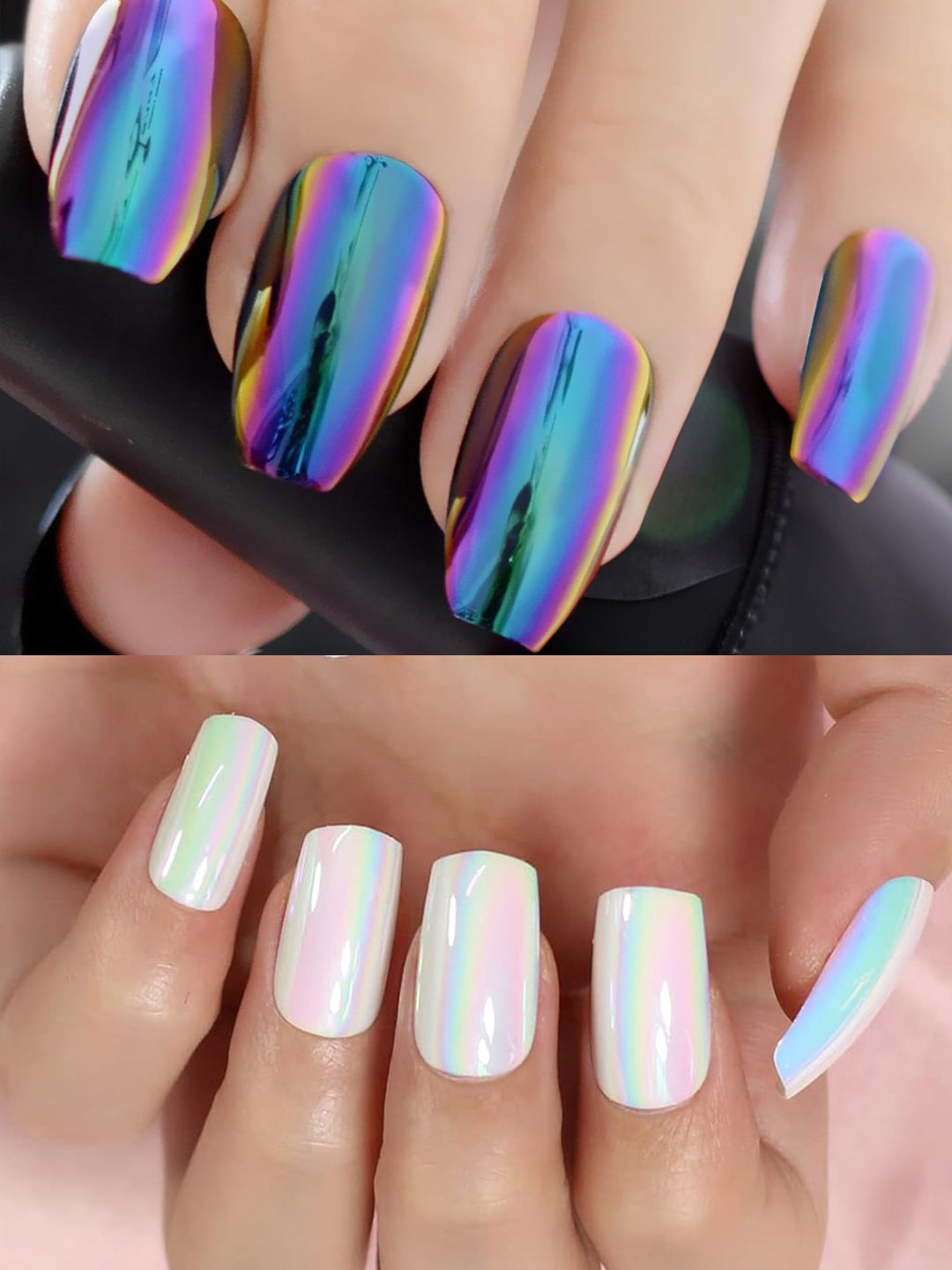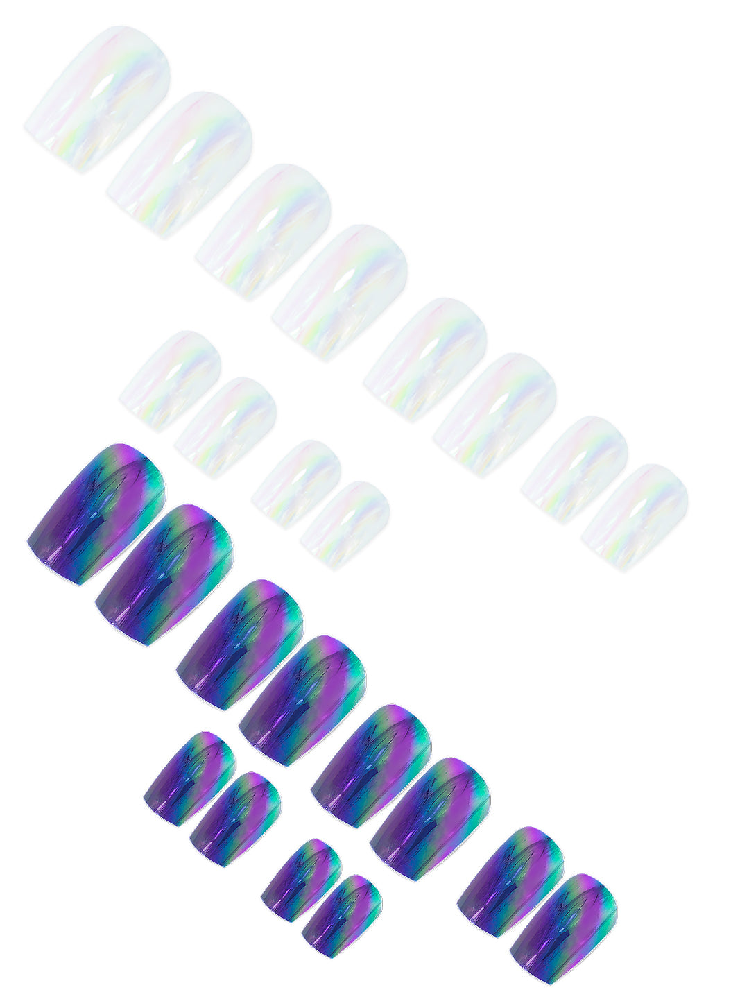 Set of 24 Blue and White Metallic Duochrome stick on nails