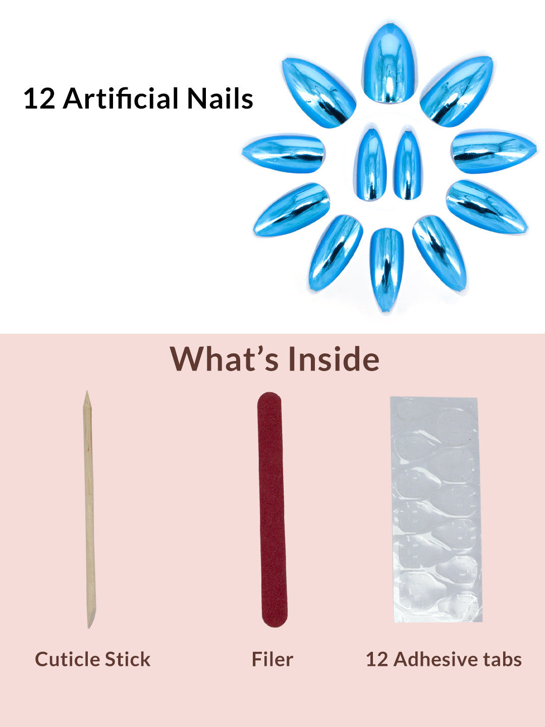 Set Of 12 Reusable Chromatic Fake Nails With Application Kit - Electric Blue