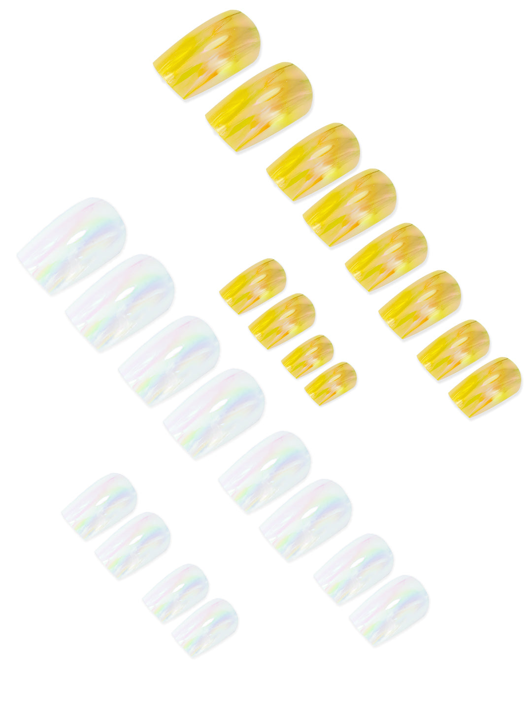 Set of 24 Gold and White Metallic Duochrome stick on nails