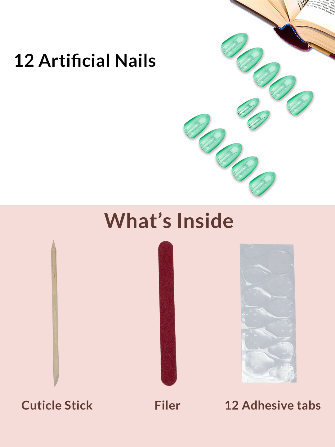 Set Of 12 Reusable Chromatic Fake Nails With Application Kit - Mint Green