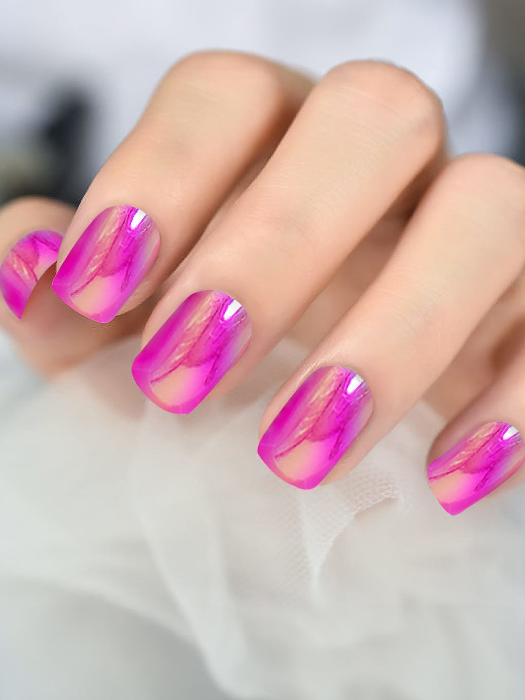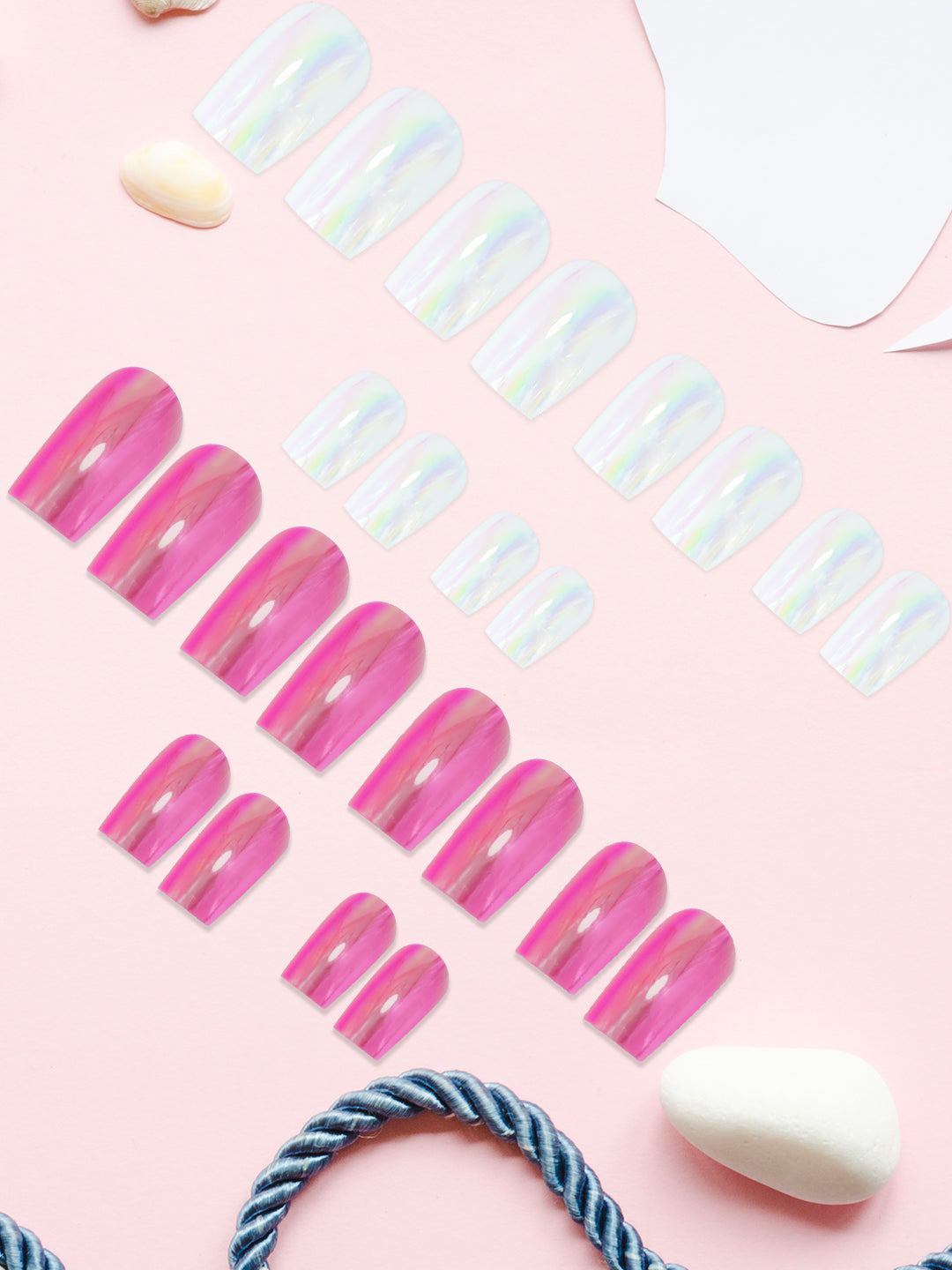Set of 24 Fuchsia and White Metallic Duochrome stick on nails