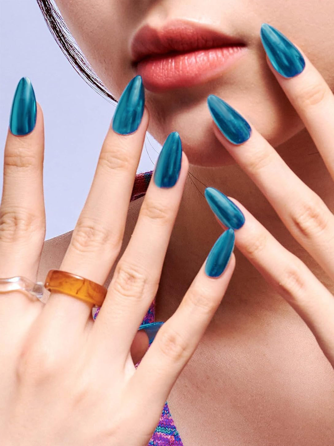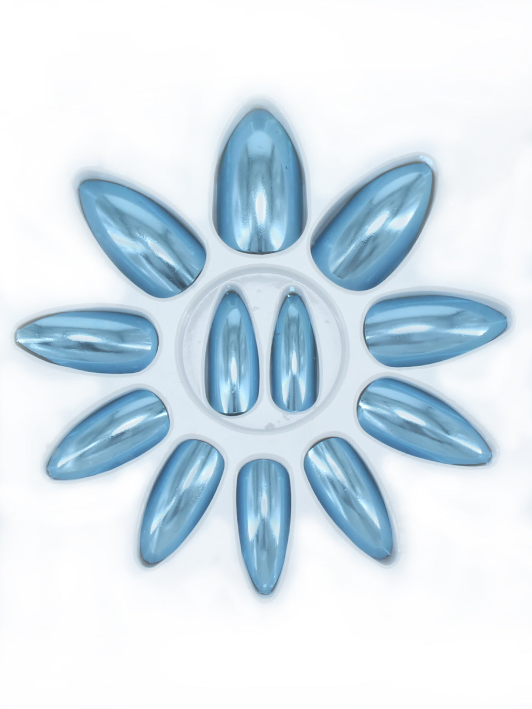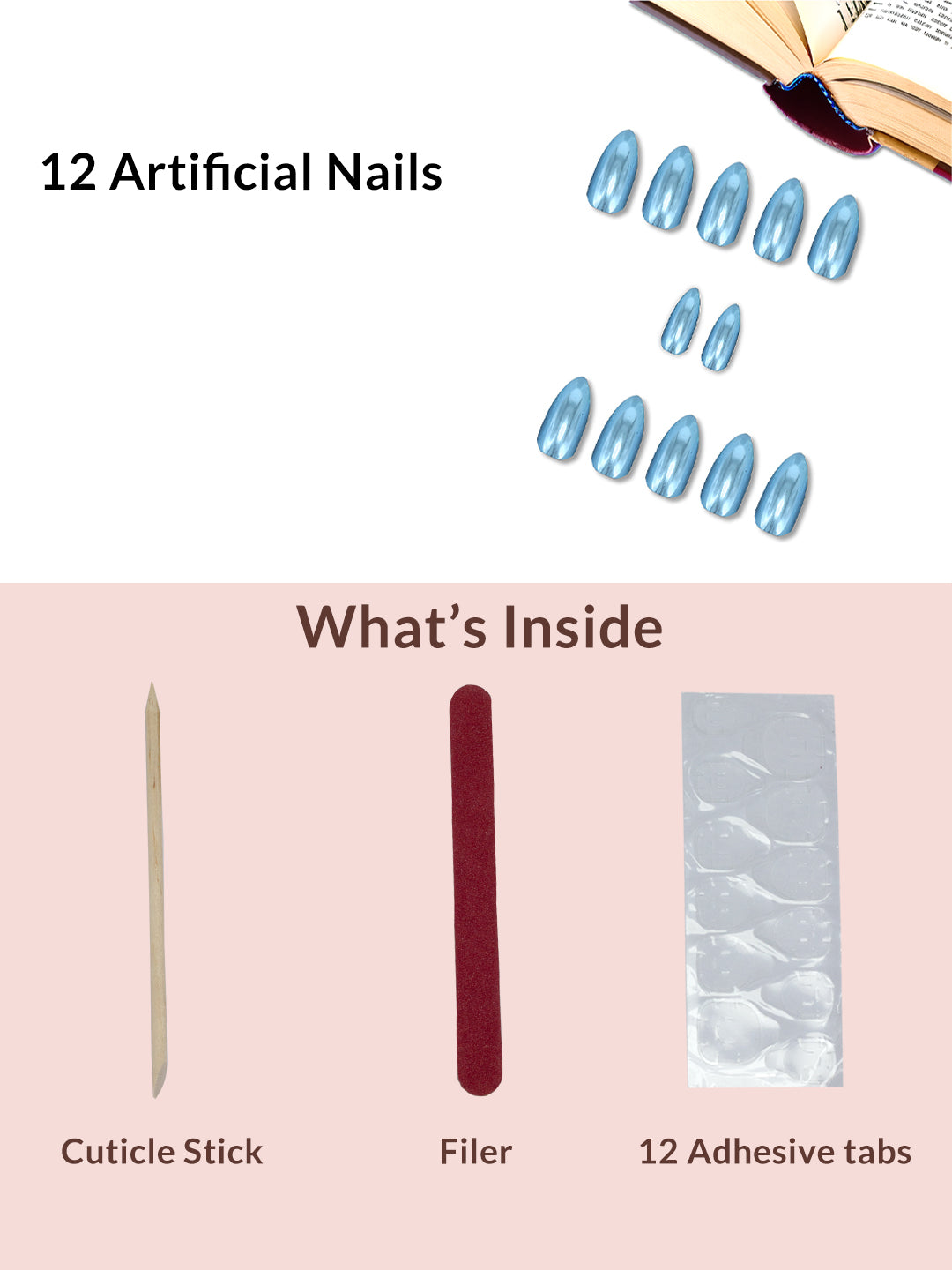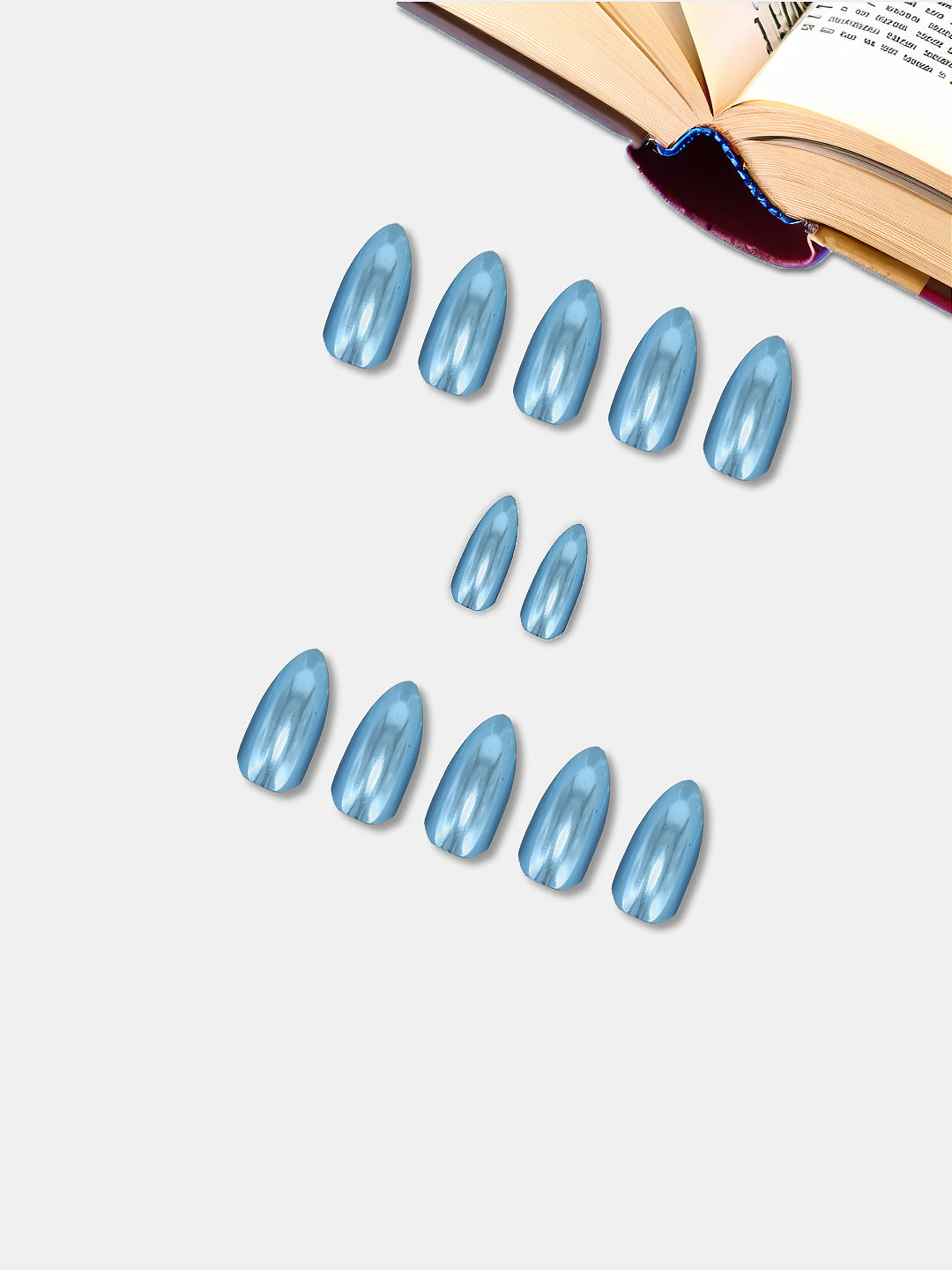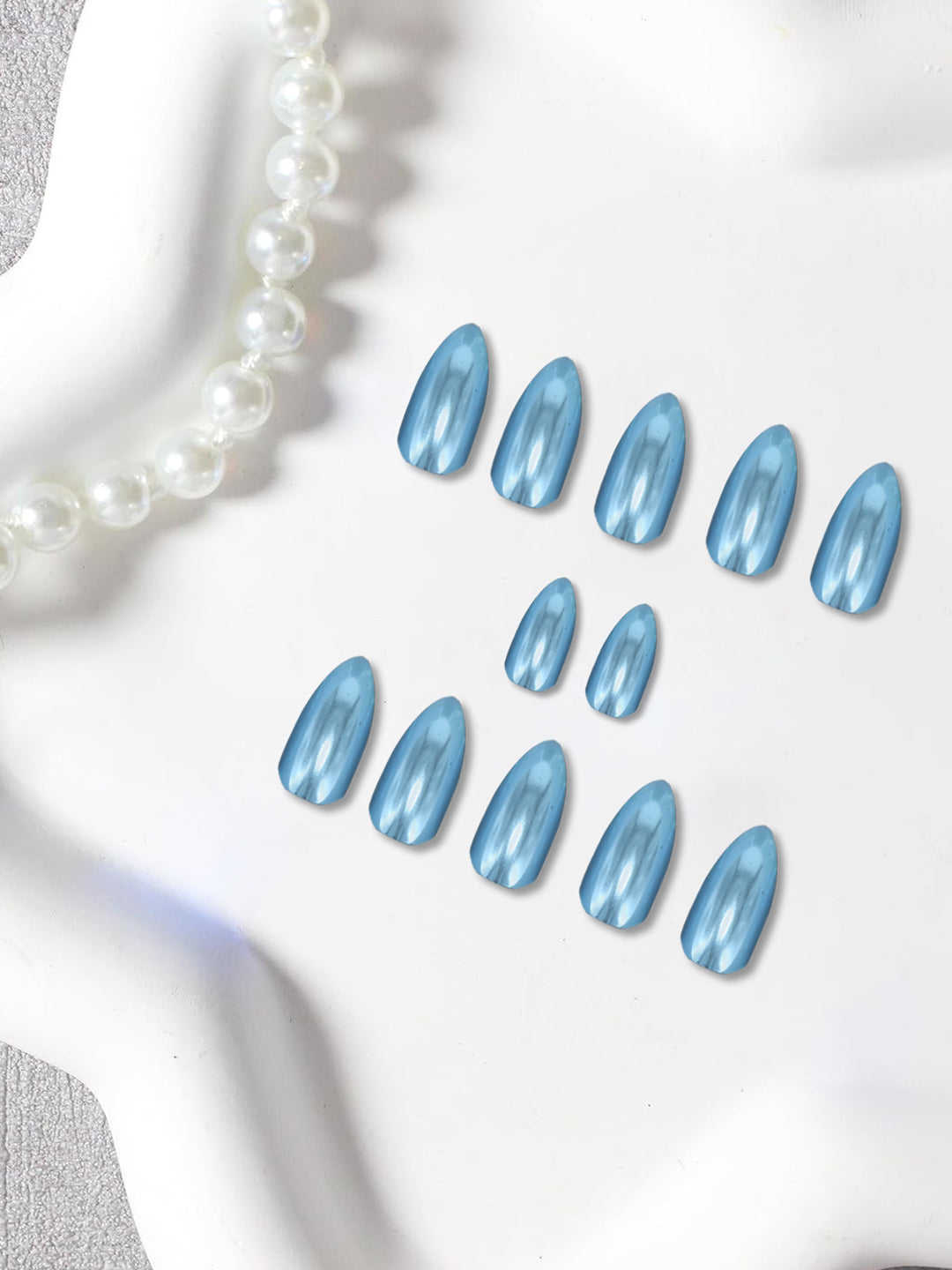 Set Of 12 Reusable Chromatic Fake Nails With Application Kit - Steel Blue
