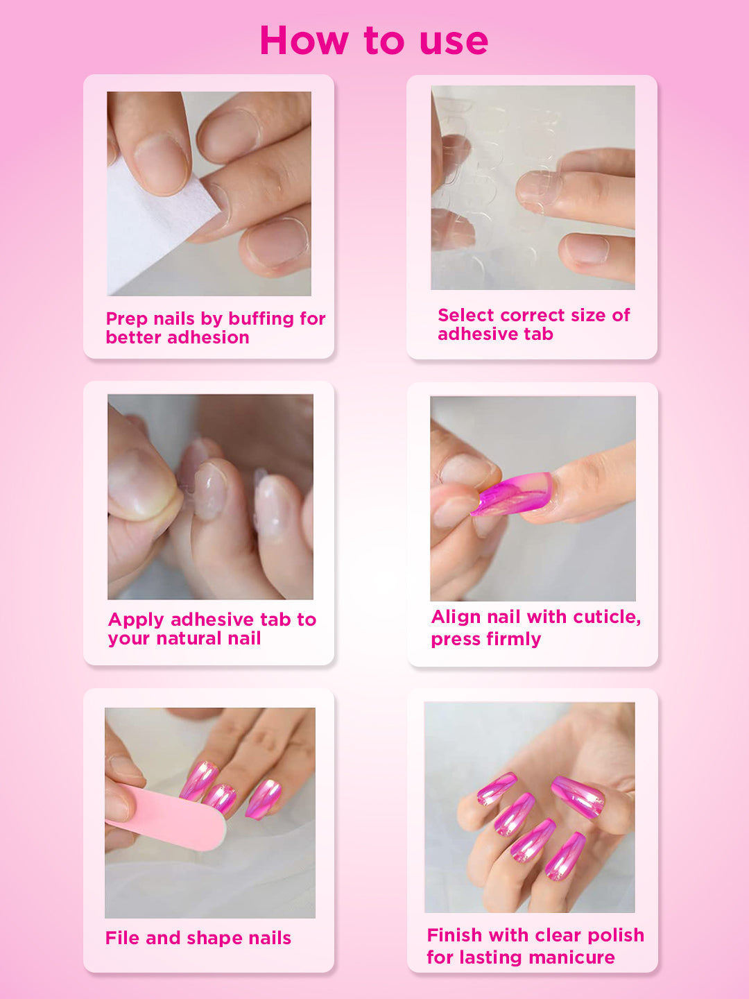 PRIVIU stick-on nails are customizable, easily trimmed and filed to fit any nail size. Enjoy comfort and a natural look tailored to your unique nails.