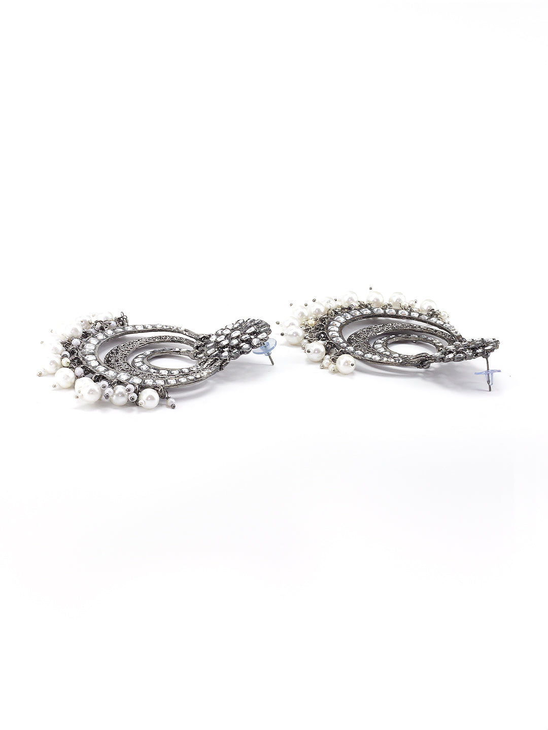 These earrings are silver plated, has kundan and beads drop details and secured with post and back closure.