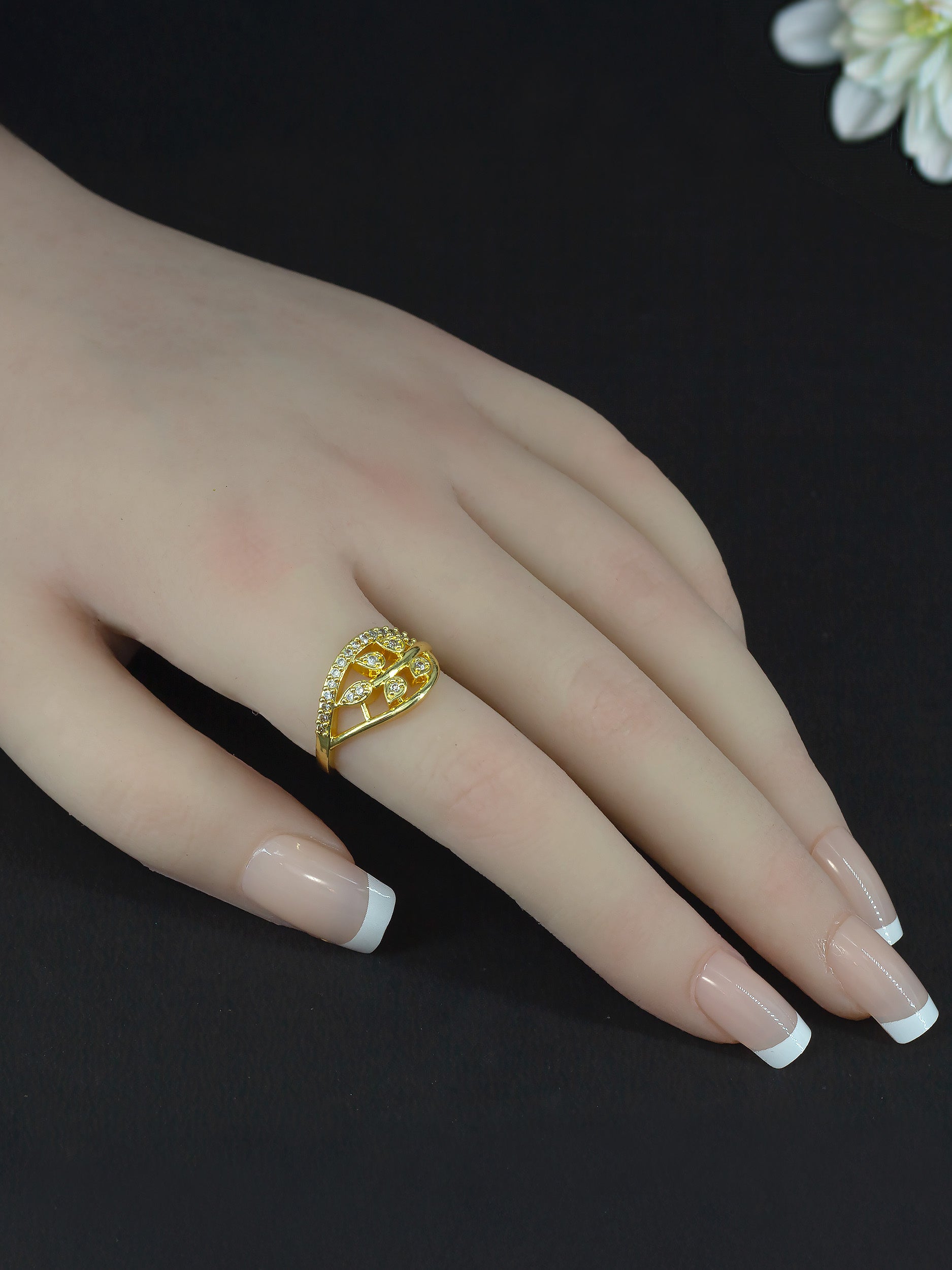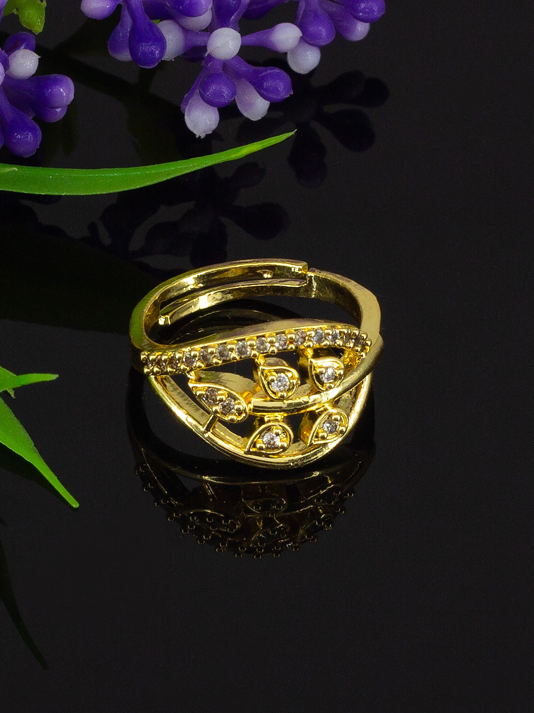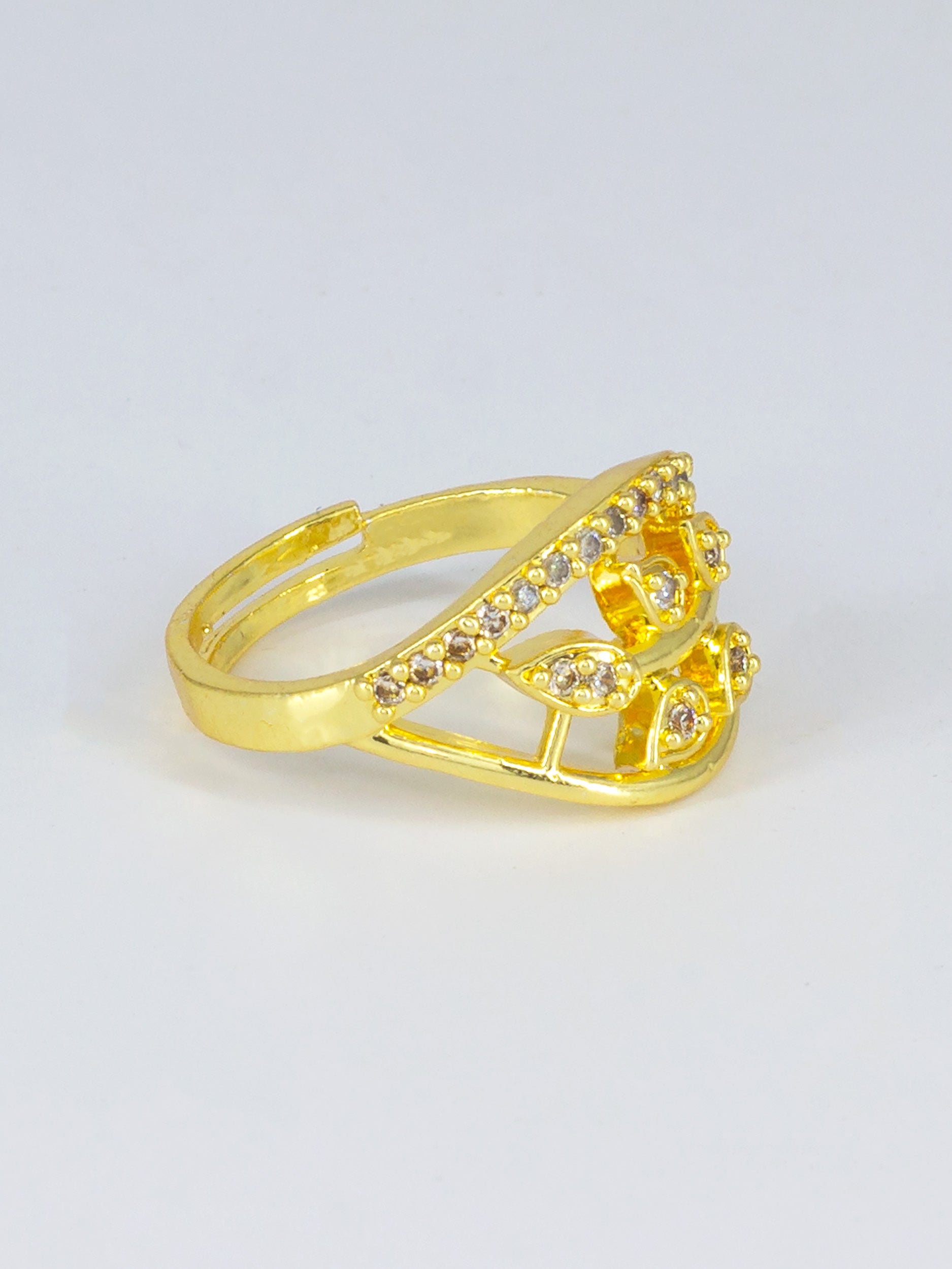Gold Plated AD Leaf Traditional Adjustable Ring for Women
