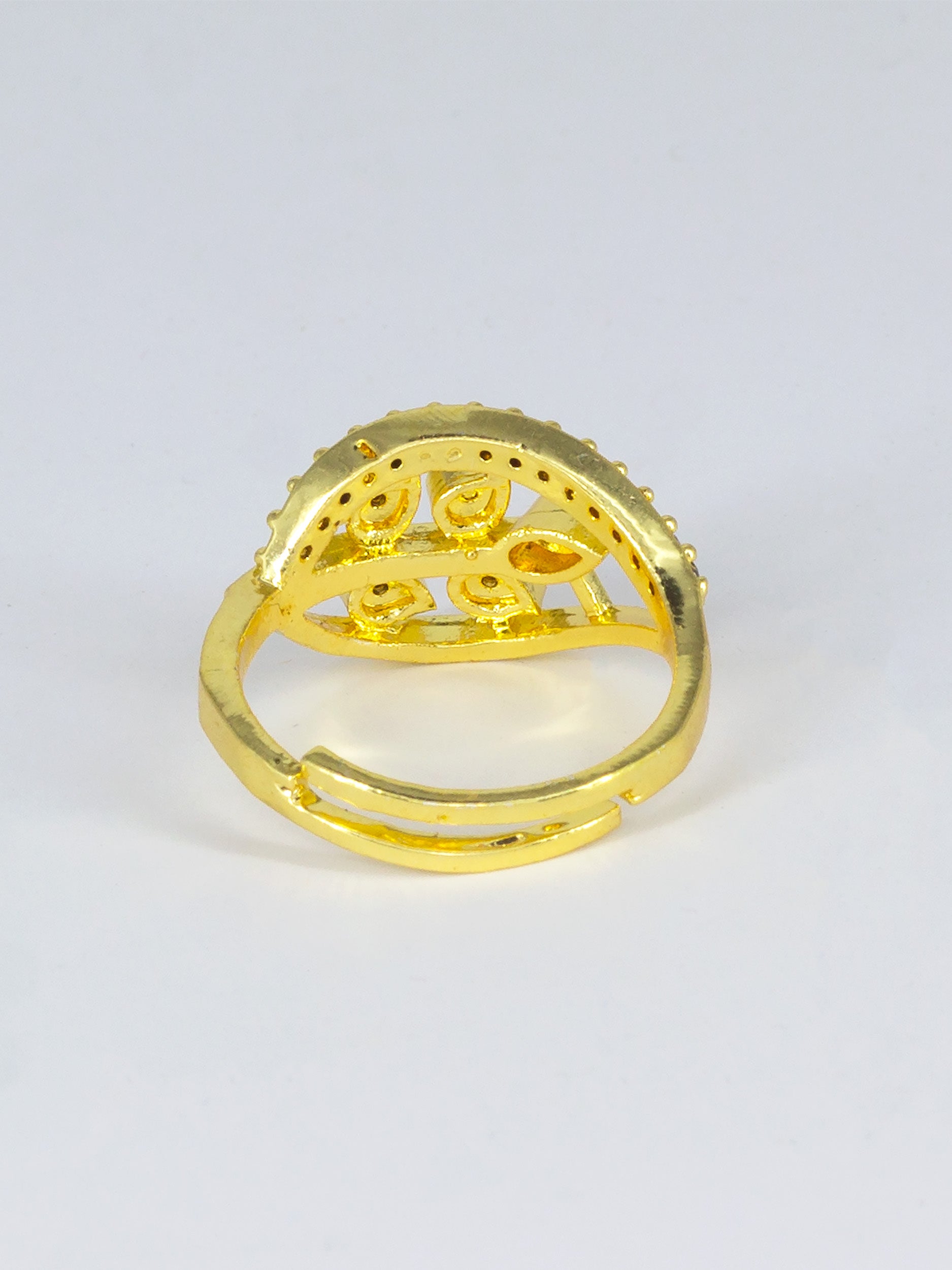 Gold Plated American Diamond Studded Ring with Adjustable Closure.