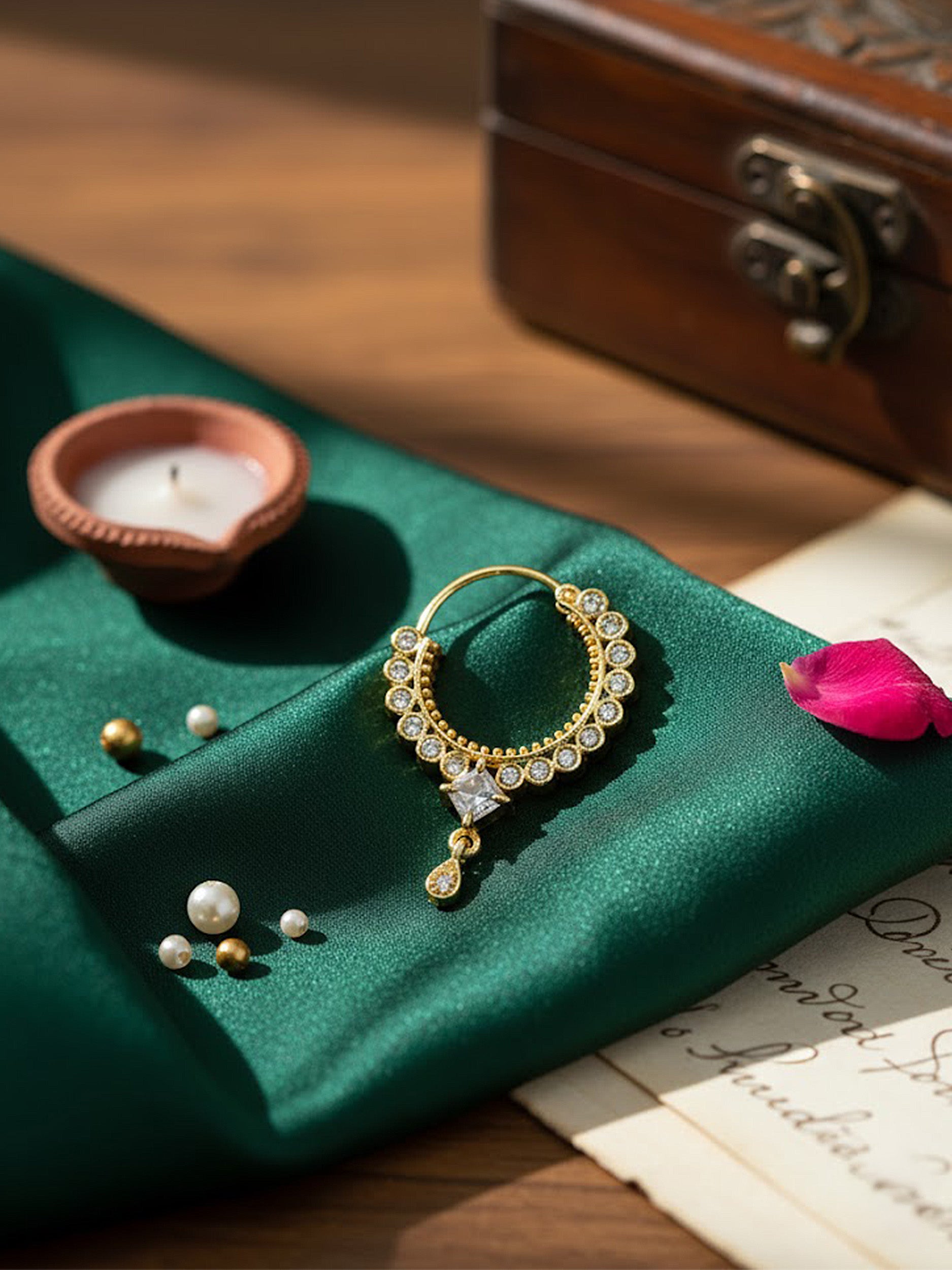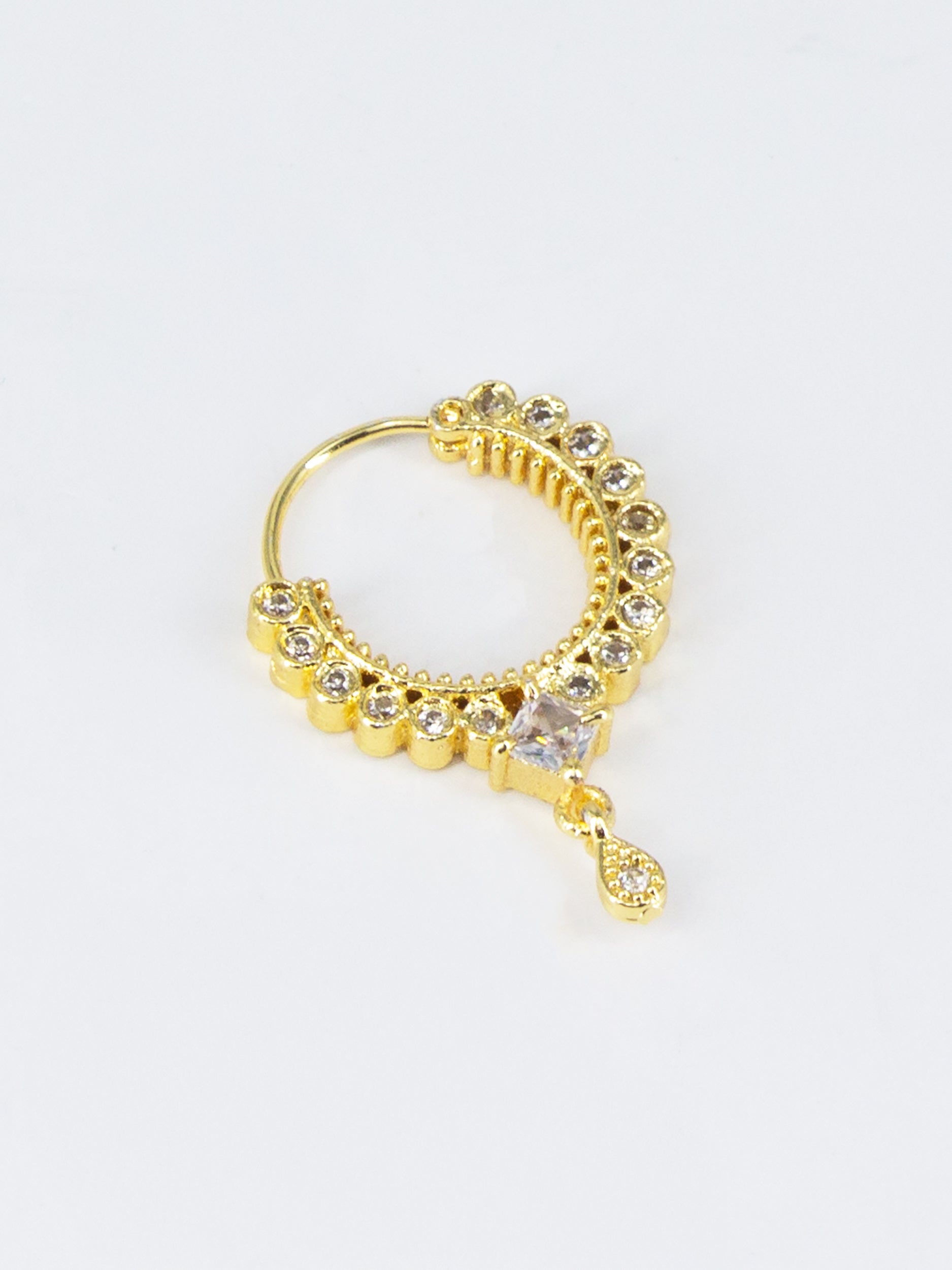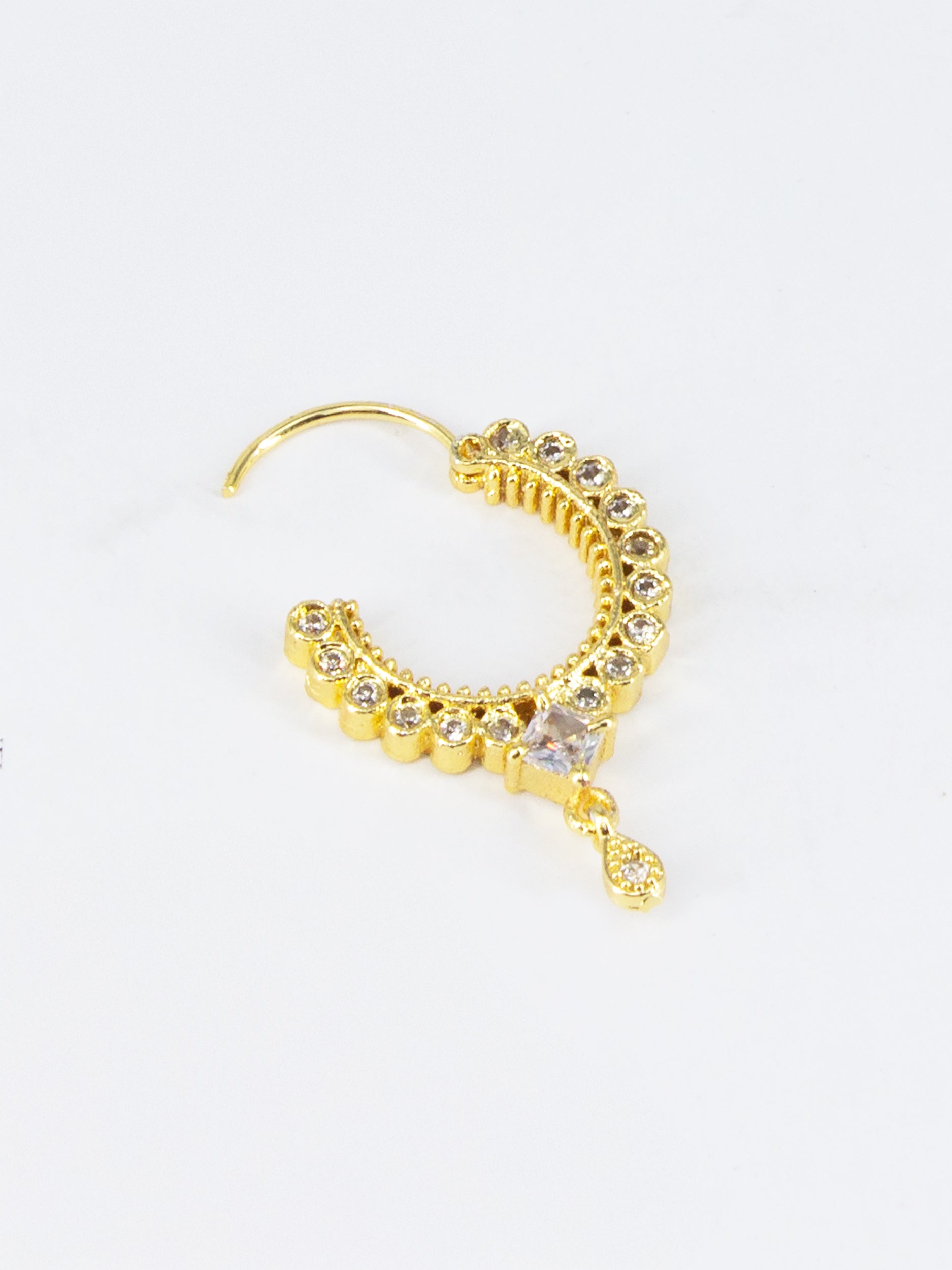 Gold Plated AD Maharashtrian Nose Ring for Women secured with Insert Closure.