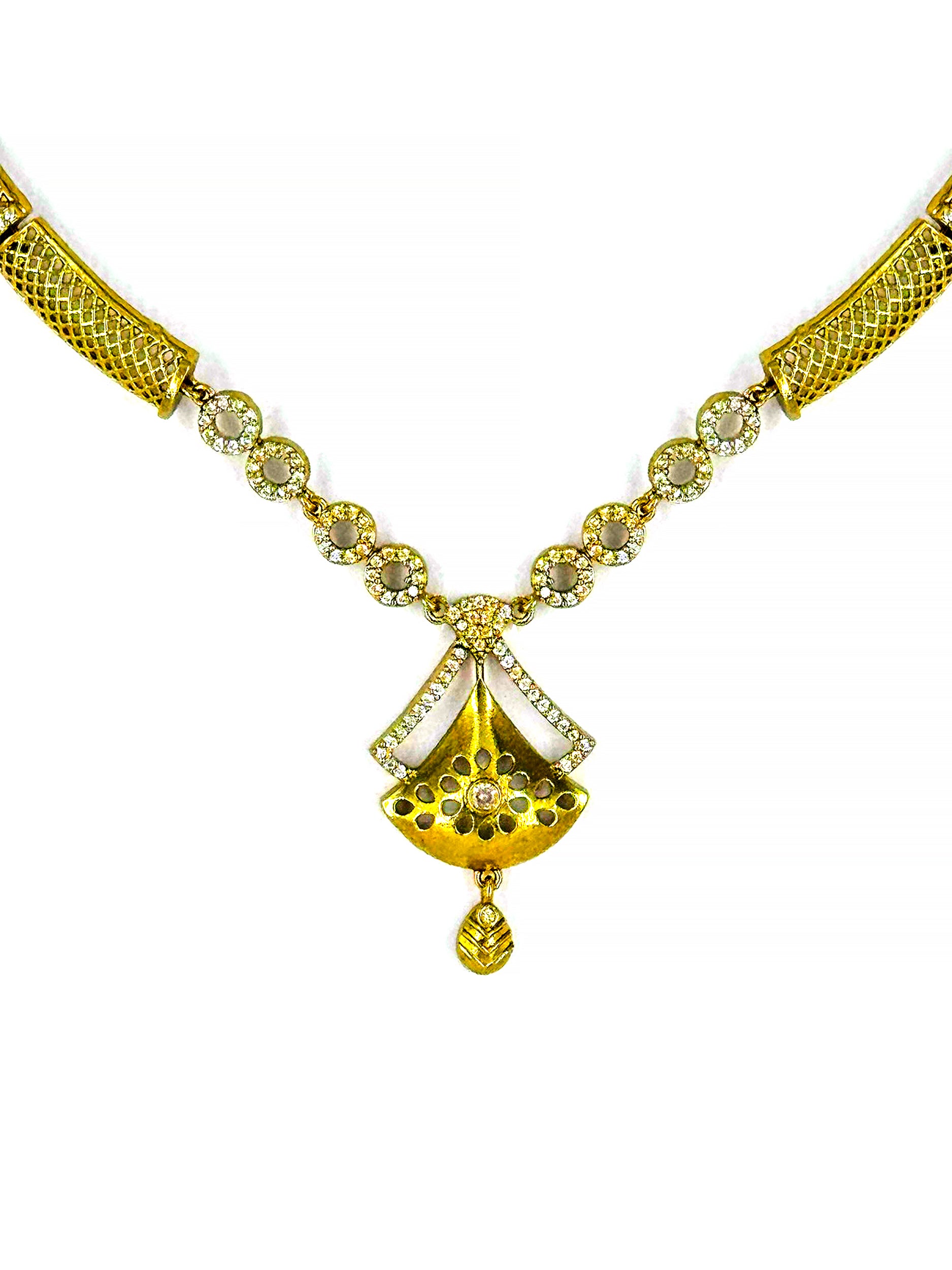 Gold Plated American Diamond Jewellery Set Comes with S-Hook Closure and Matching Earrings with Post & Back Closure.