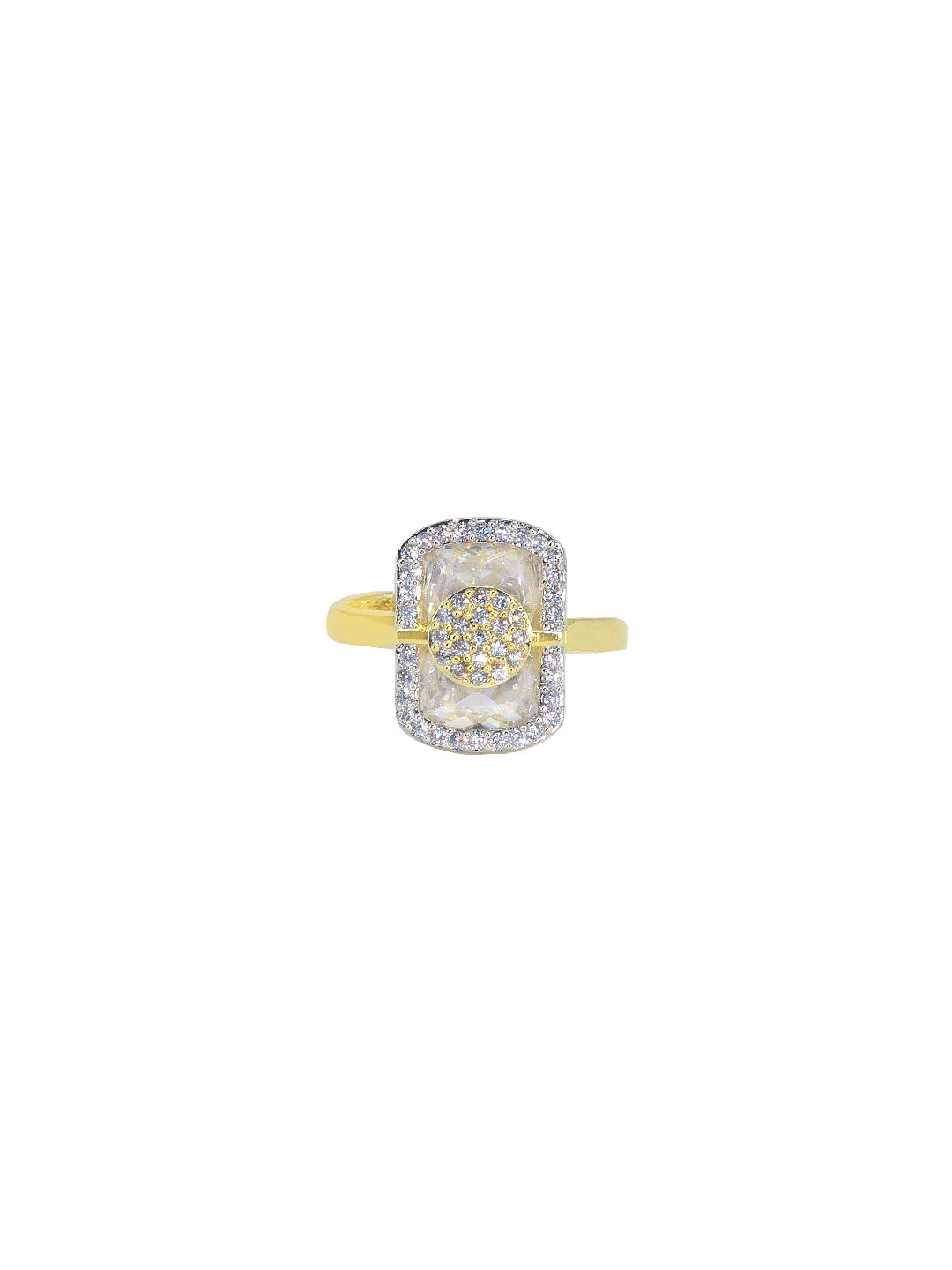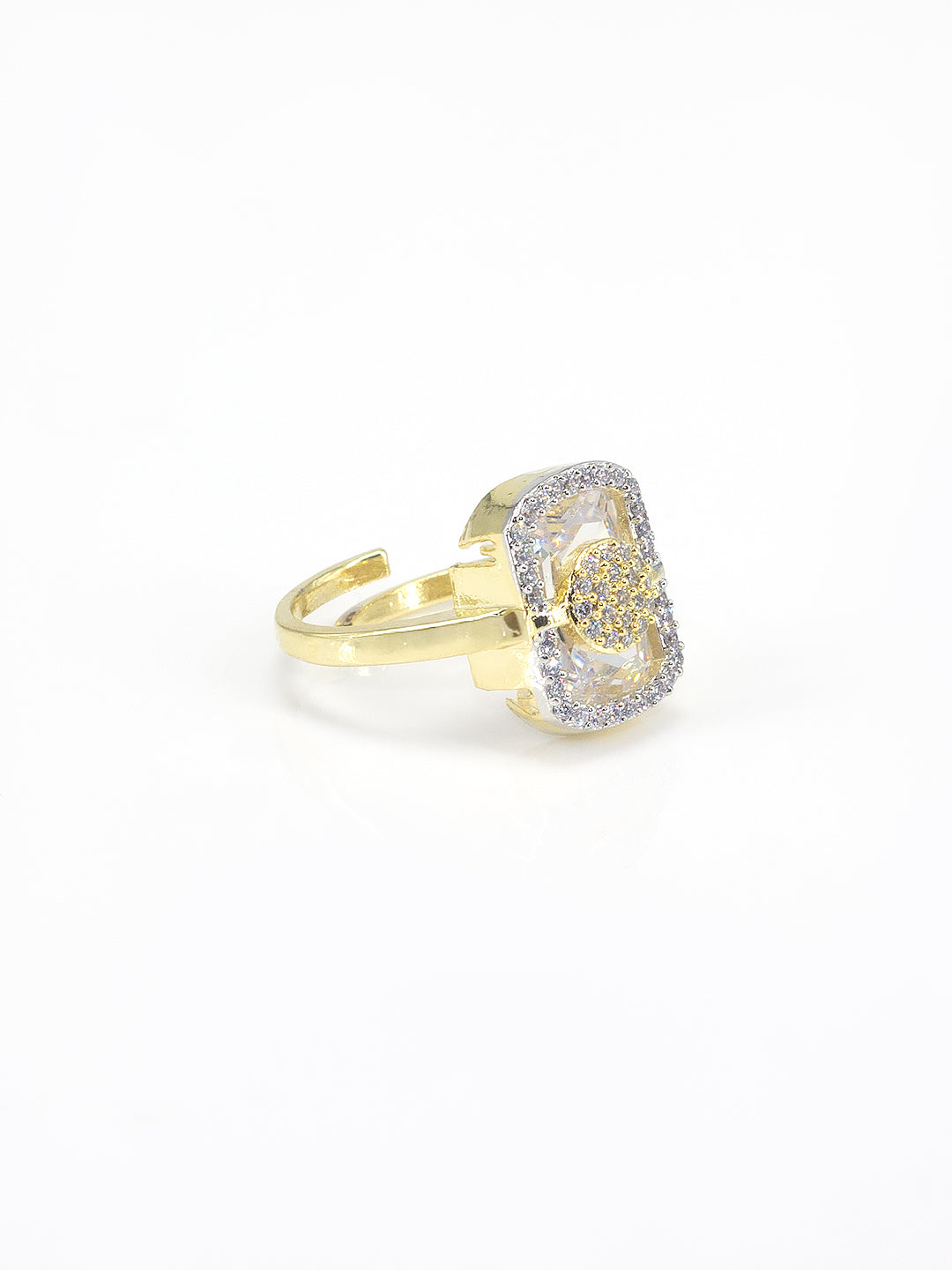 Gold-Plated adjustable finger ring, has AD studded details and has slip-on closure.