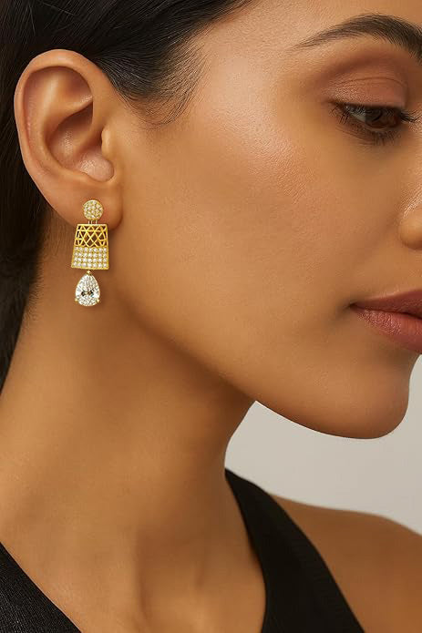 Gold Plated Drop Earrings Comes With Post & Back Closure For Easy Use.
