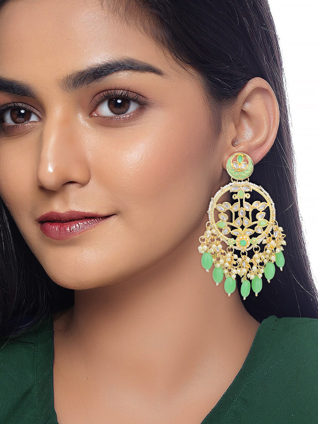 Gold Plated Artificial Stones & Beads Studded Drop Earrings