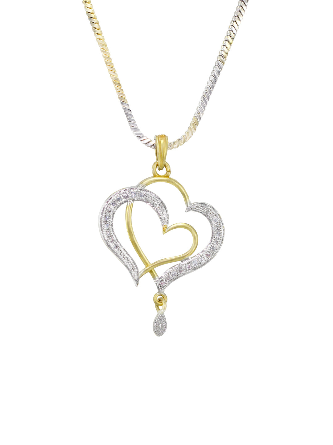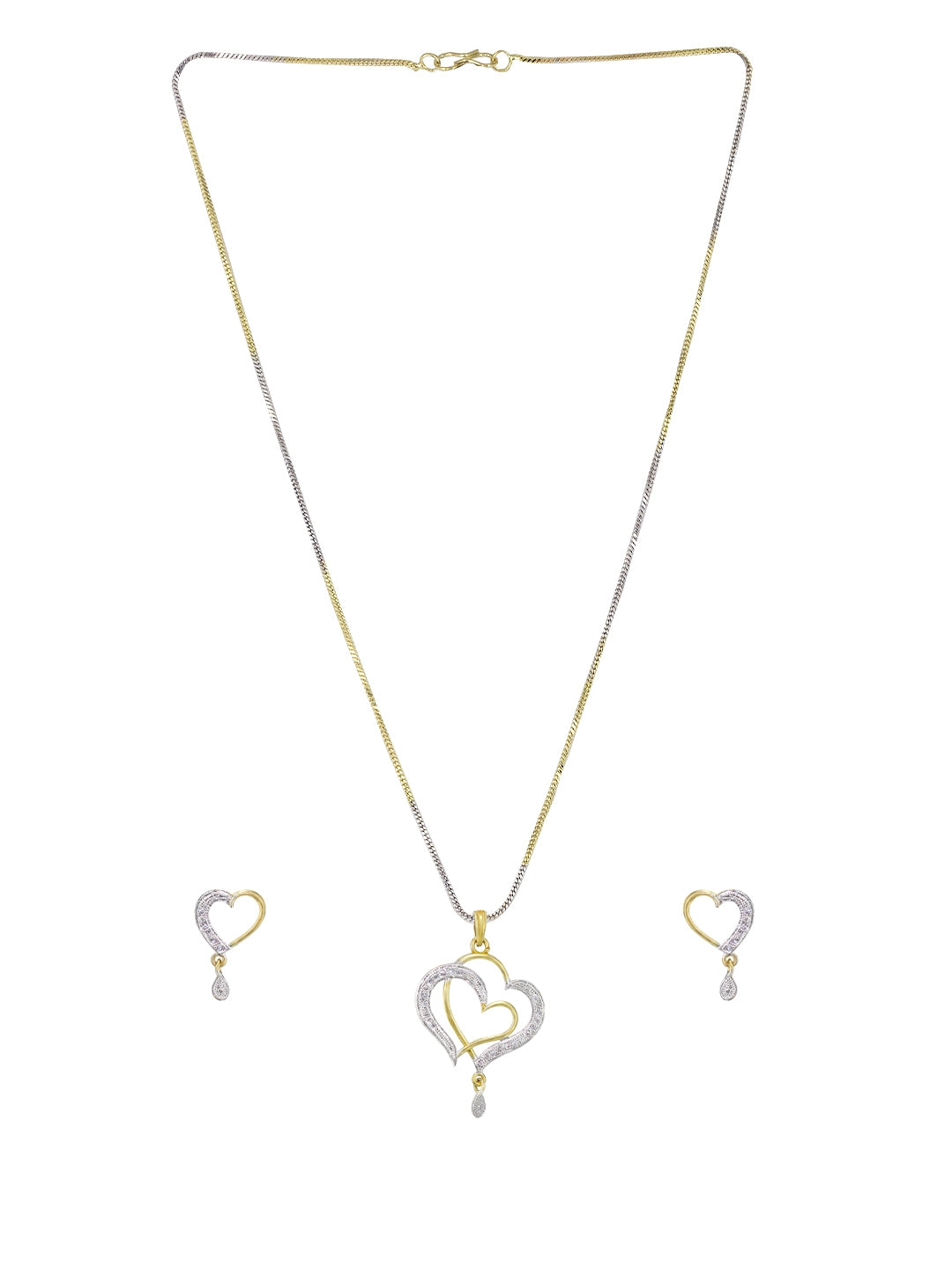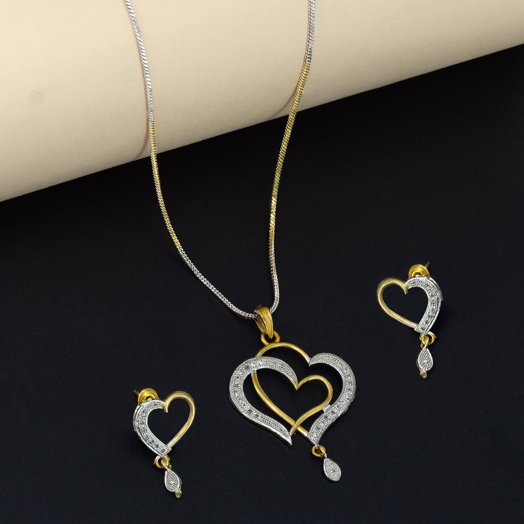 Gold Plated Heart American Diamond Trendy Pendant Set
