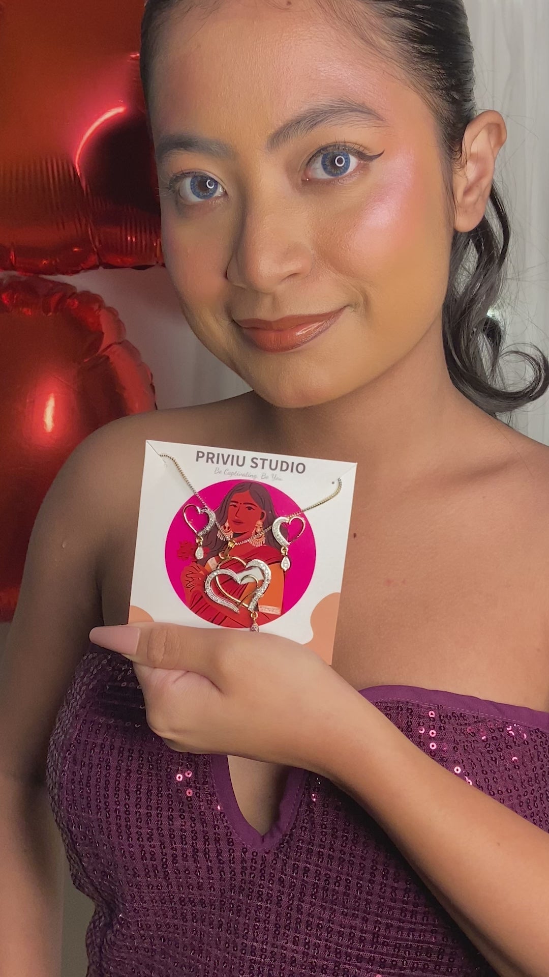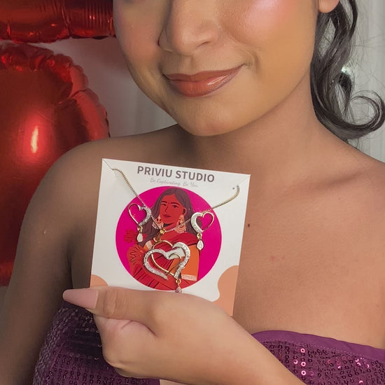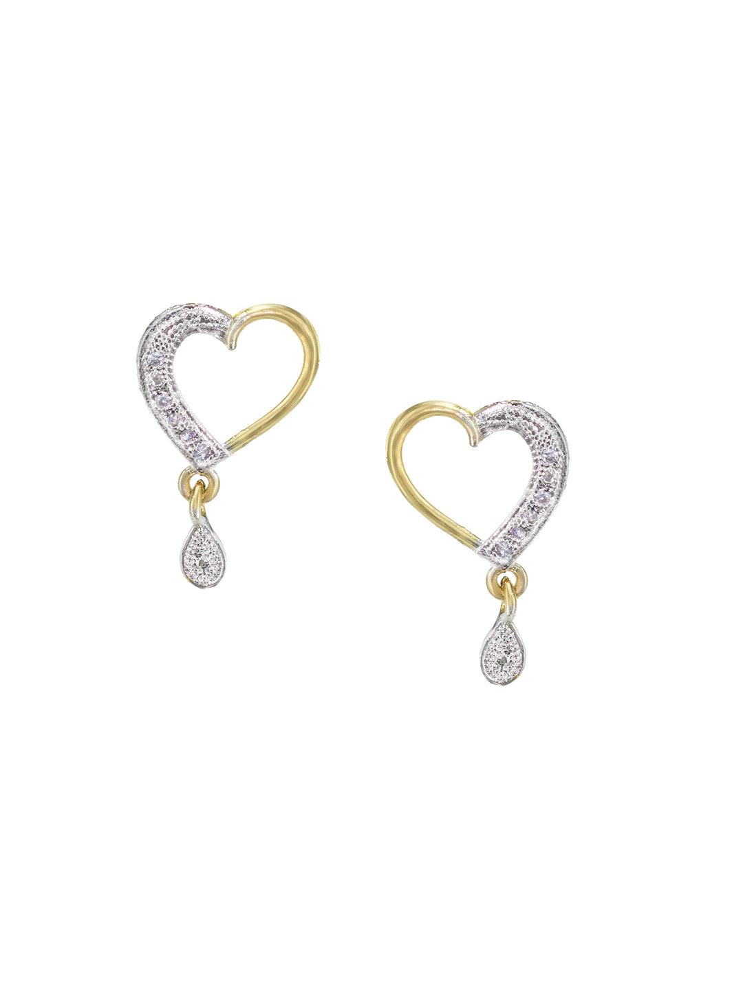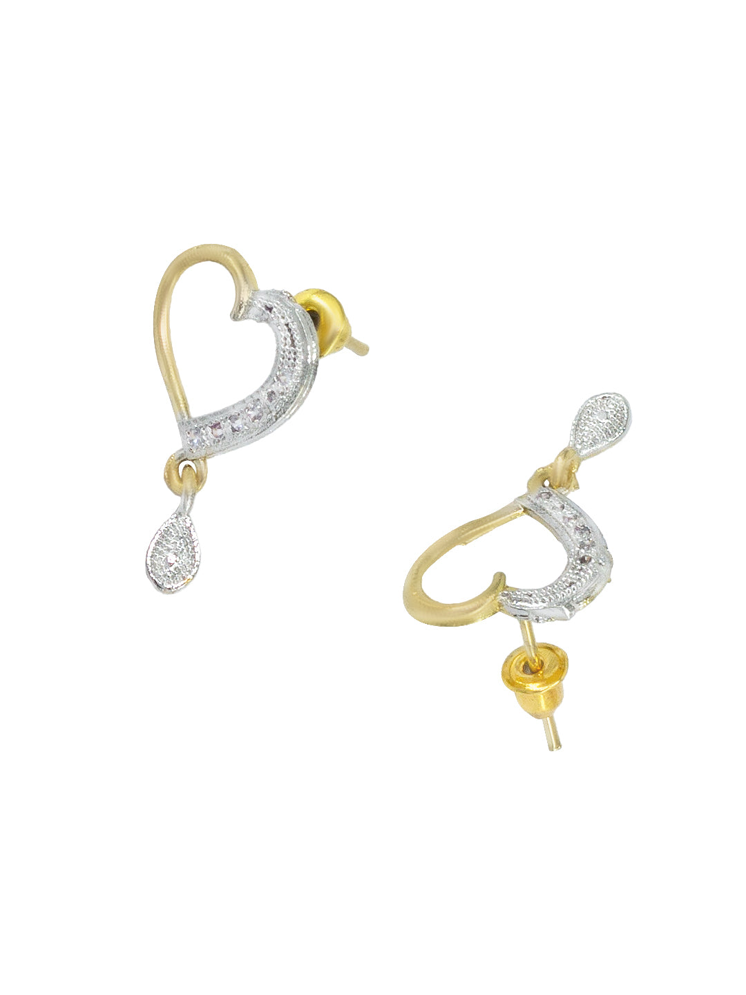 This pendant set consist of a pendant with a chain and a pair of matching earrings, has AD studded & heart details and secured with s-hook closure. Earrings are secured with post and back closure.