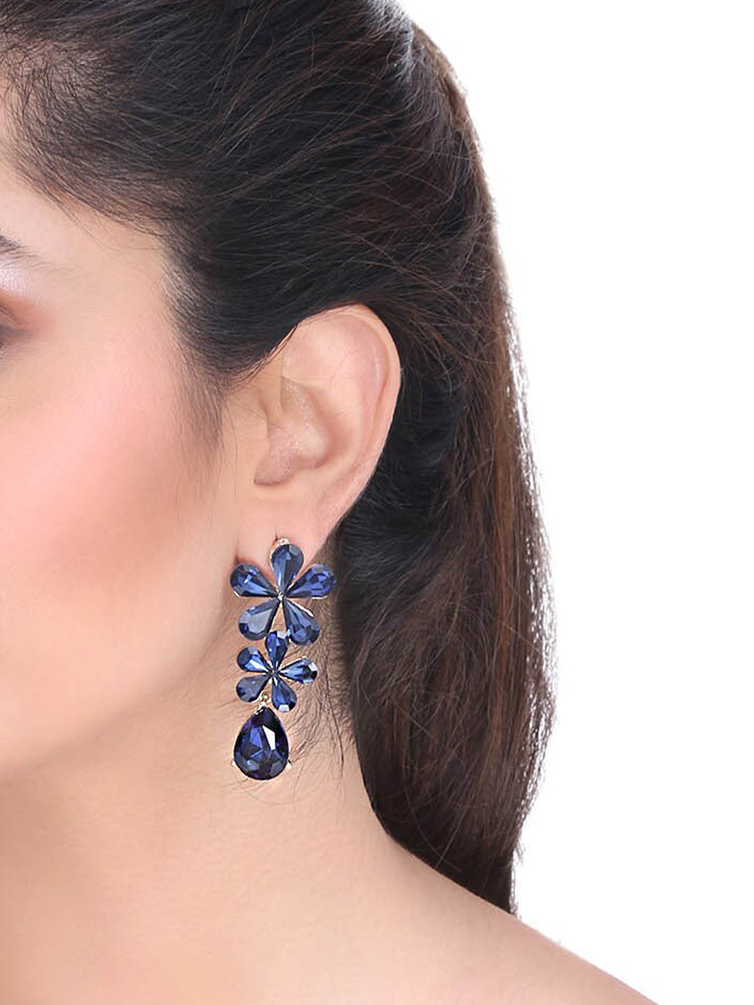 Rhodium Plated Teardrop American Diamond Studded Trendy Pendant Set