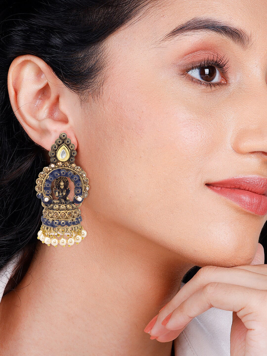 Silver Oxidised Radha Krishna Jhumka Earrings