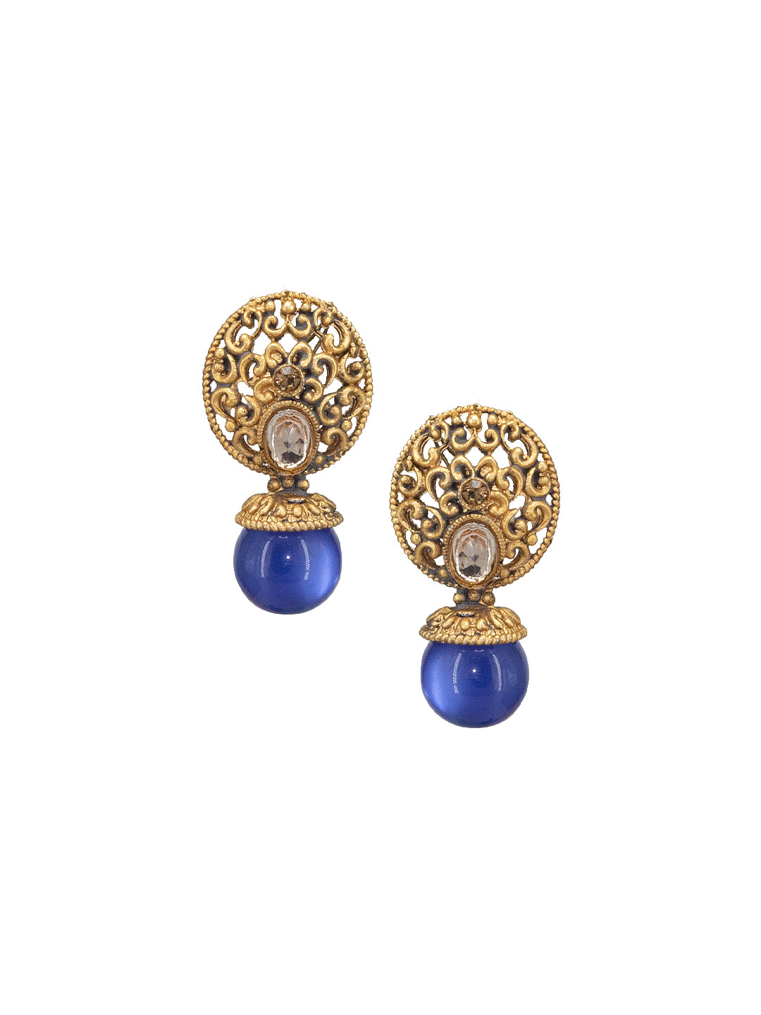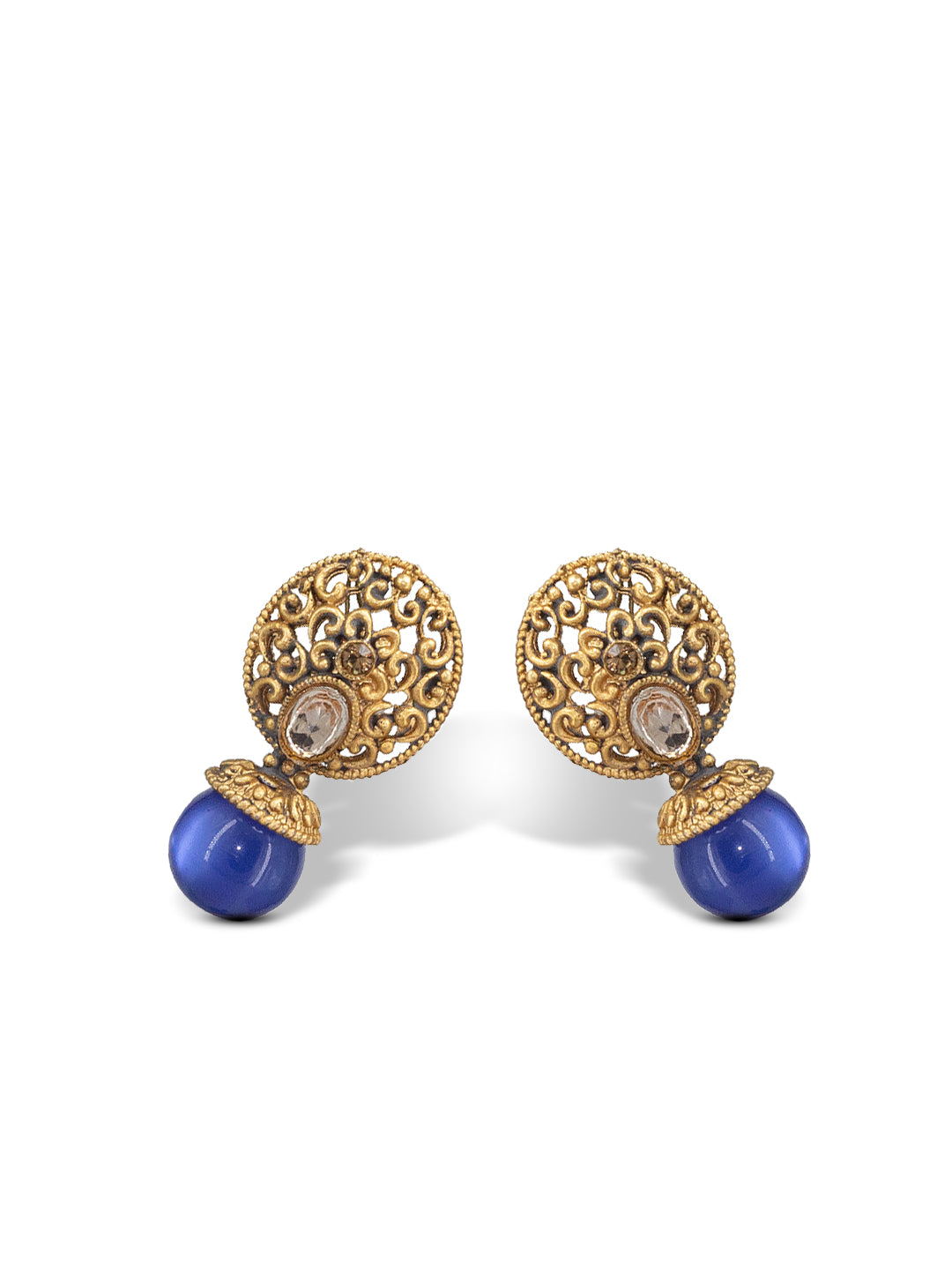 Gold Plated Peacock American Diamond & Black Beaded Trendy Mangalsutra With Earrings