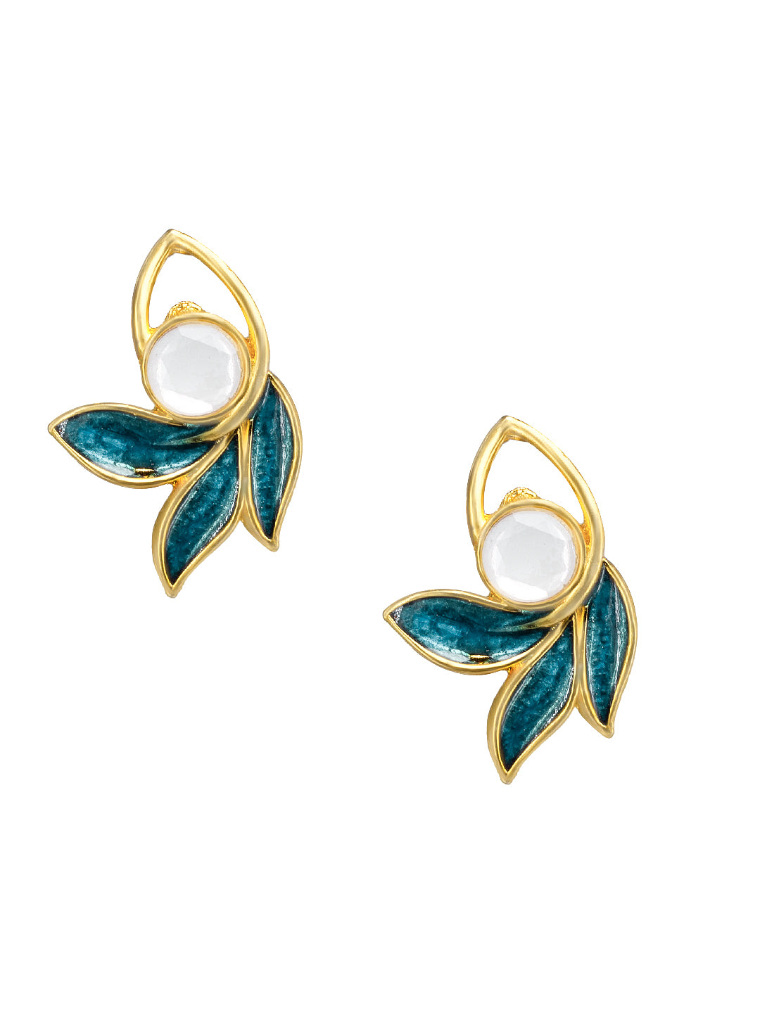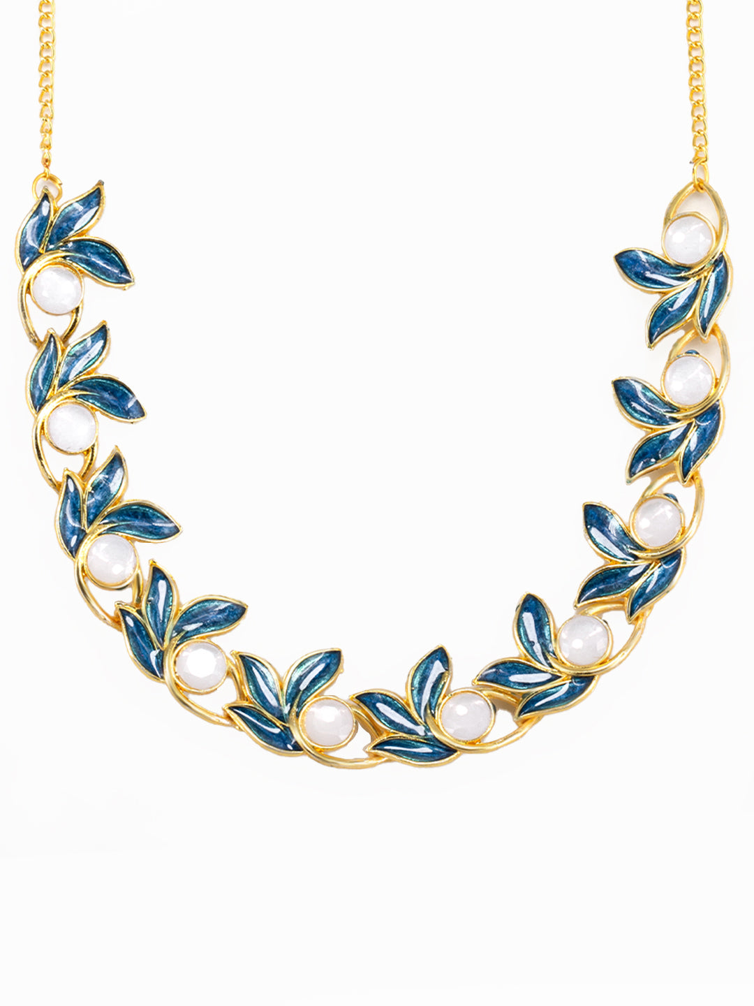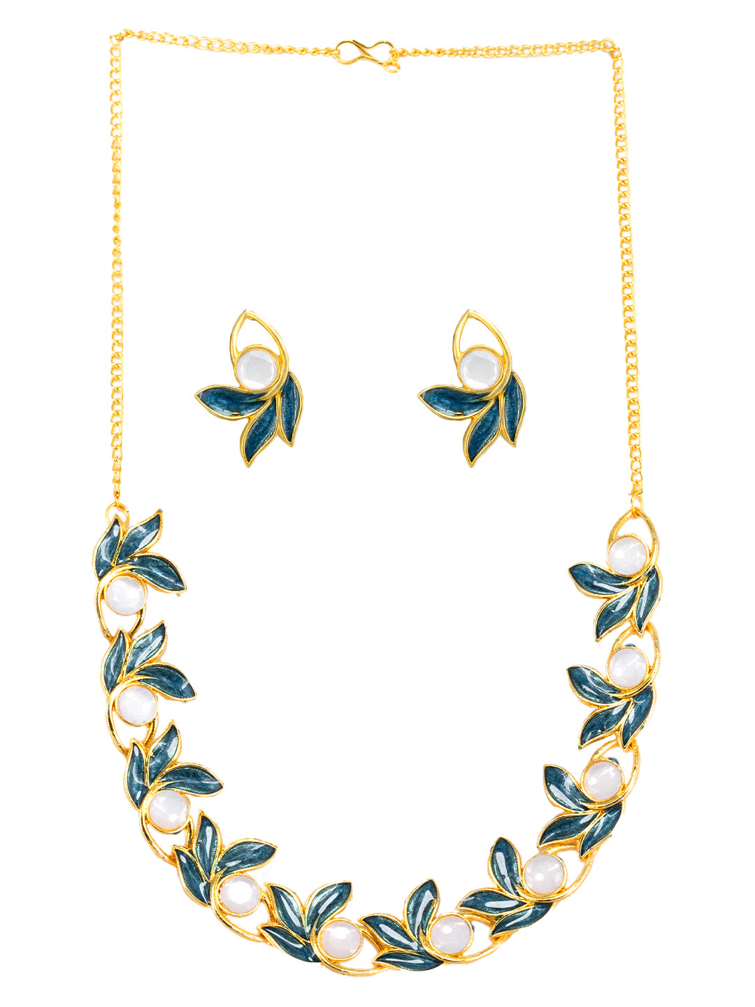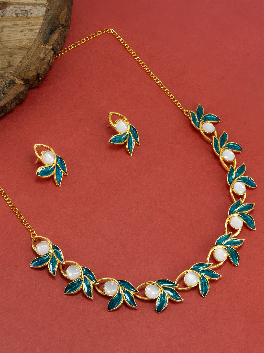 Gold Plated Blue Leaf Shaped Jewellery Set
