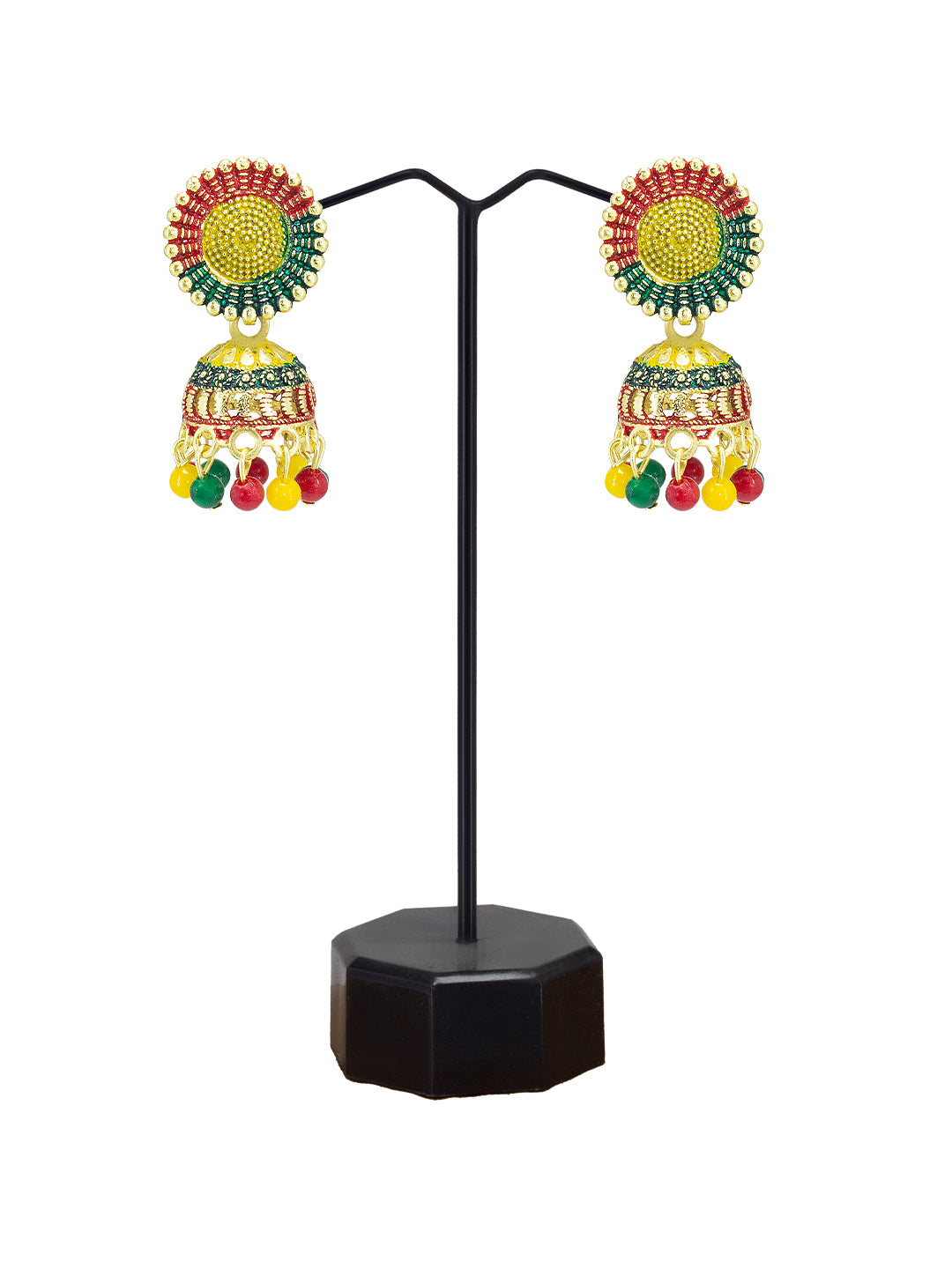 Gold Plated Circular Multi Color Artificial Beaded Jhumki Earrings