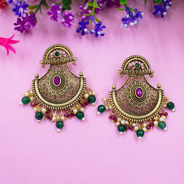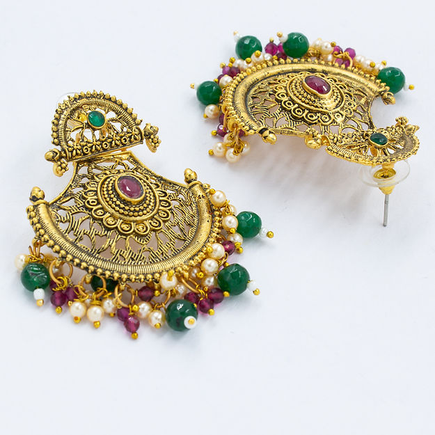 Gold-Plated Crescent Shaped Beaded Drop Earrings