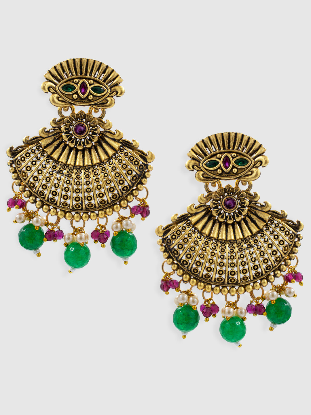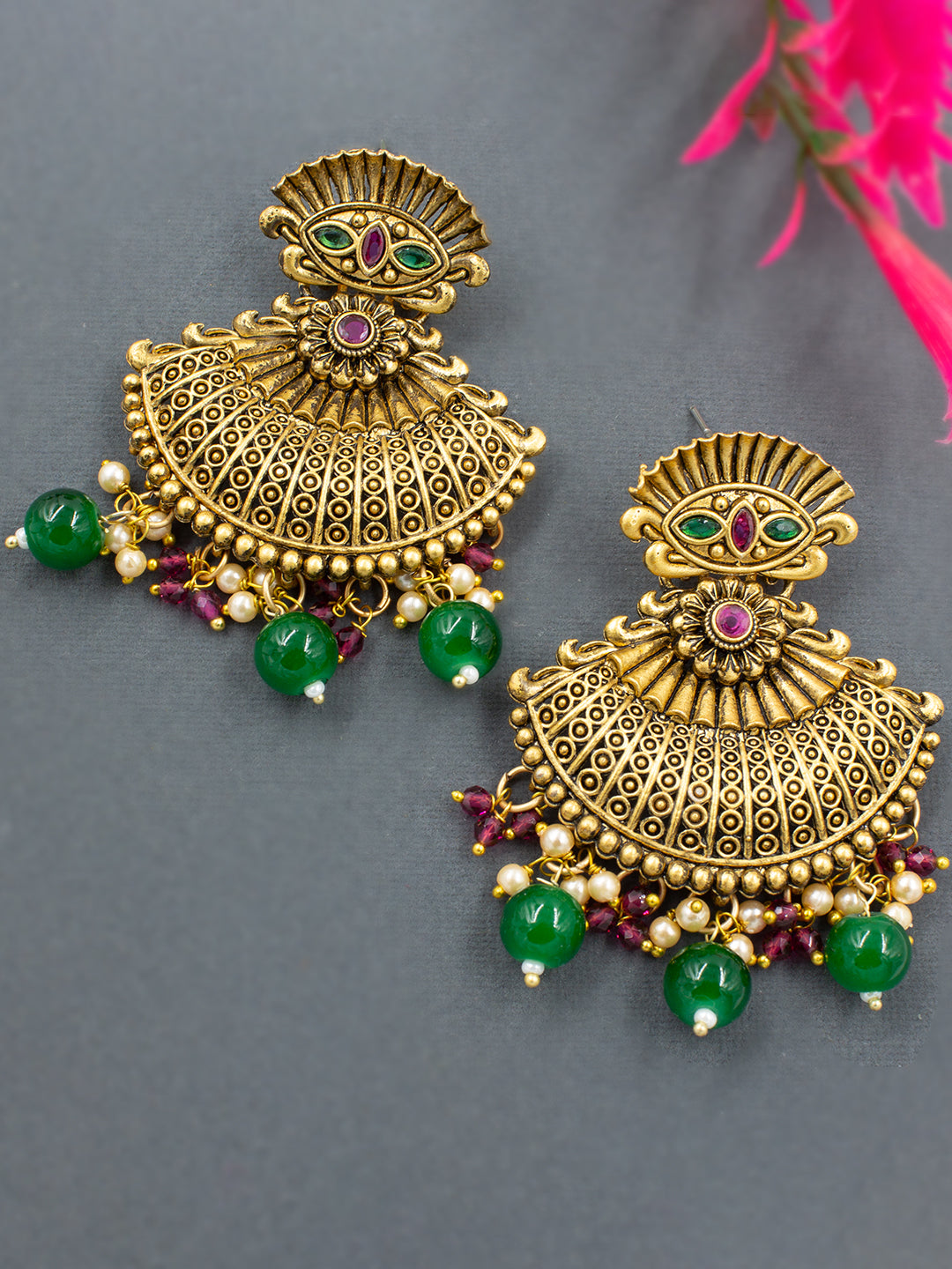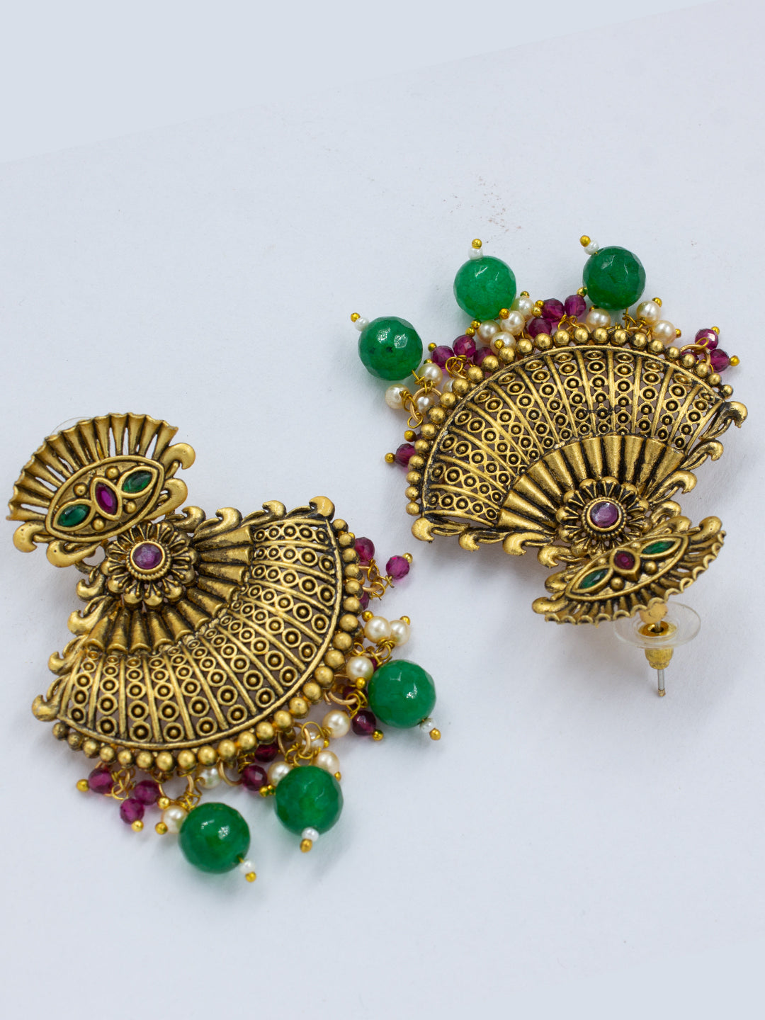 Gold-Plated Green Oval AD-Studded Pendant Set