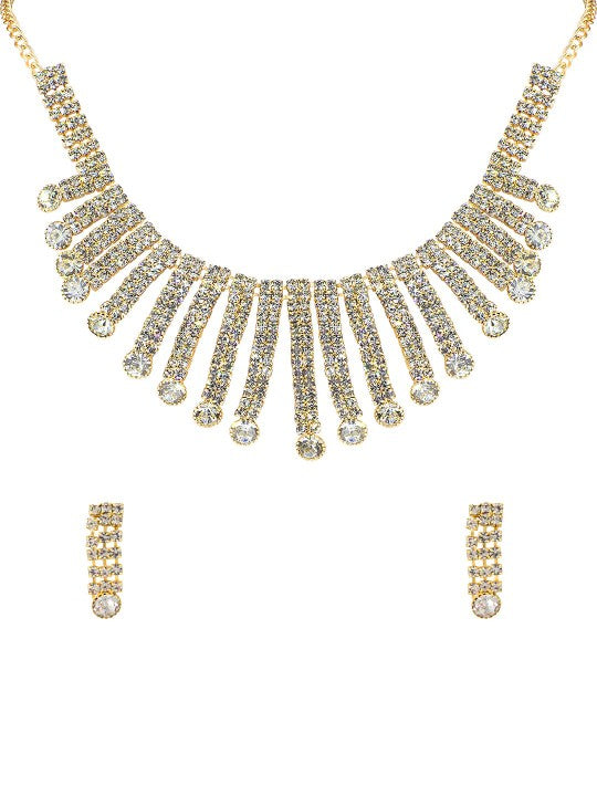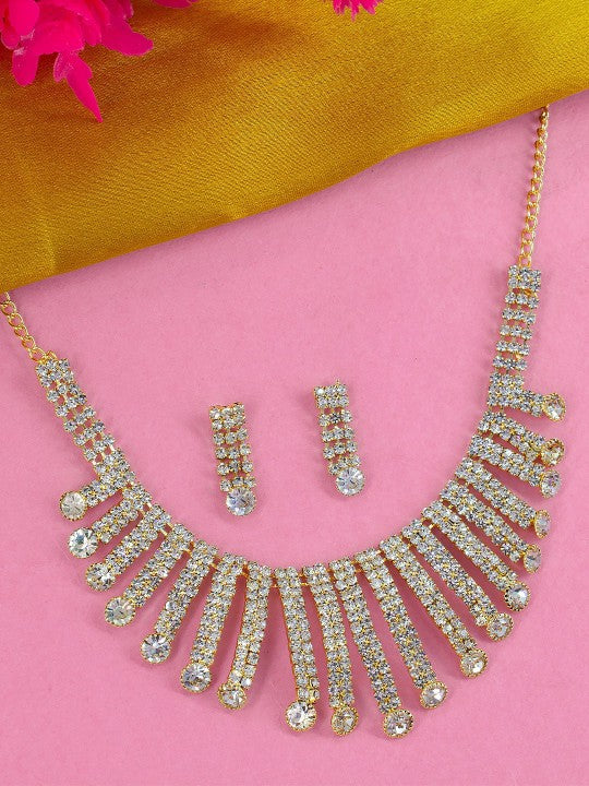 Rhodium Plated Teardrop American Diamond Studded Trendy Pendant Set