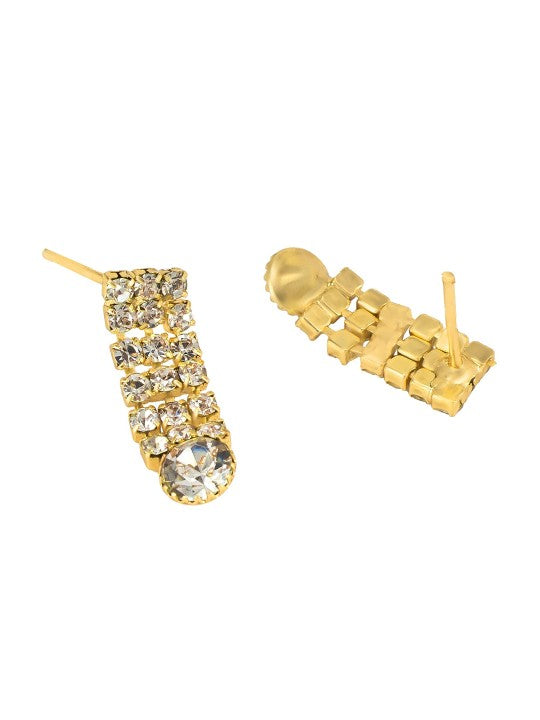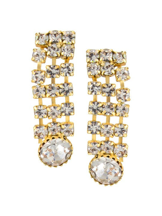 A pair of matching drop earrings, each secured with a post-and-back closure