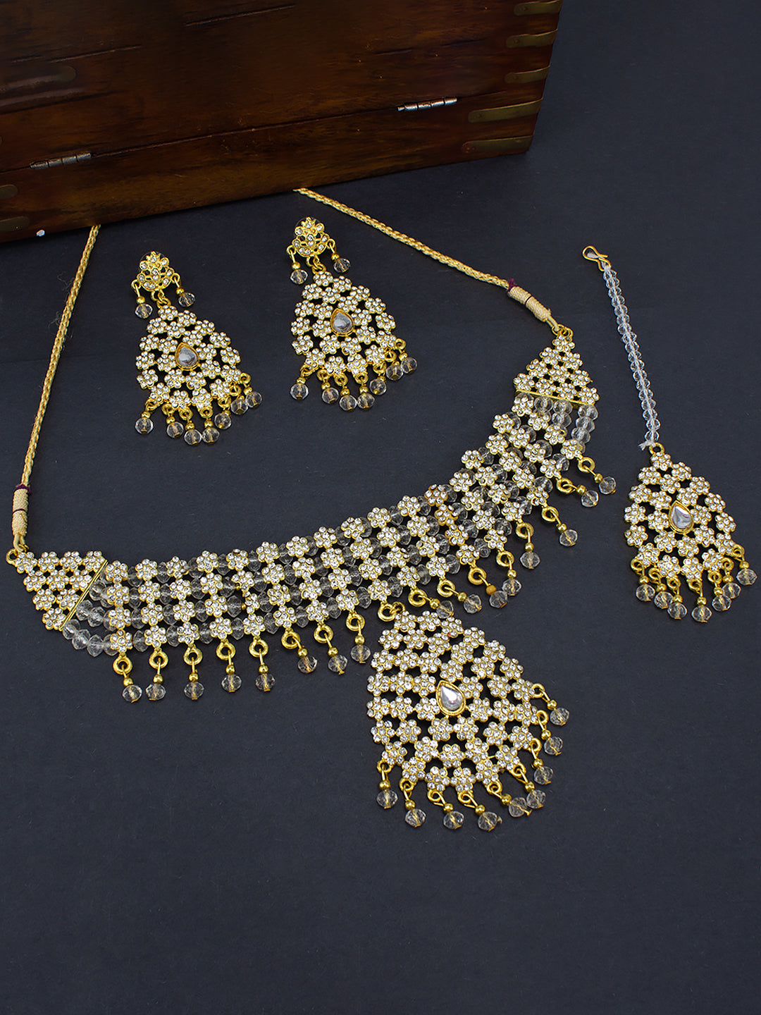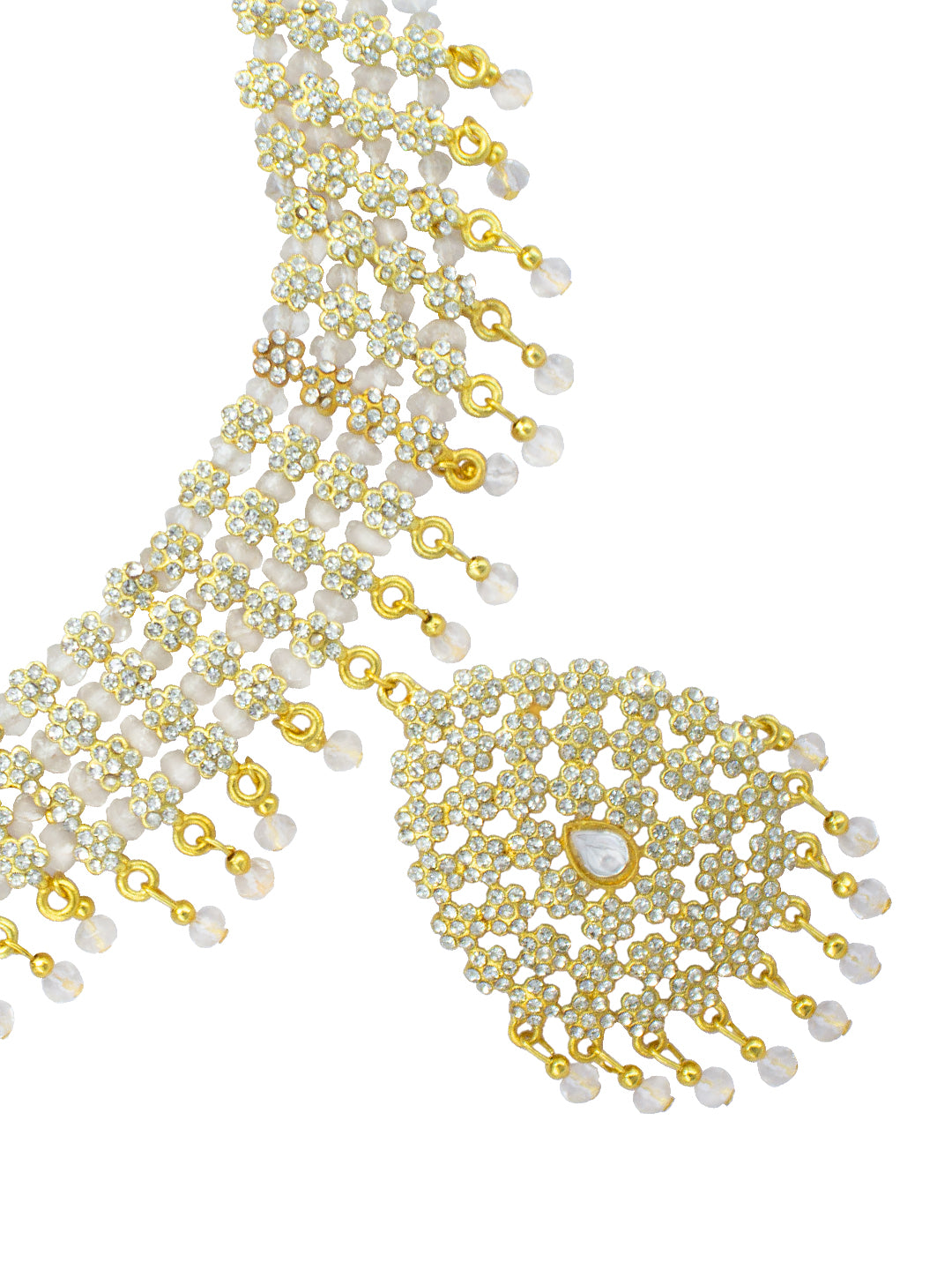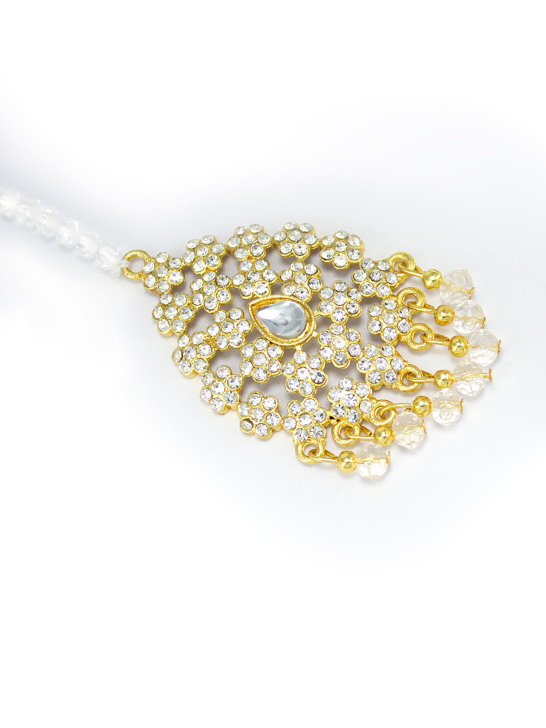 Gold Plated CZ Studded Jewellery Set With Maangtika