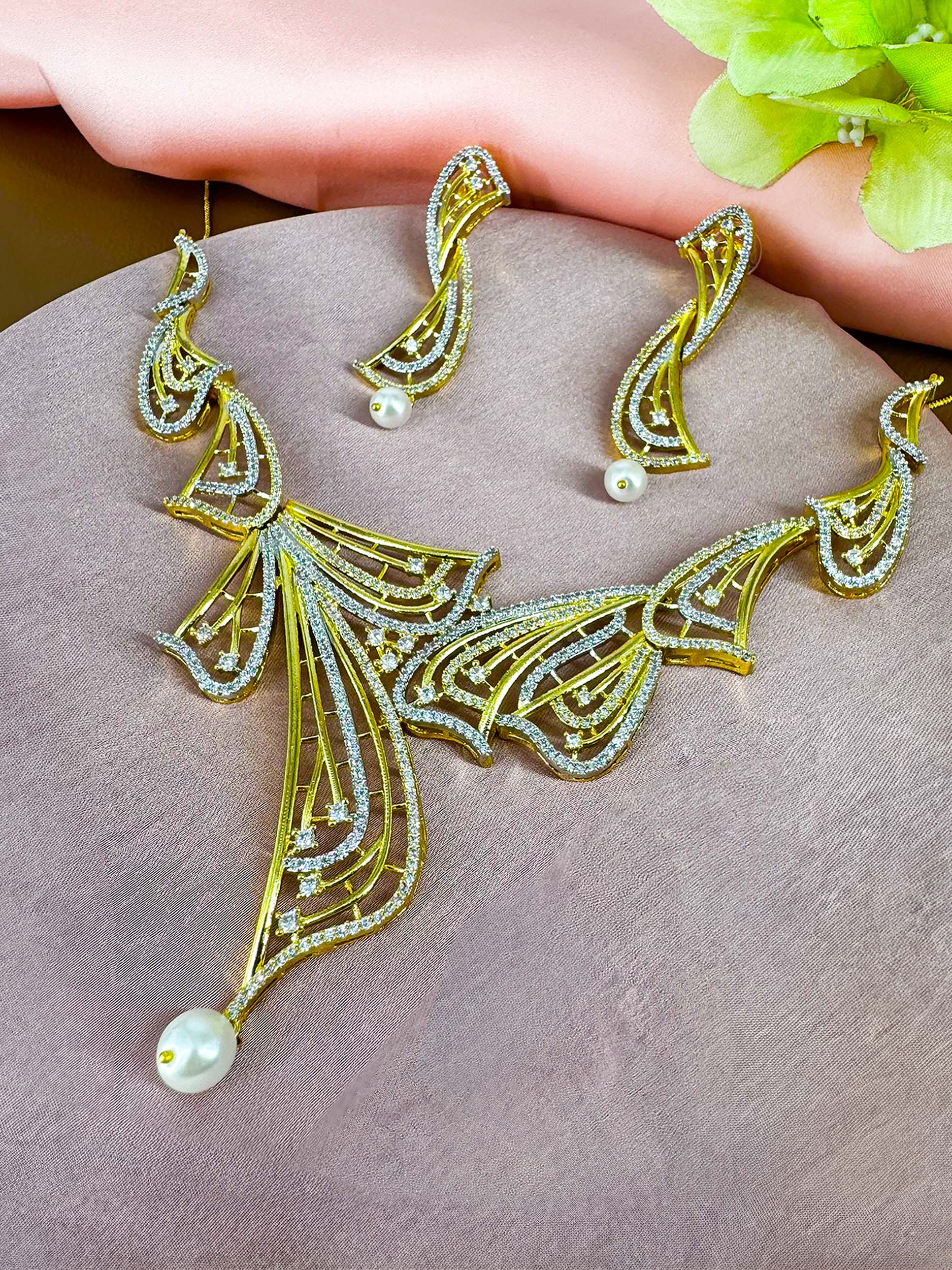 Gold Plated Designer AD Jewellery Set