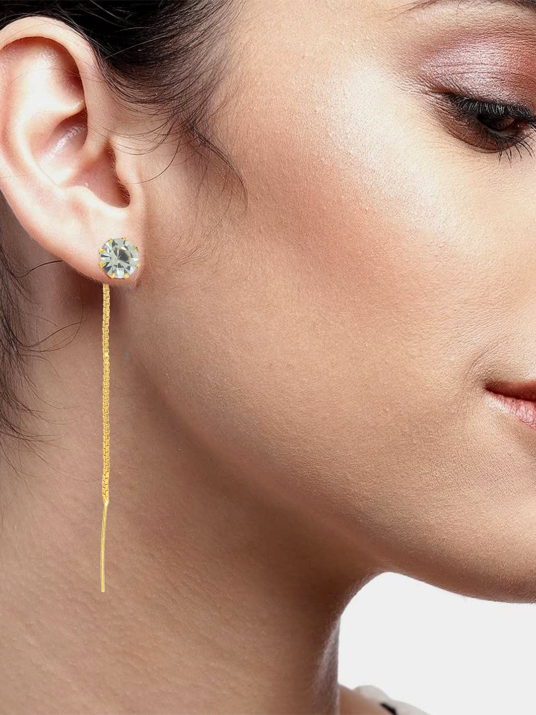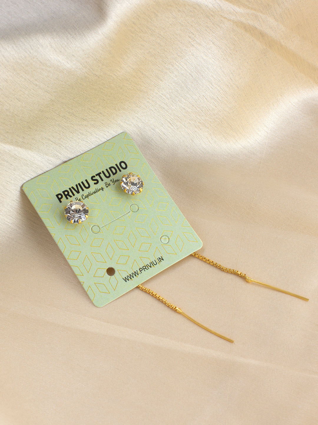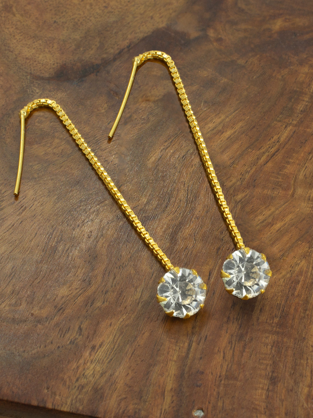 Gold-Plated CZ Studded Sui Dhaga Drop Earrings