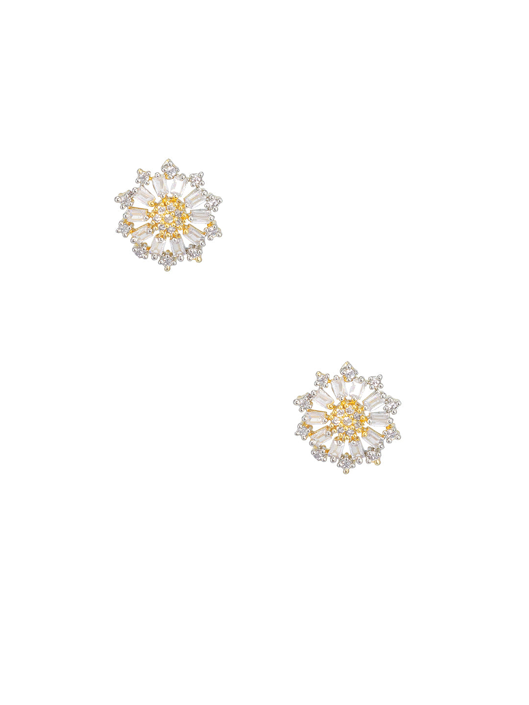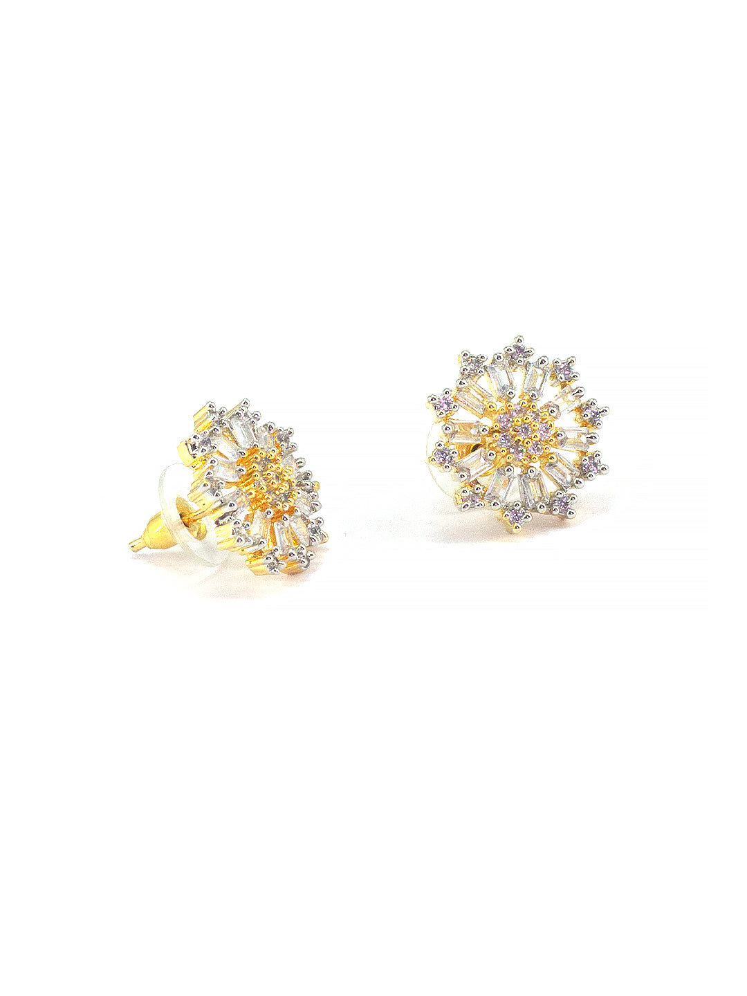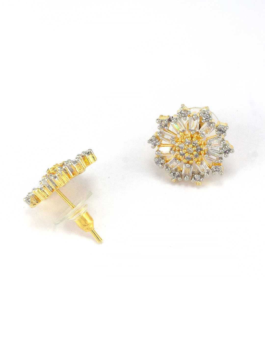 Gold Plated Floral Trendy American Diamond Stud Earrings