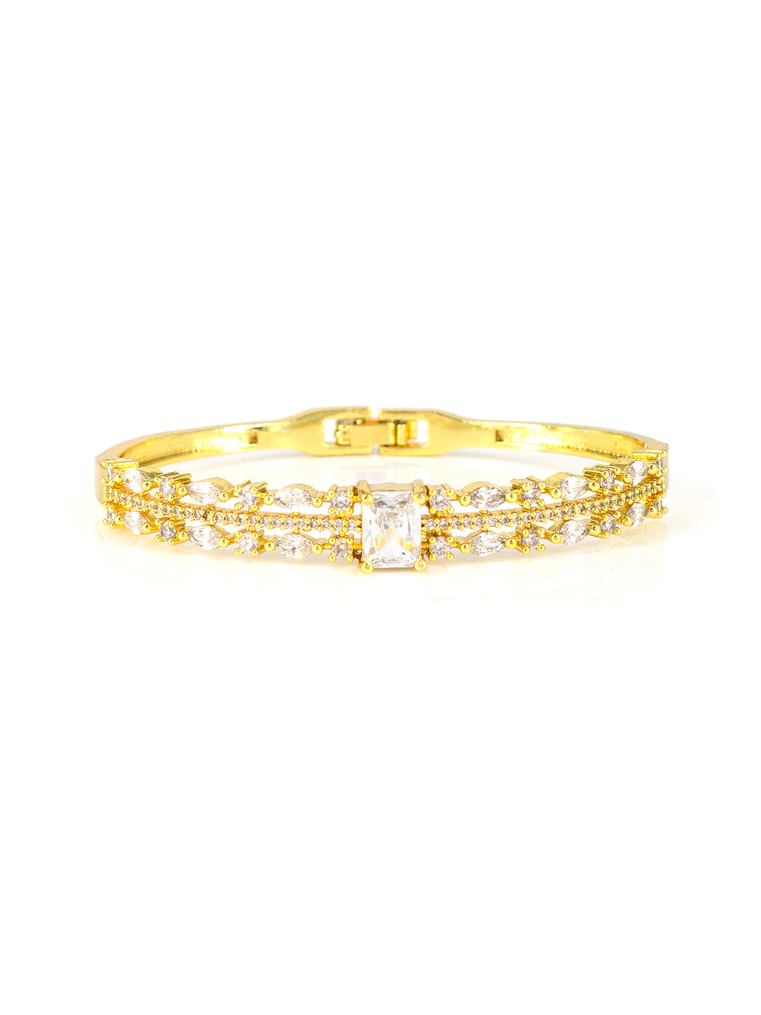 American Diamond Gold Plated Petal Design green Bracelet for Women and Girls