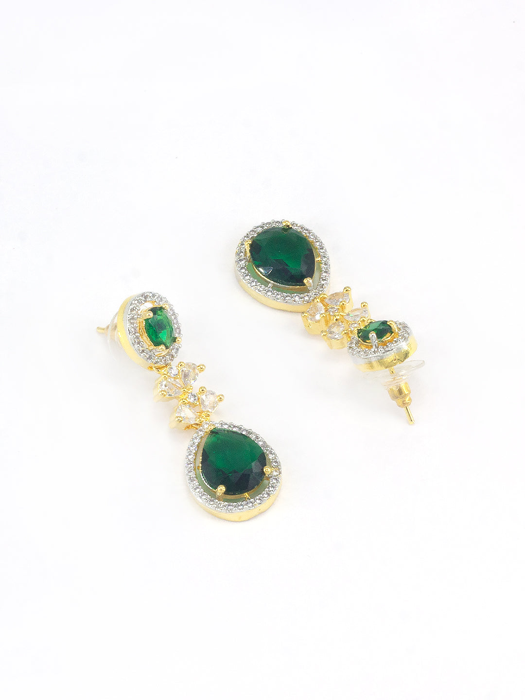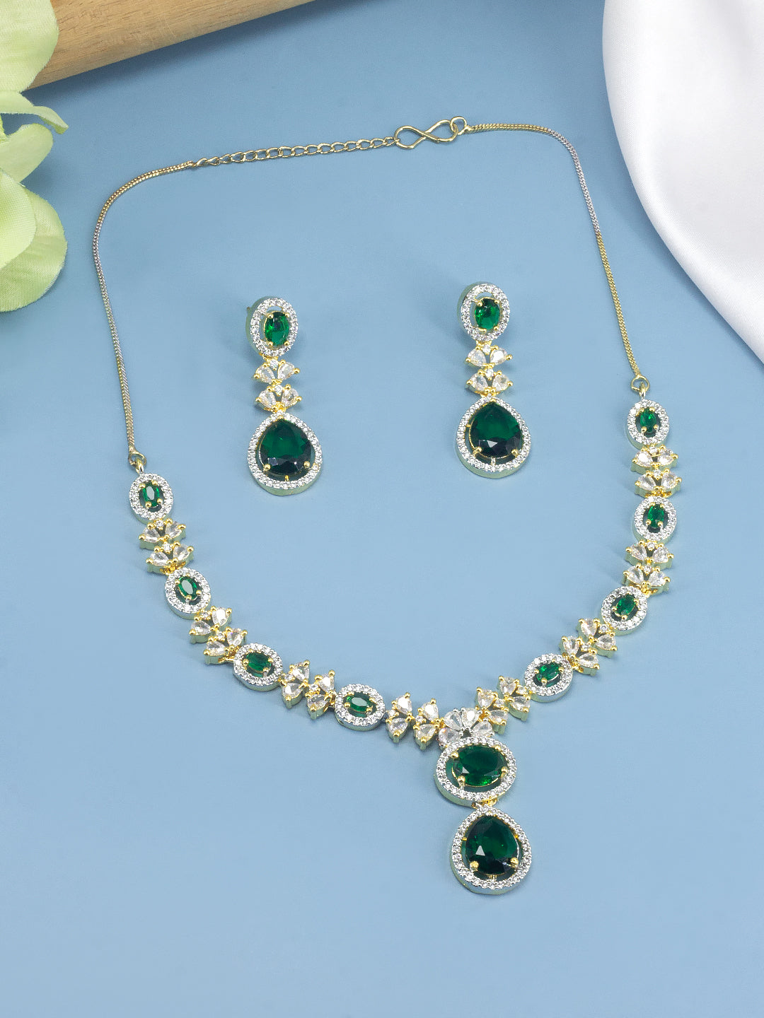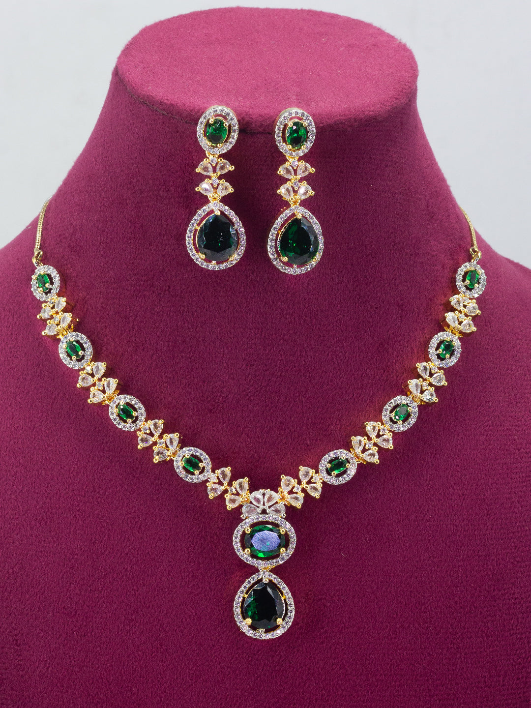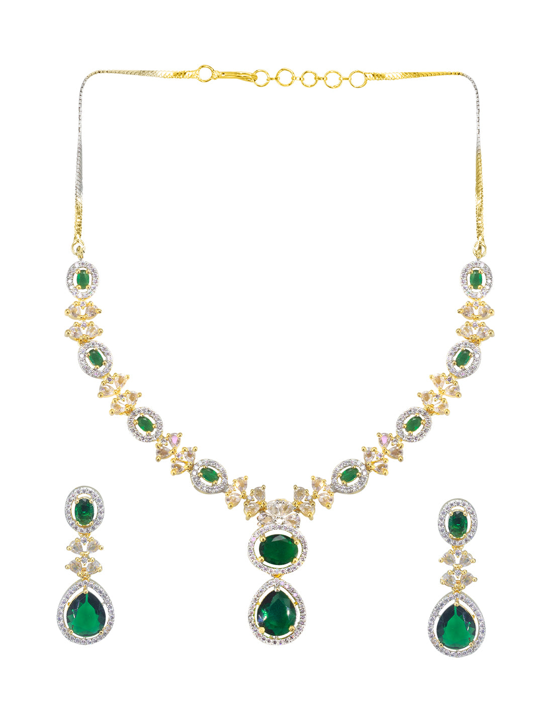 Gold-Plated Green Oval AD-Studded Pendant Set