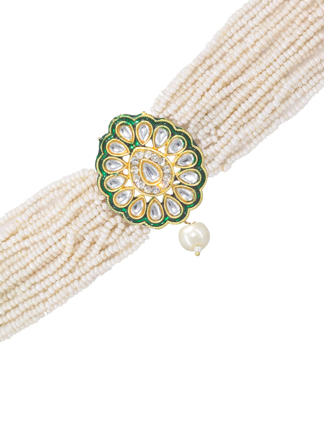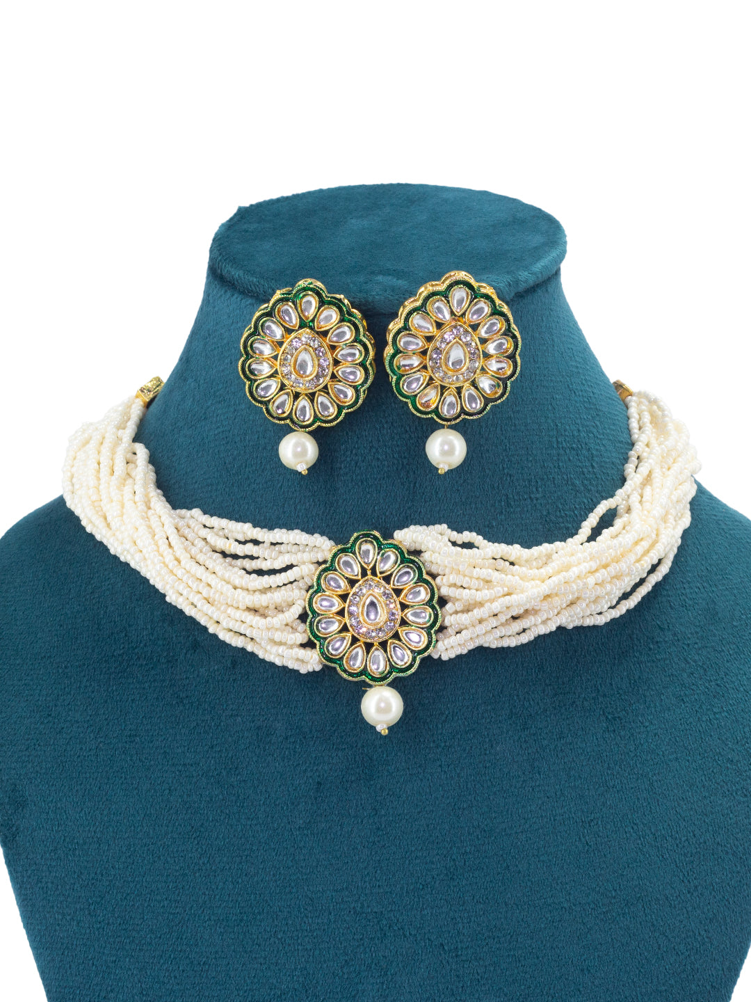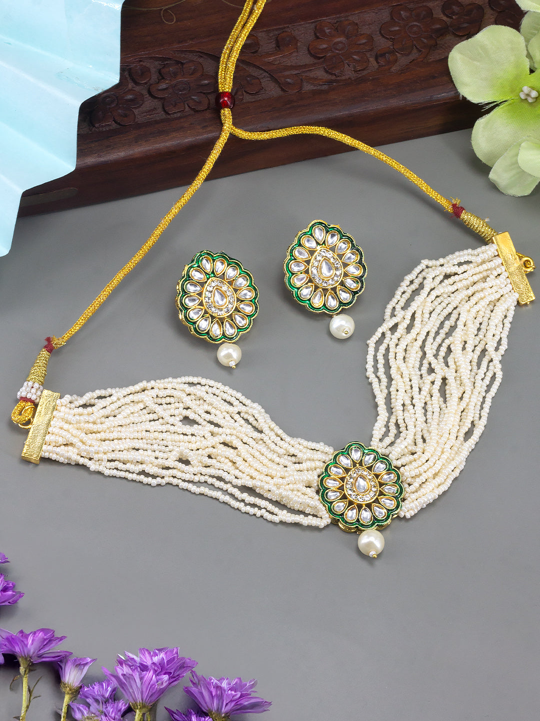 Gold Plated Kundan & Beaded Multi Strand Choker Jewellery Set