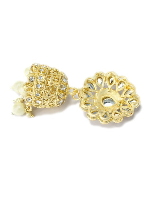 Gold-plated necklace, has white kundan stone-studded and pearl-beaded details