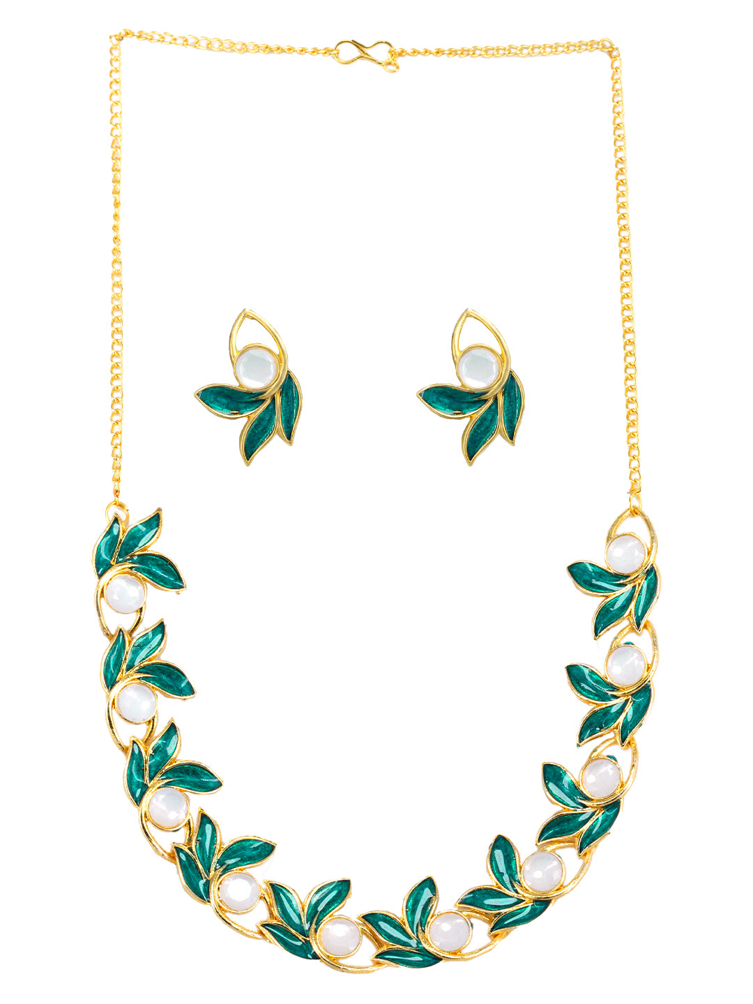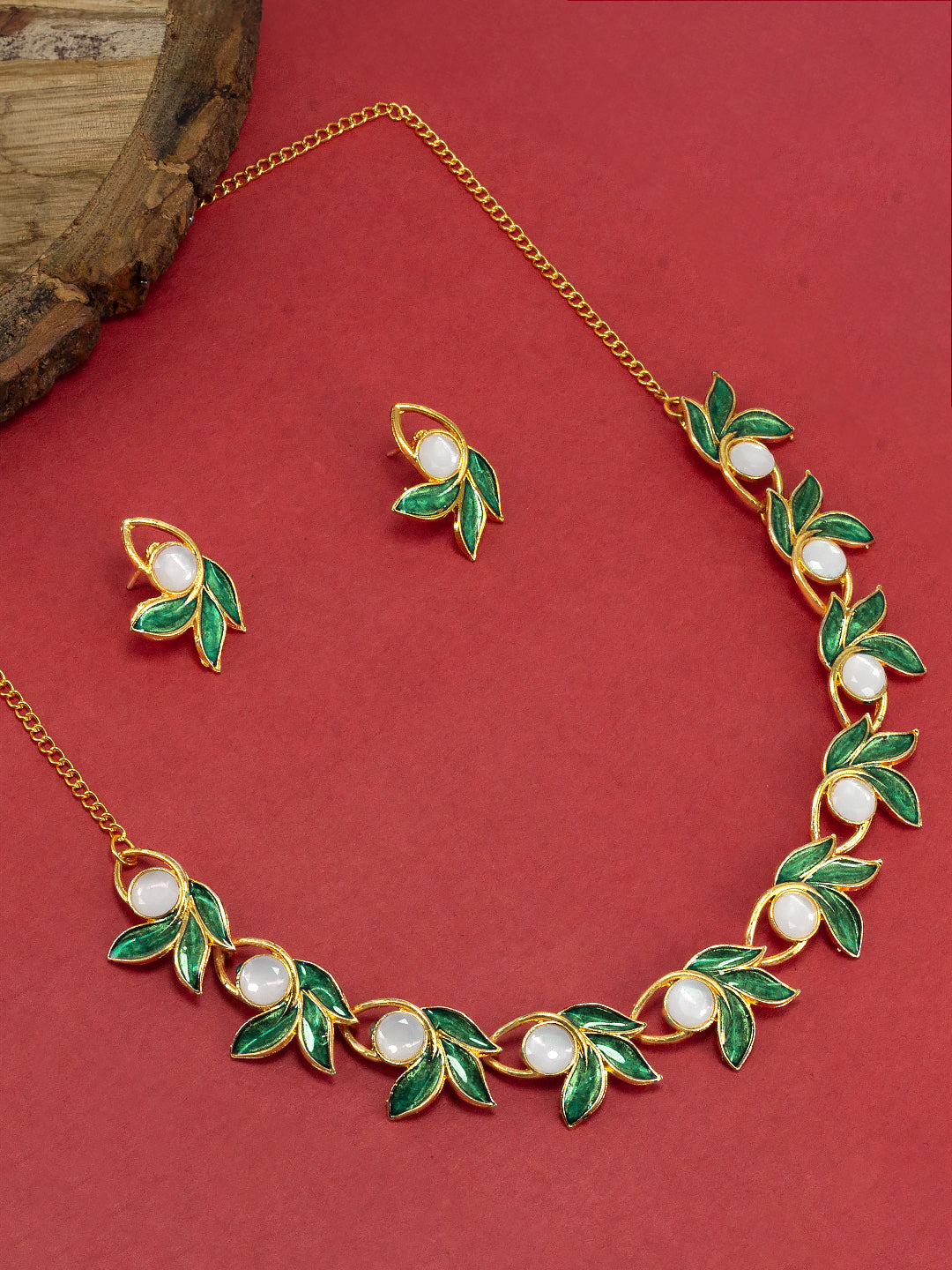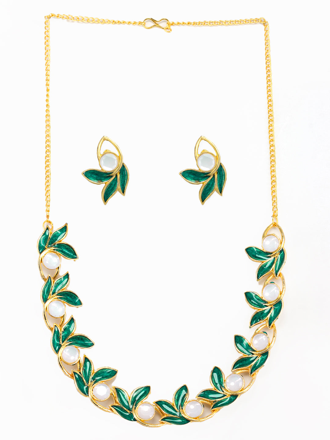 Gold-Plated Green Oval AD-Studded Pendant Set