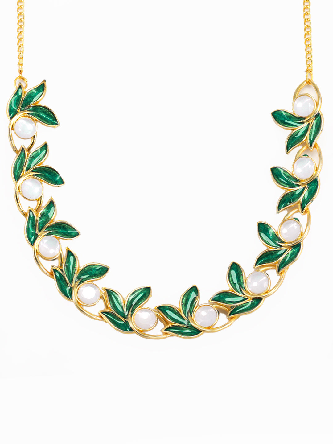 This jewellery set consist of a gold plated necklace & a pair of earrings. Necklace is secured with s-hook closure. Earrings are secured with post & back closure.